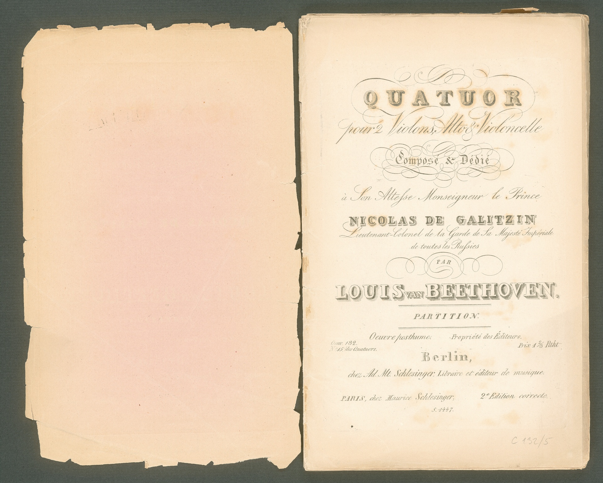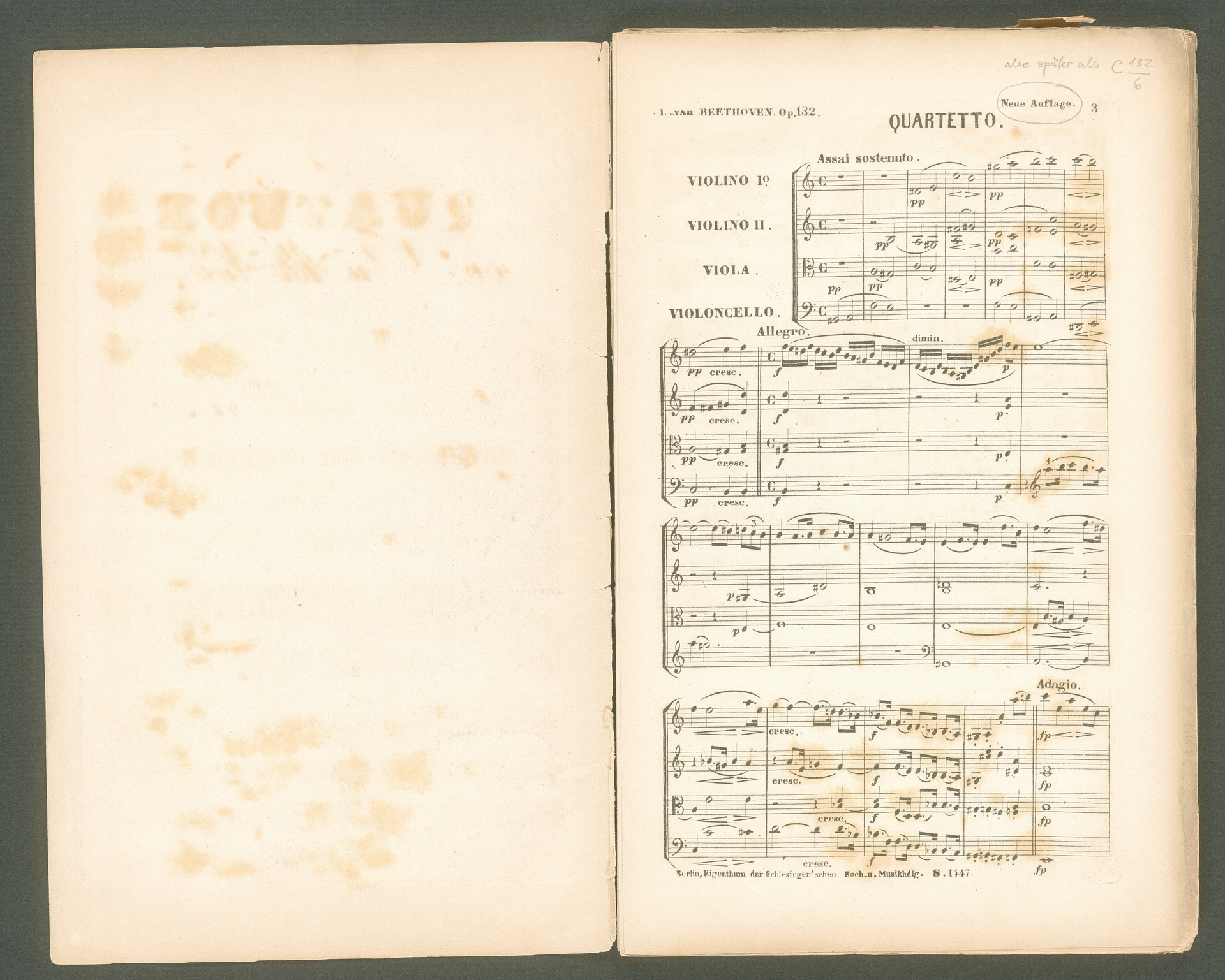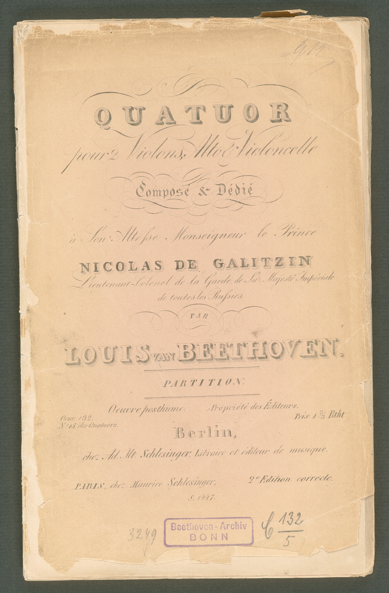 Ludwig van Beethoven, Quartett für 2 Violinen, Viola, Violoncello (a-Moll) op. 132, Partitur, Schlesinger, 1447