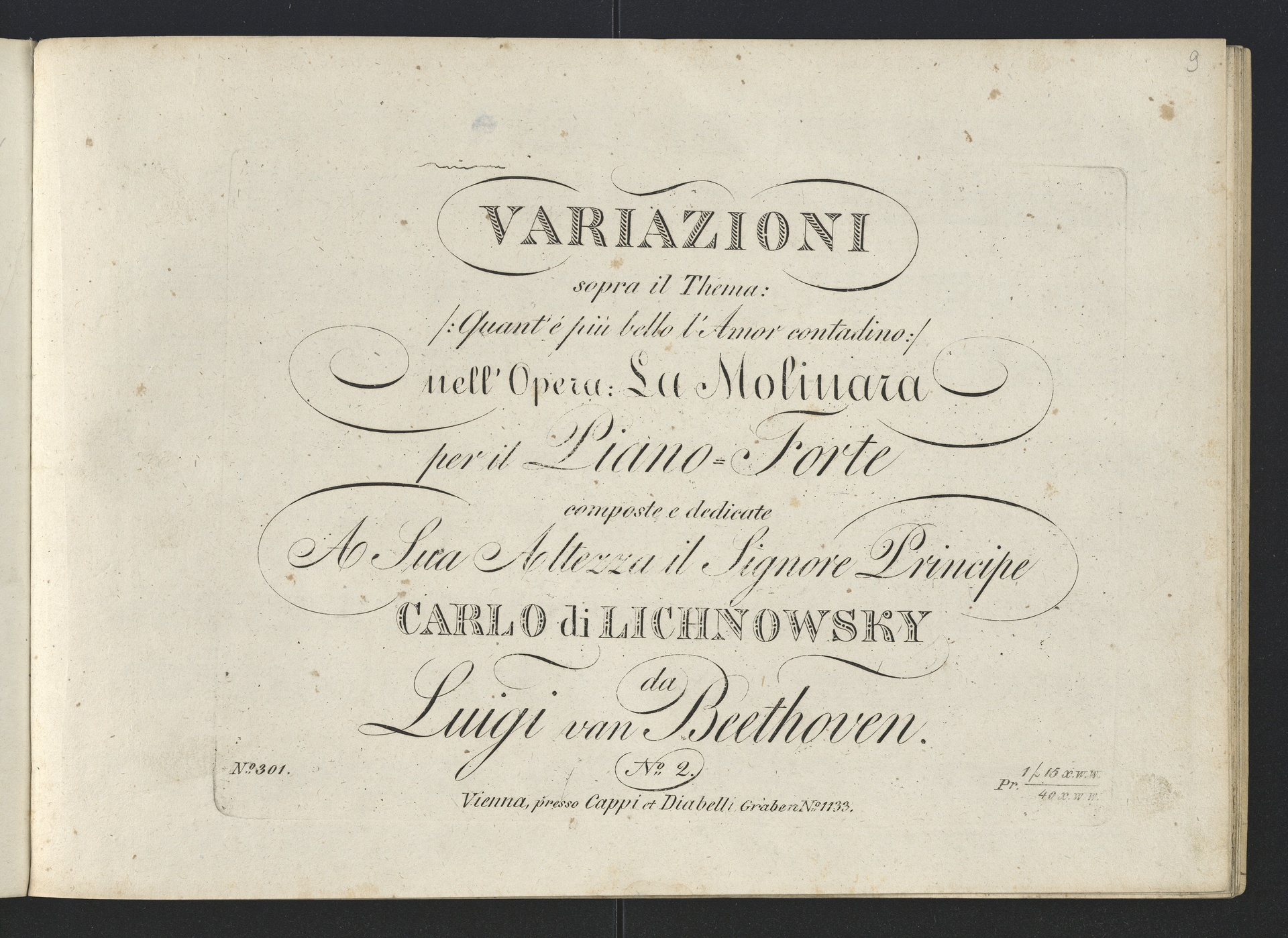 Ludwig van Beethoven, Variationen über "Quant' è più bello" aus Giovanni Paisiellos Oper "La Molinara" für Klavier (A-Dur) WoO 69, Cappi und Diabelli, 301