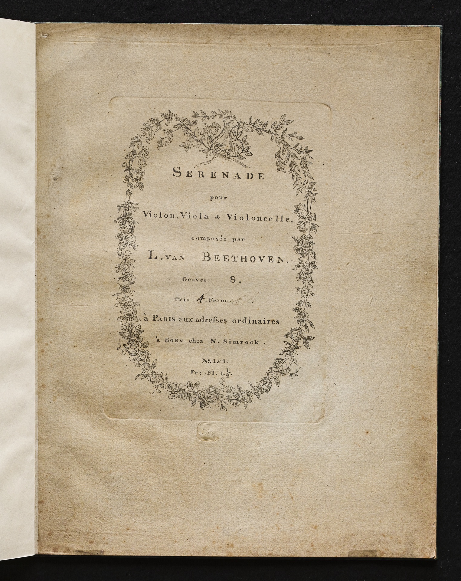 Ludwig van Beethoven, Serenade für Violine, Viola und Violoncello (D-Dur) op. 8, Stimmen, Simrock, 198