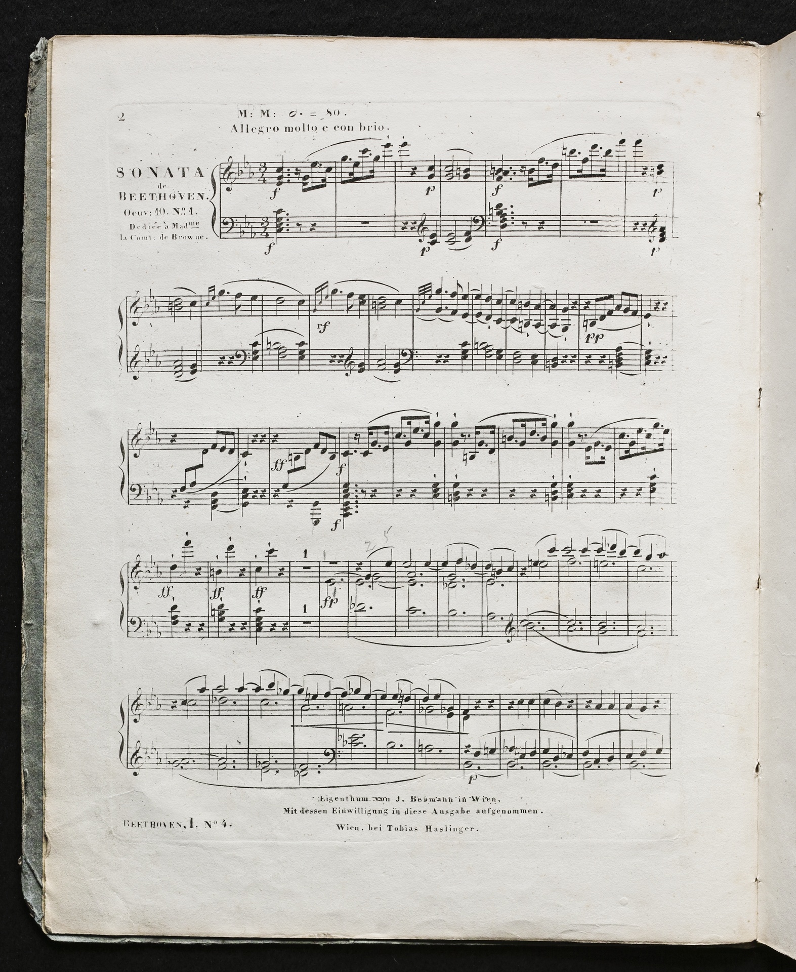 Ludwig van Beethoven, Sonate für Klavier (c-Moll) op. 10, 1, Haslinger, 1,4