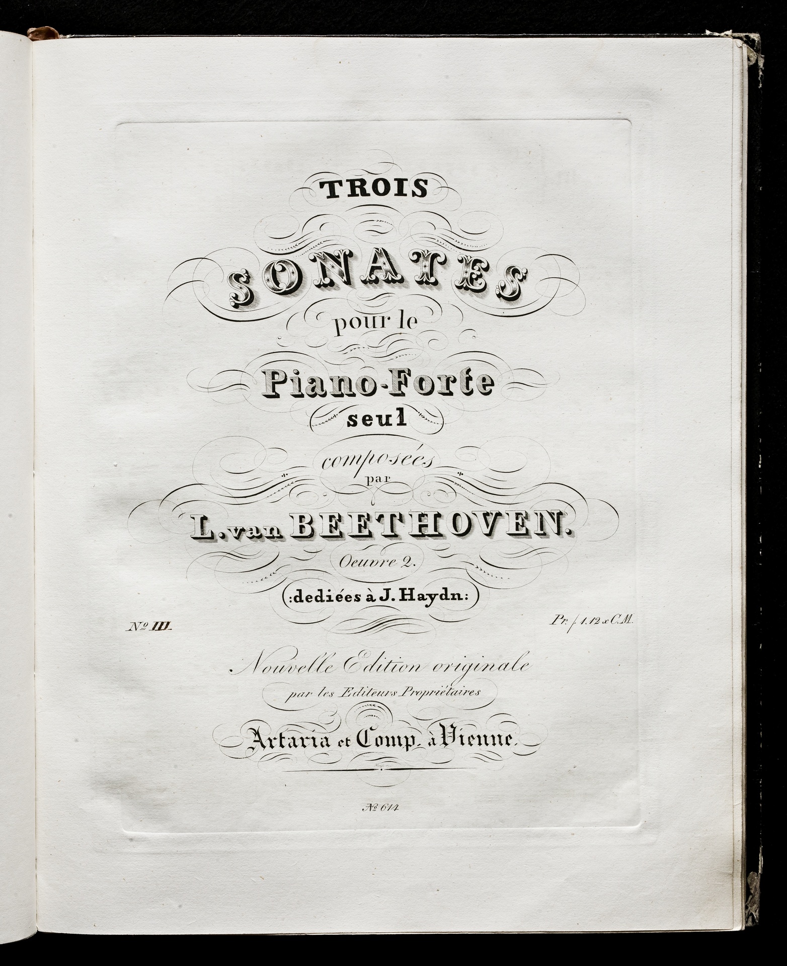 Ludwig van Beethoven, Sonaten für Klavier (f-Moll, A-Dur, C-Dur) op. 2, 1-3, Artaria, 614