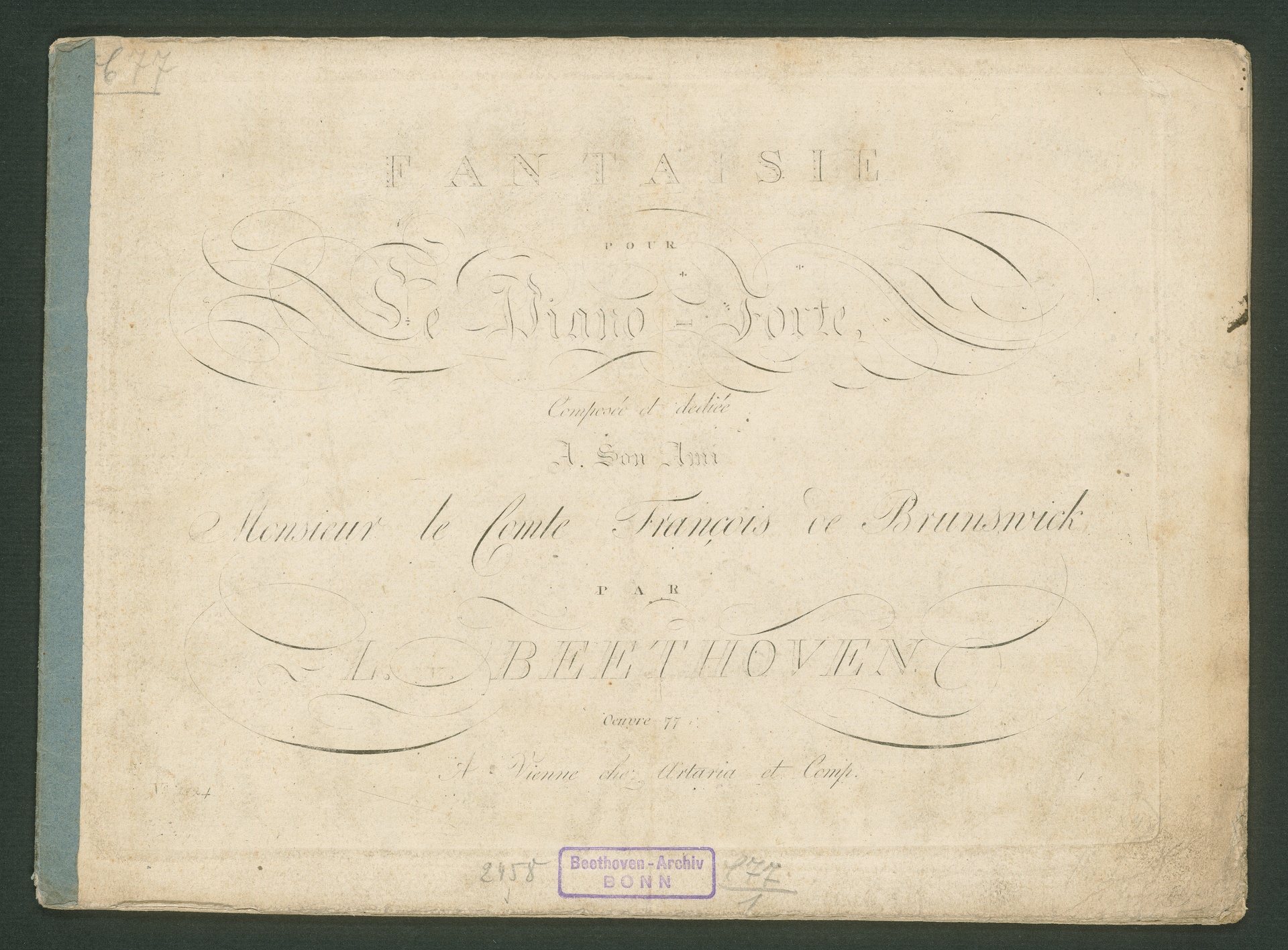 Ludwig van Beethoven, Fantasie für Klavier (H-Dur, Anfang in g-Moll) op. 77, Artaria, 2124
