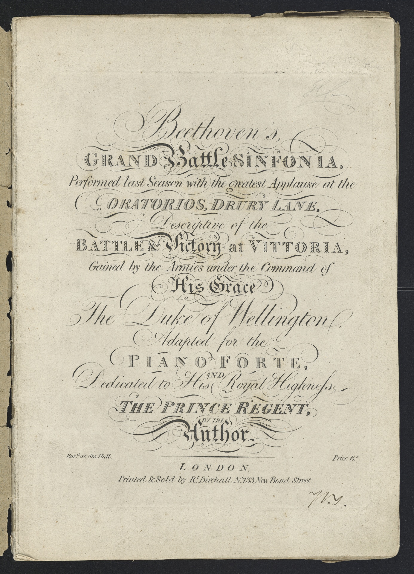 Ludwig van Beethoven, "Wellingtons Sieg oder die Schlacht bei Vittoria" für Orchester op. 91, Bearbeitung für Klavier, Birchall