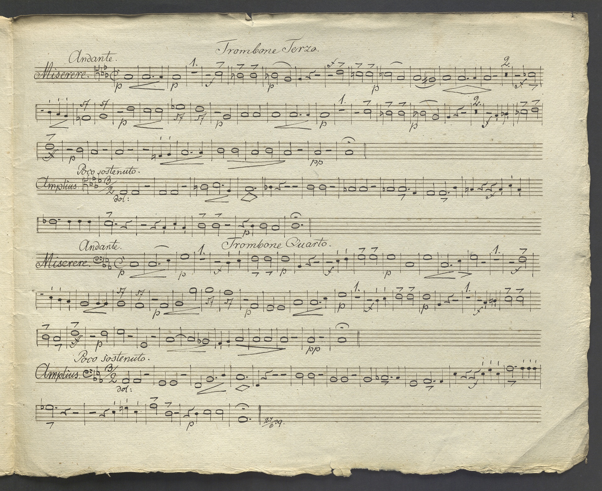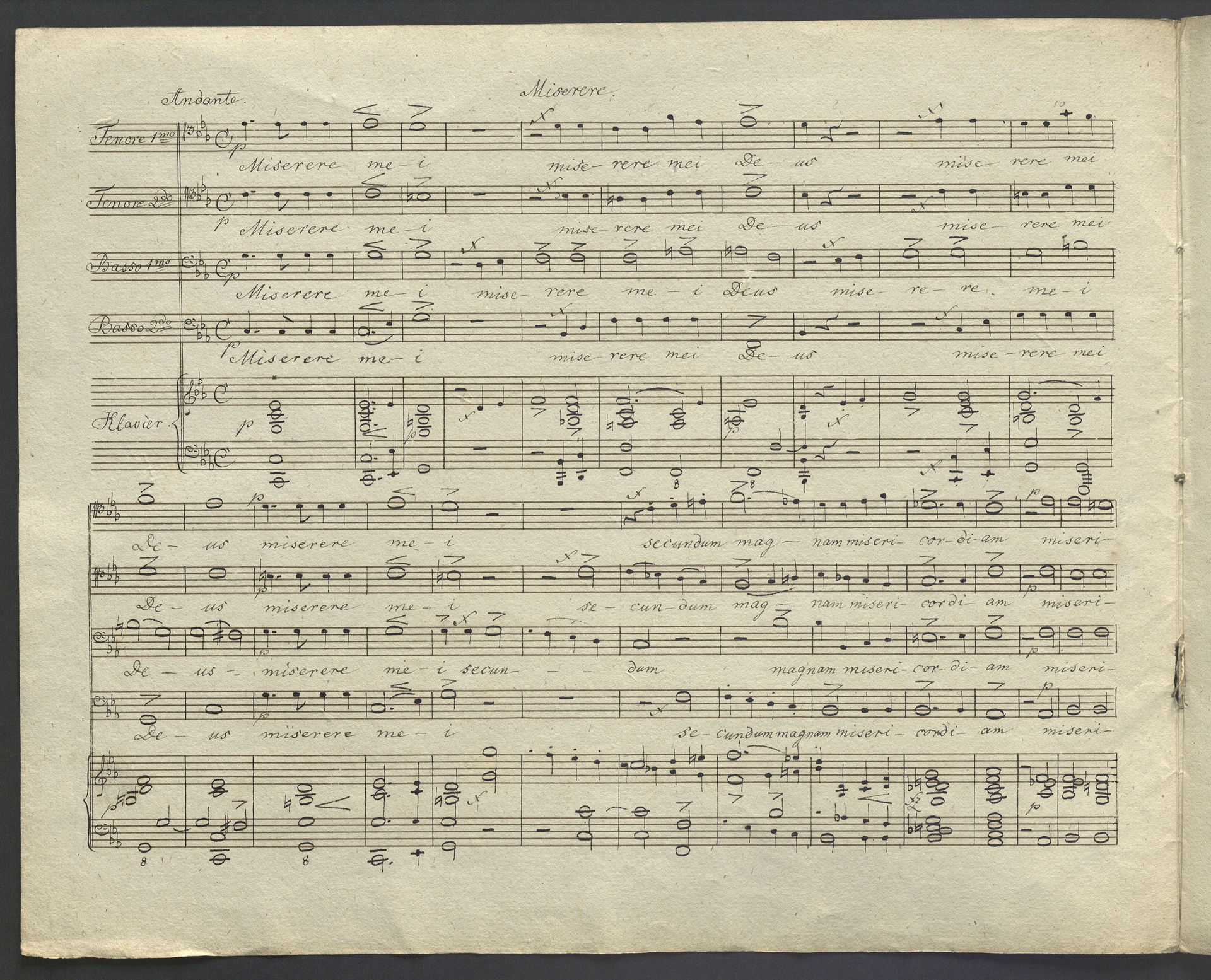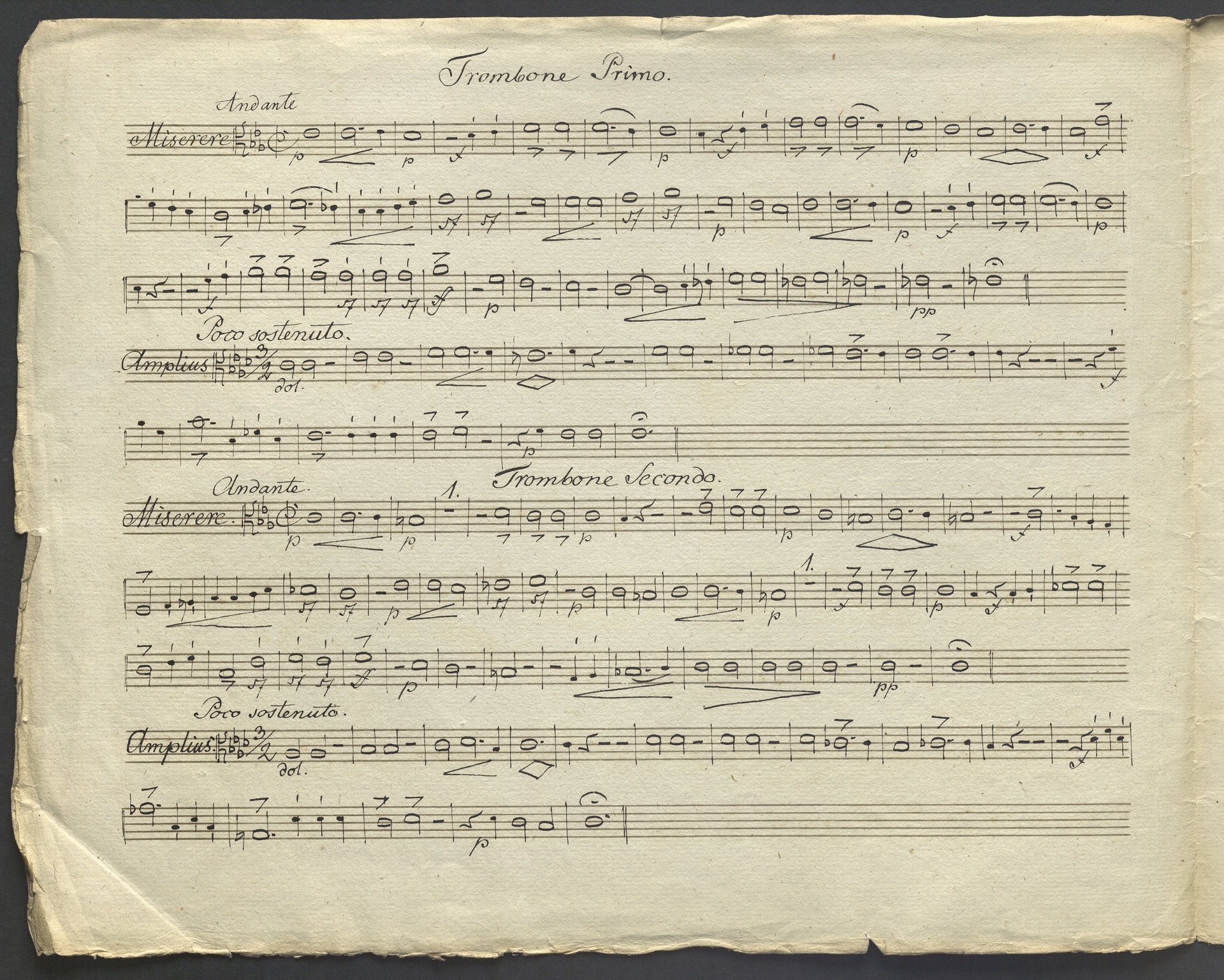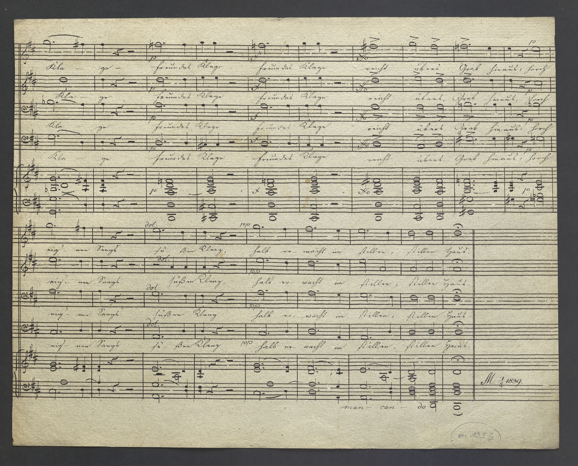Ludwig van Beethoven, Equale für vier Posaunen (d-Moll, D-Dur, B-Dur) WoO 30, Bearbeitung von Ignaz von Seyfried für Männerchor, vier Posaunen oder Klavier, Partitur, Stimmen, Abschrift