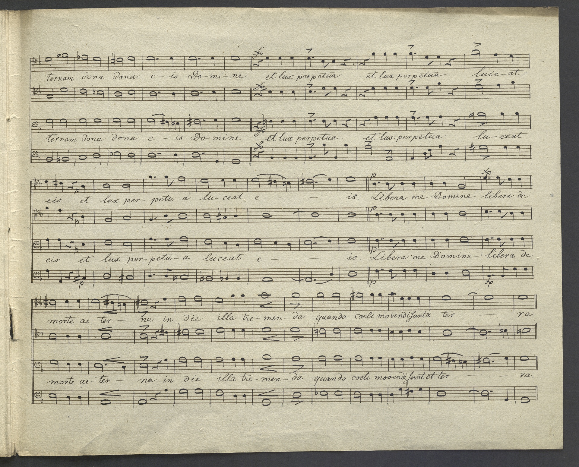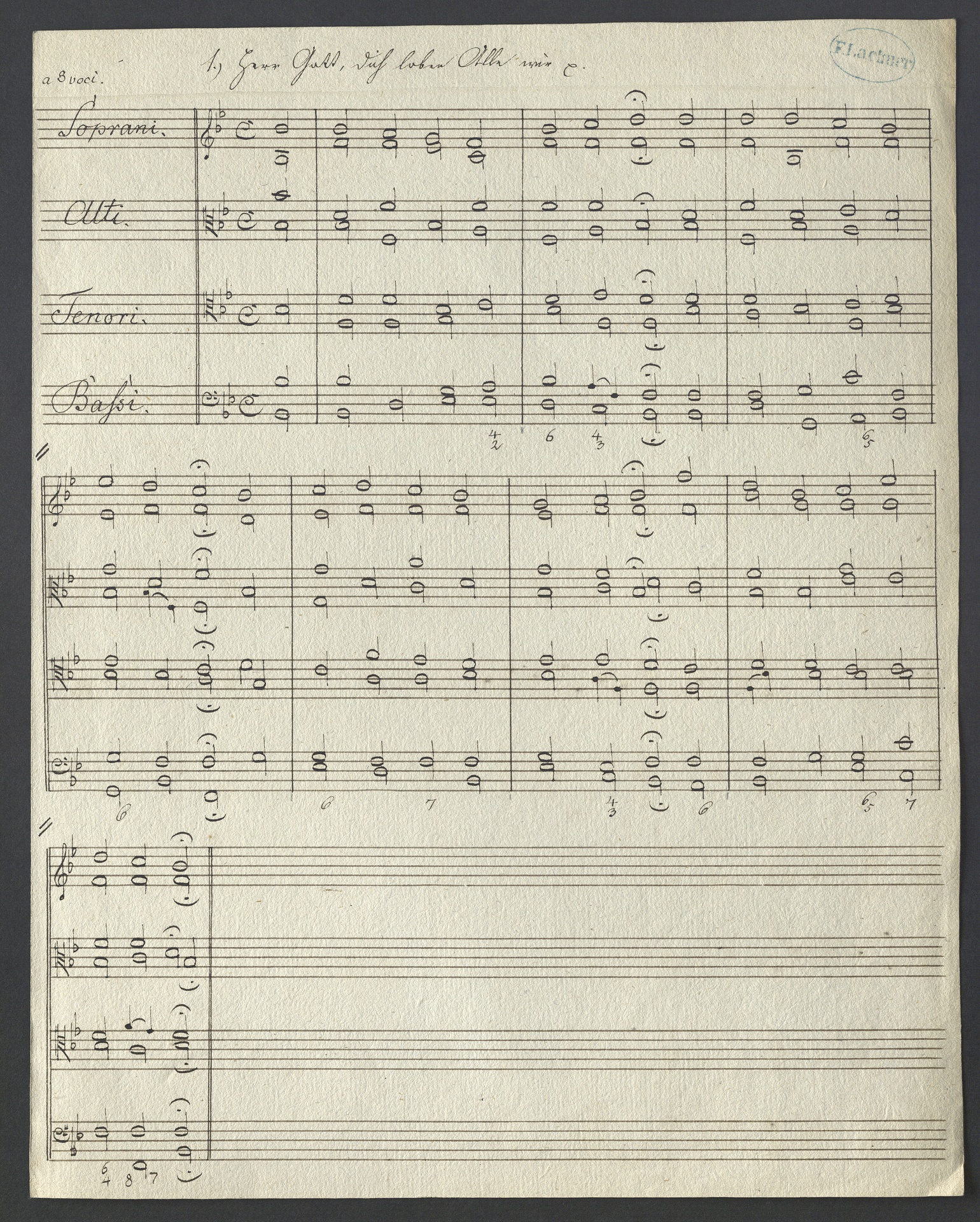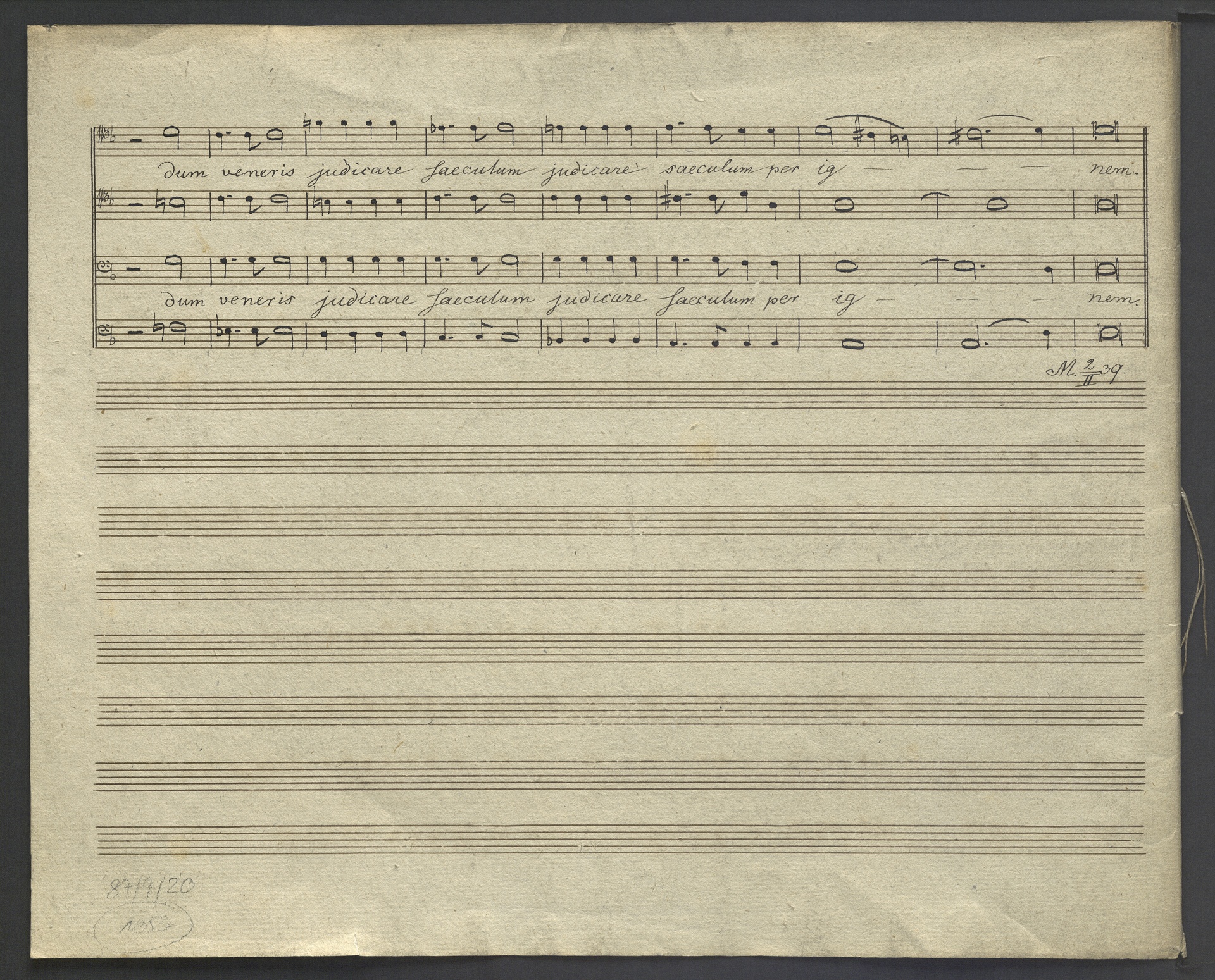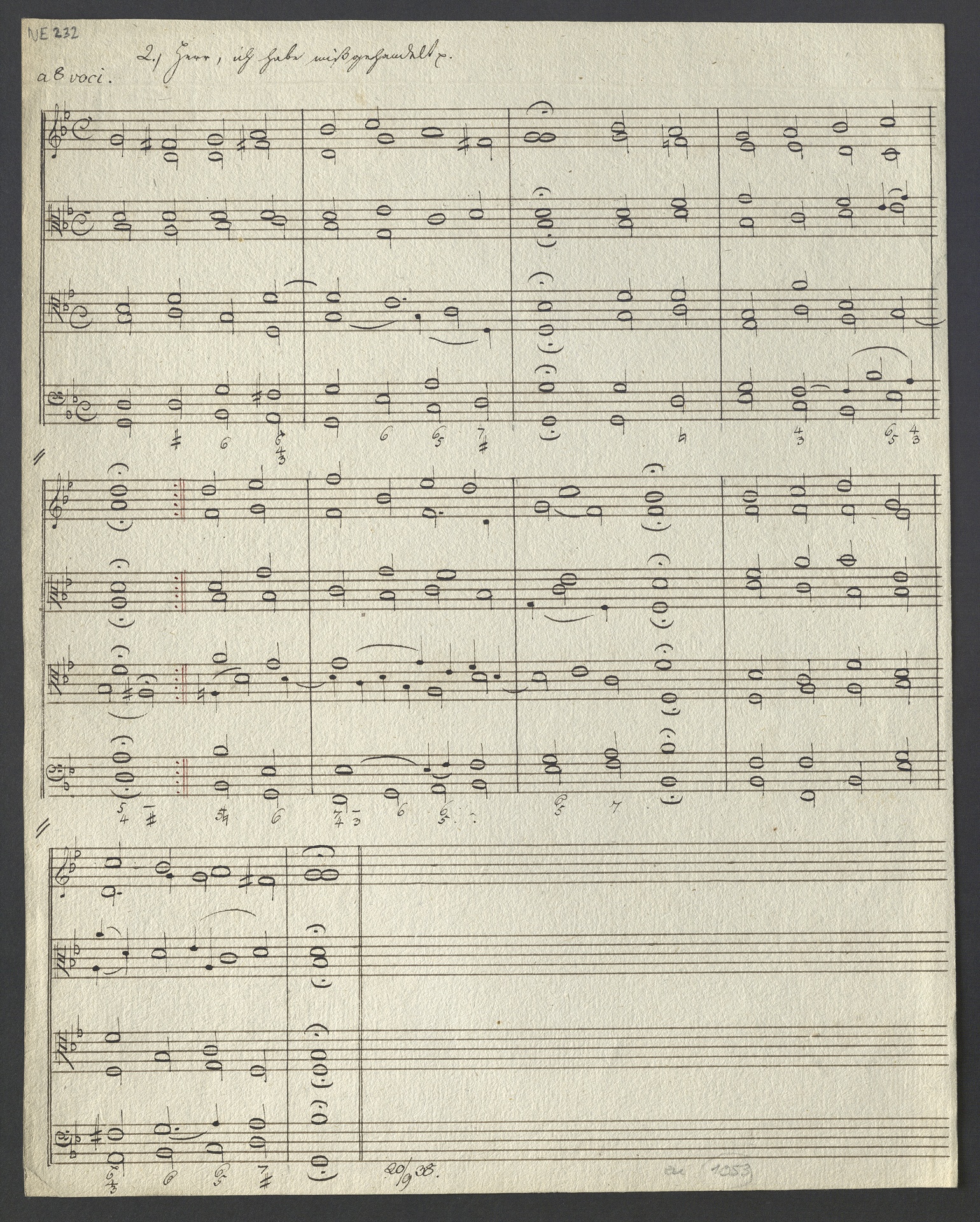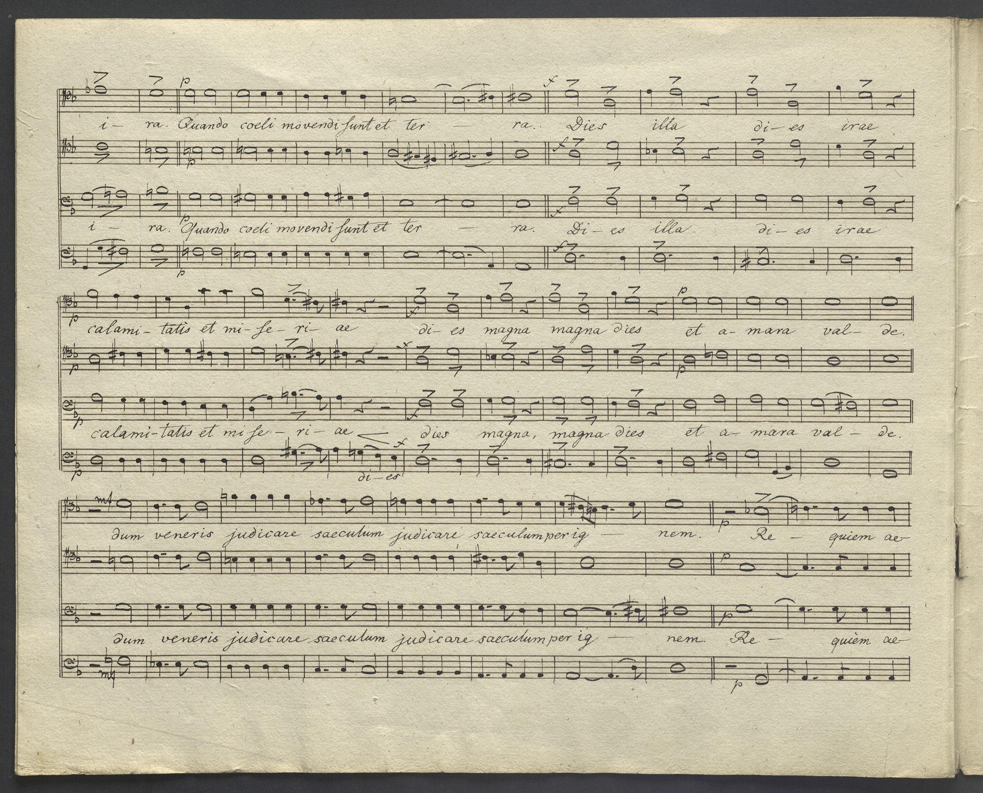 Ludwig van Beethoven, Equale für vier Posaunen (d-Moll, D-Dur, B-Dur) WoO 30, Bearbeitung von Ignaz von Seyfried für Männerchor, vier Posaunen oder Klavier, Partitur, Stimmen, Abschrift