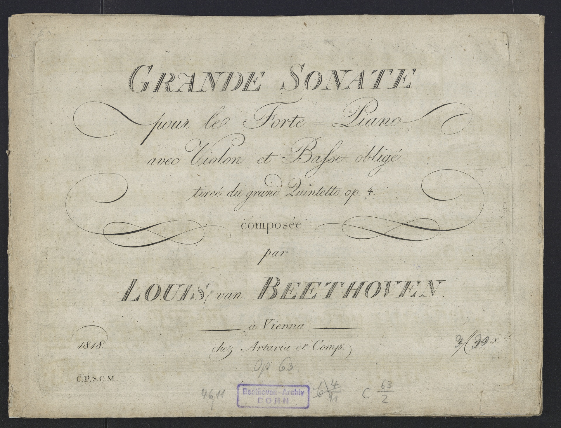 Ludwig van Beethoven, Trio für Klavier, Violine und Violoncello (Es-Dur) op. 63, Stimmen, Artaria, 1818