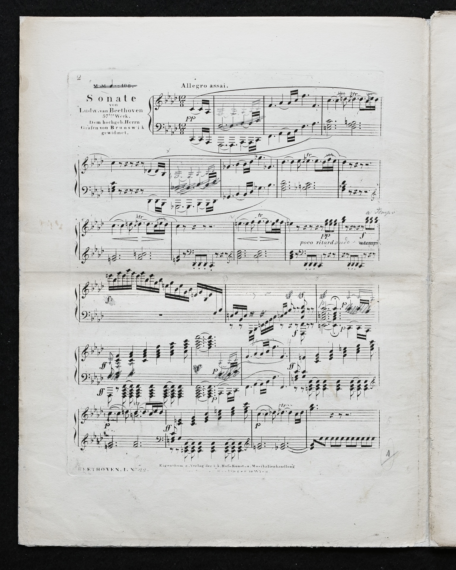 Ludwig van Beethoven, Sonate für Klavier (f-Moll) op. 57, Haslinger, 1,22