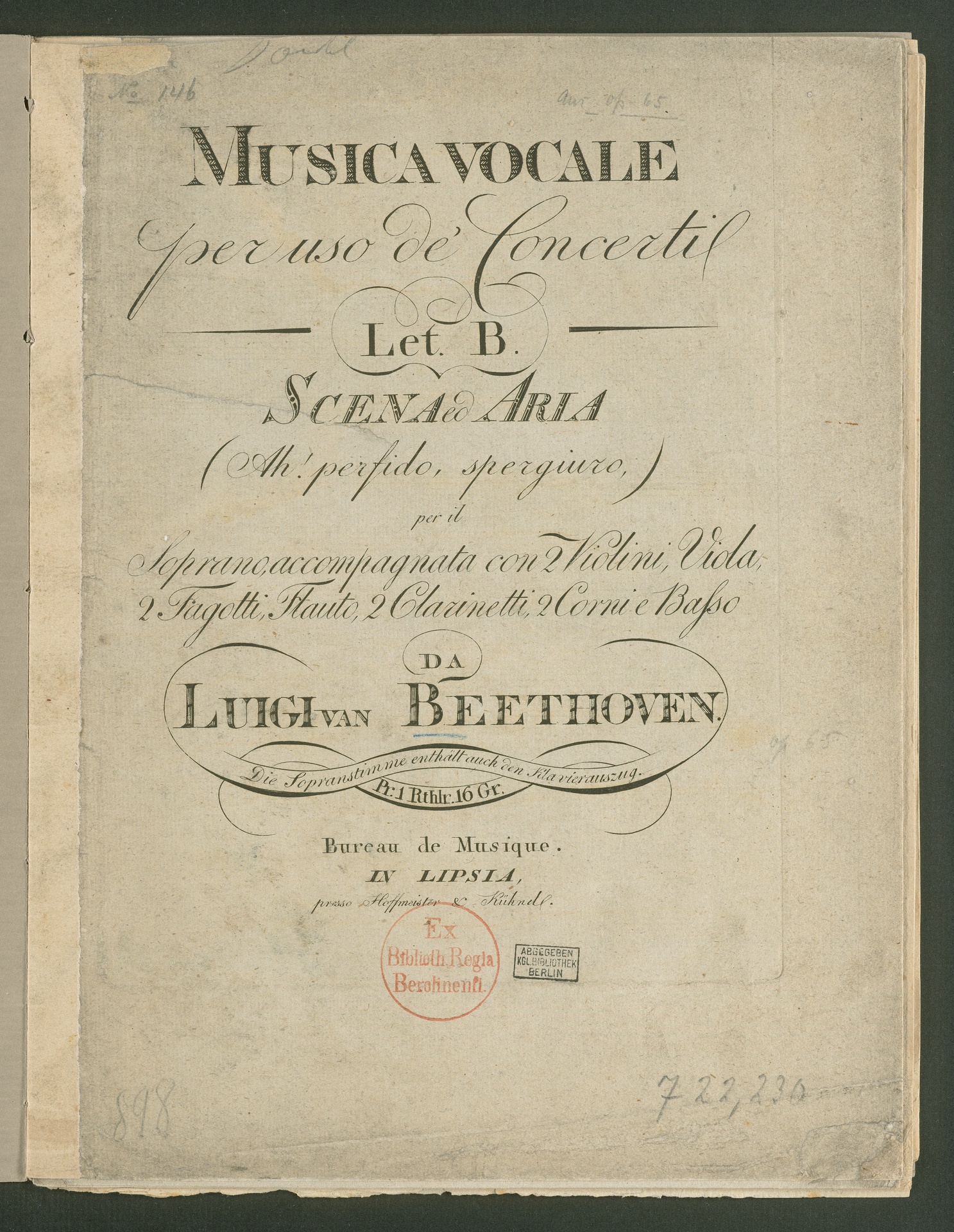 Ludwig van Beethoven, "Ah perfido!", Szene und Arie für Sopran und Orchester op. 65, Stimmen, Hoffmeister und Kühnel, 410