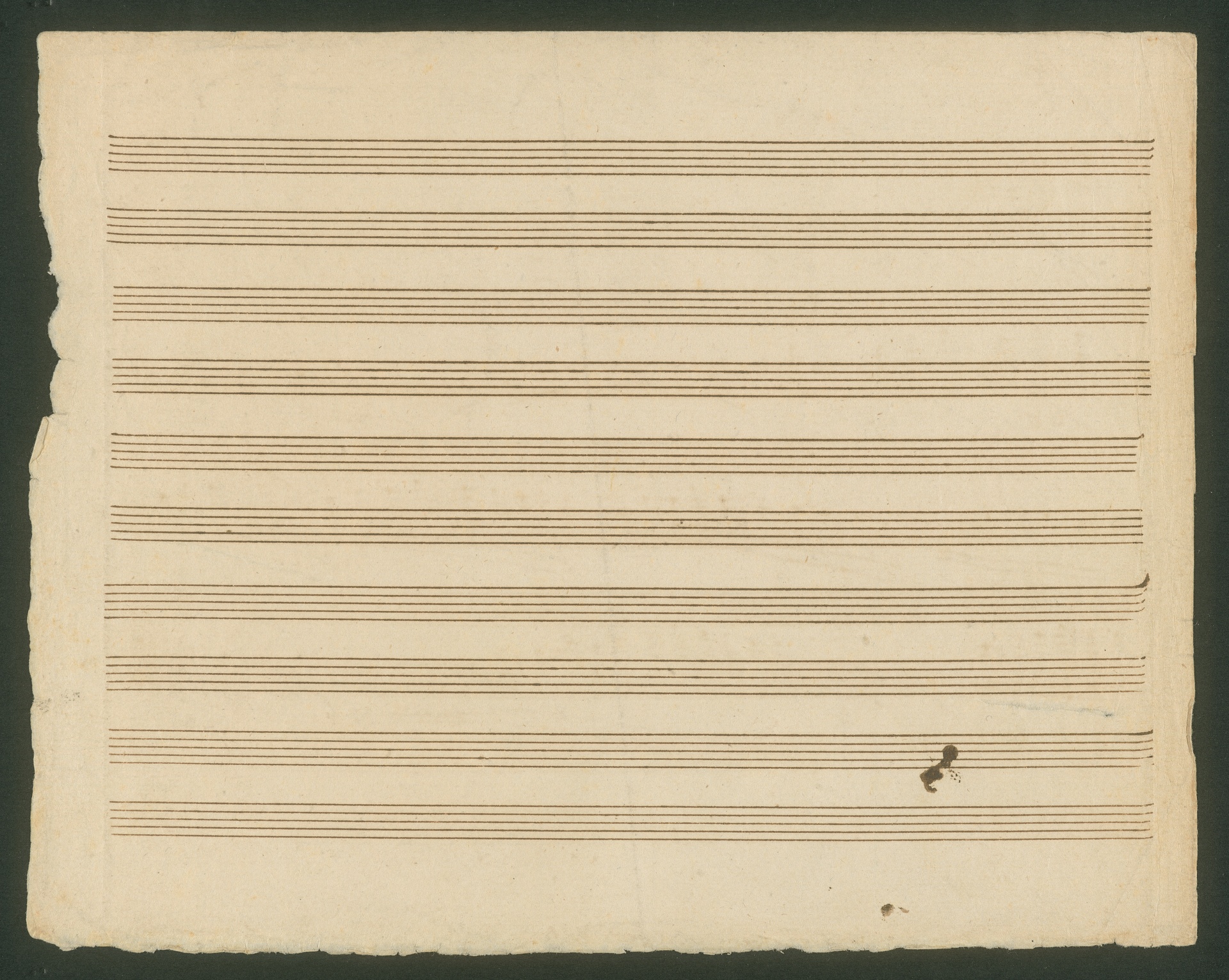 The old call number "Beethowen 101" gives it away: as with all of Beethoven's other cadenzas for the Fourth Piano Concerto, this one was also inserted into the original edition of the concerto in the music collection of Archduke Rudolph. Yet unlike the other ones it is not a cadenza in the strictest sense but rather a transition, which has been fully written out, within the last movement. The finale of the Fourth Piano Concerto is a rondo. This movement is constructed like a circle because the refrain keeps returning. The circular form is interrupted by different interludes. Before the theme returns each time in the orchestra, the solo piano has a transitional part, which is written out. Beethoven obviously wanted to change the second transition - the autograph score shown here bears the heading "Rondo 1ter Eingang ins Thema bleibt, 2ter Eingang ins Thema [:]" ("Rondo 1st entry to the theme remains, 2nd entry into the theme [:]"). He therefore considered the first transition to be fitting but intended the second to be replaced by this manuscript. The handwritten note beneath the old call number also bears this out: "pag 32". The relevant place in the piano part of the original edition, in which the manuscript was inserted, can actually be found on page 32 (and not on page 30, as suggested by the correction in pencil underneath). (J.R.)