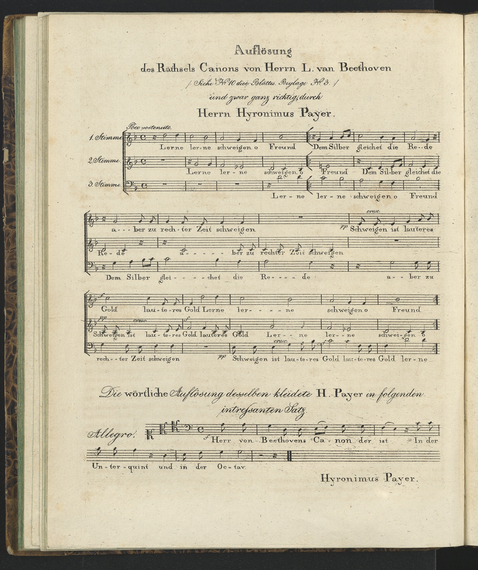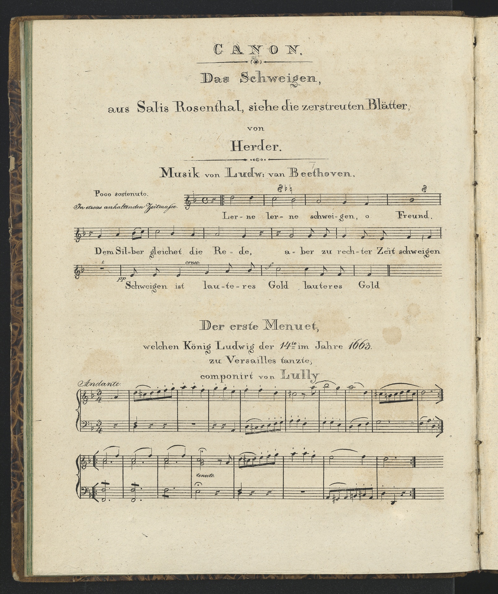 Ludwig van BeethovenJohann Gottfried von Herder, "Das Schweigen", Rätselkanon WoO 168, Allgemeine musikalische Zeitung mit besonderer Rücksicht auf den österreichischen Kaiserstaat