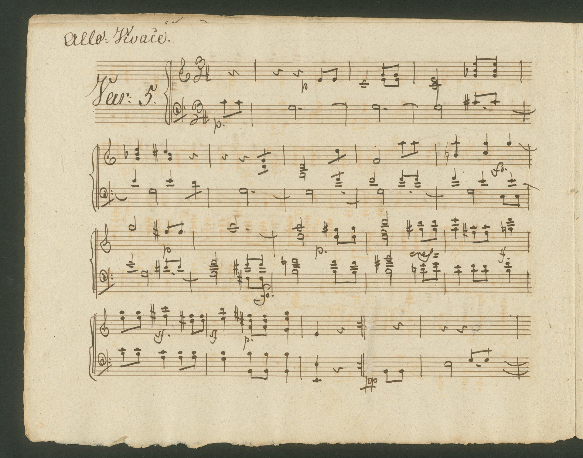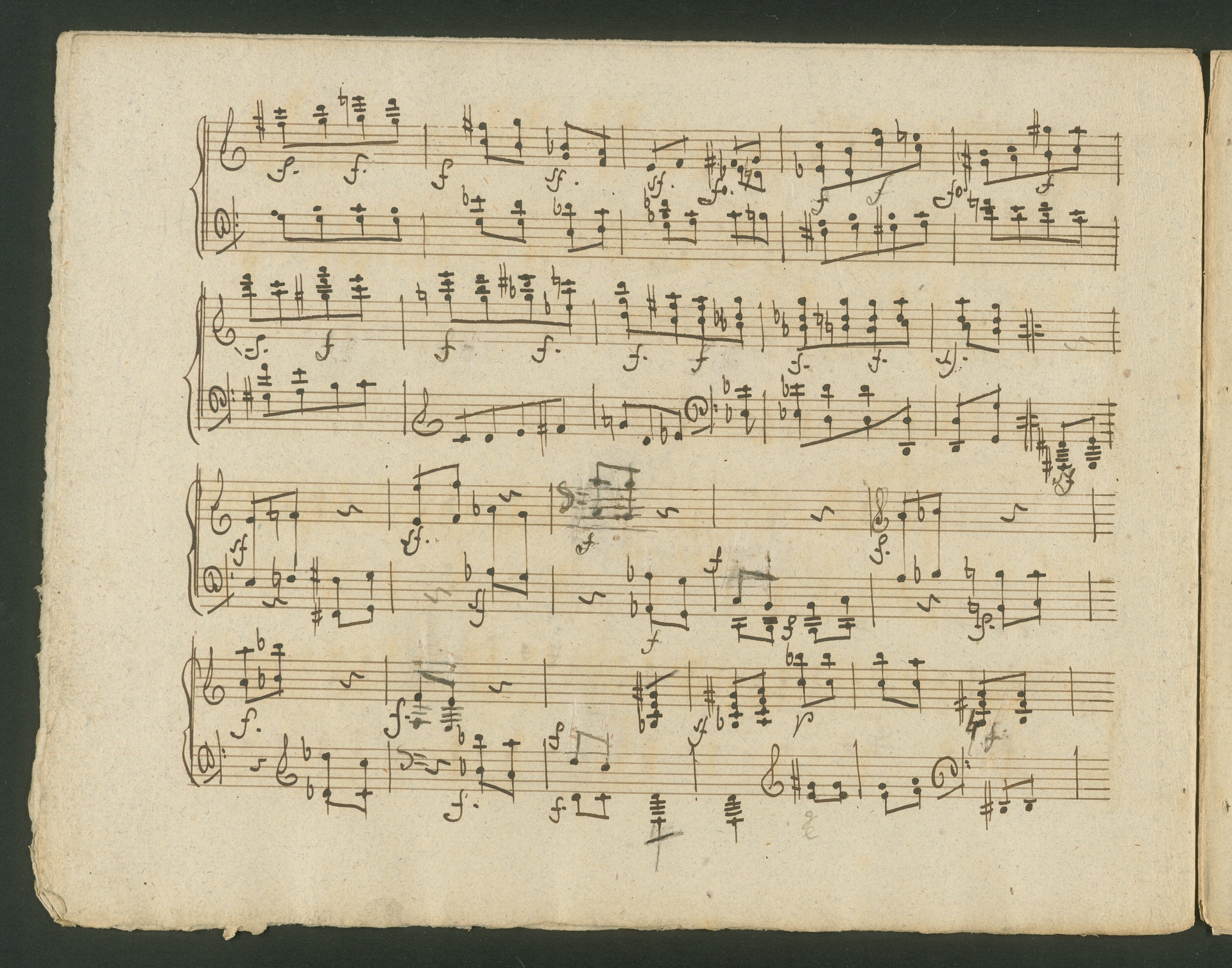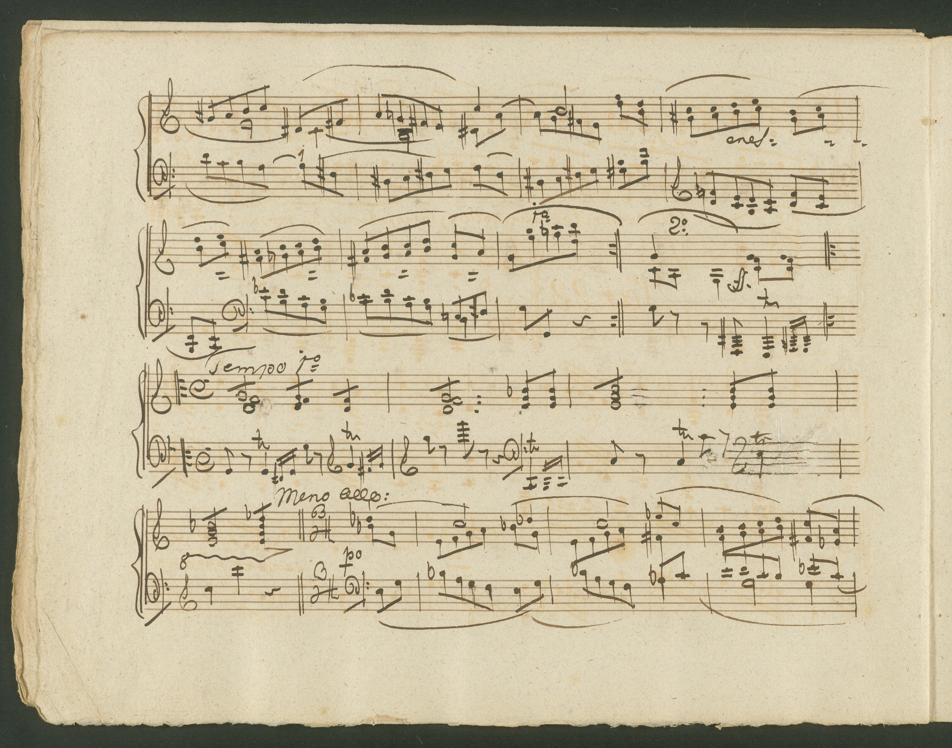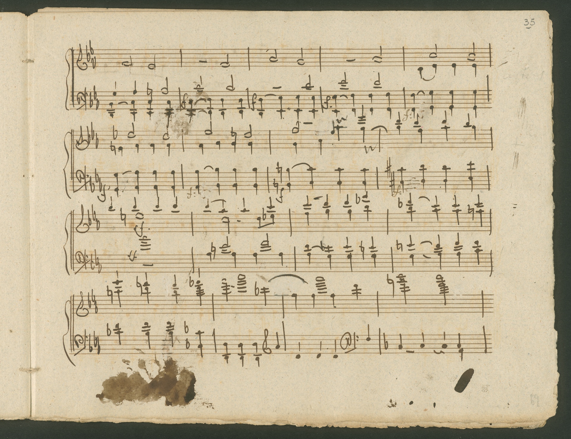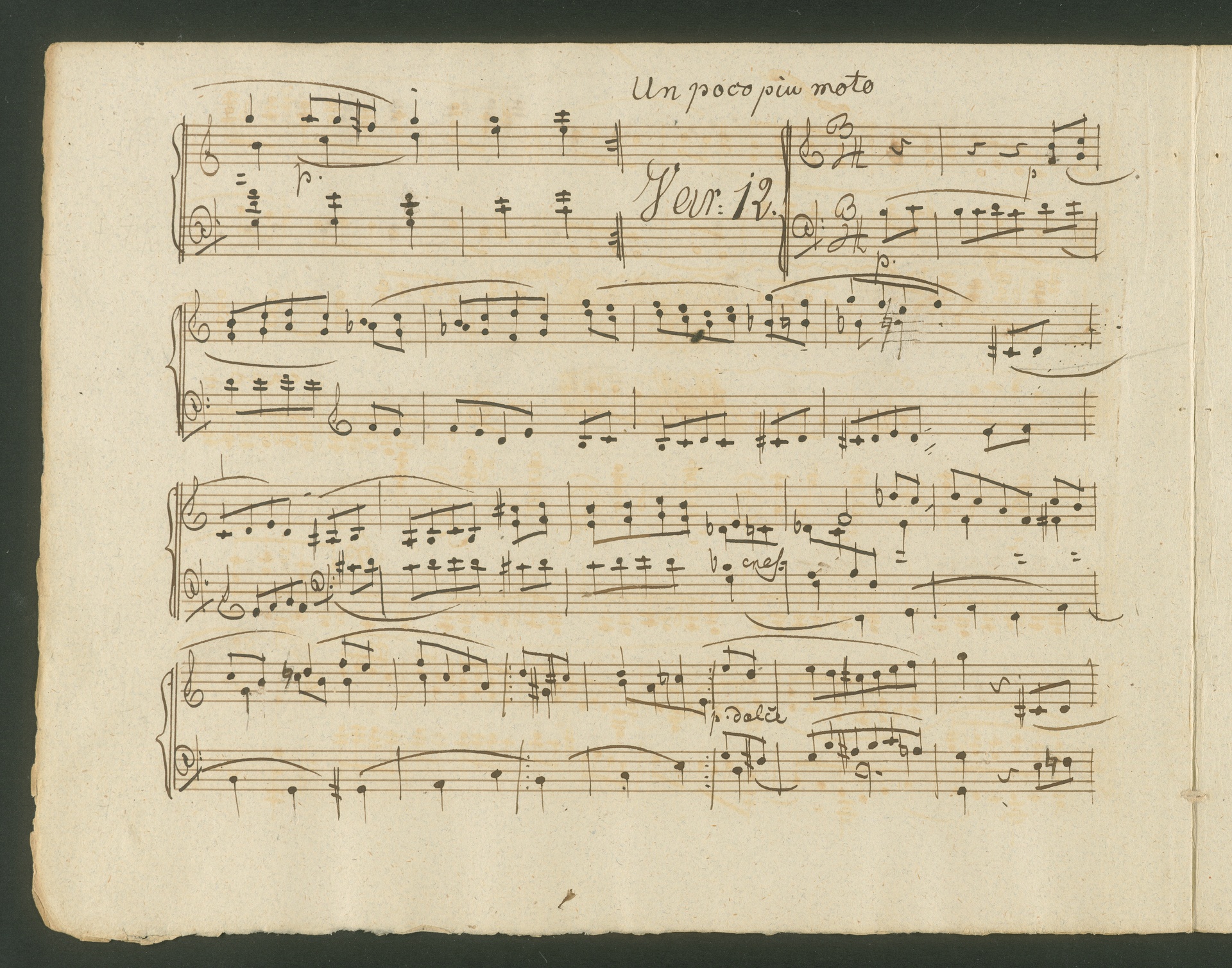Beethoven's former pupil Ferdinand Ries lived in London from 1813 to 1824. Out of feelings of kindliness and closeness he often represented the interests of his former teacher with London publishers. Ries was also supposed to offer the Diabelli-Variations op. 120 for publication in England. As early as 25 April 1823 Beethoven informed him, "In a few weeks you will also receive a new work, 33 Variations on a theme (Waltzes op. 120), dedicated to your wife". The corrected copy is this manuscript, Beethoven wrote the dedication and date on the title page, "33 Veränderungen über einen walzer Der Gemahlin meines lieben Freundes Ries gewidmet von Ludwig van Beethoven Vien am 30ten April 1823" (33 changes on a waltz dedicated by Ludwig van Beethoven to the wife of my dear friend Ries, Vienna 30 April 1823). In the end, however, there was no English edition, as Ries writes in his memoirs on Beethoven, "For Beethoven had put off sending them for so long and forgotten his commission, that when I took the variations to Boosey [the London publisher, who wanted to publish the work], we found it had already been engraved in Vienna, and with a dedication to Madame Brentano." (J.R.)