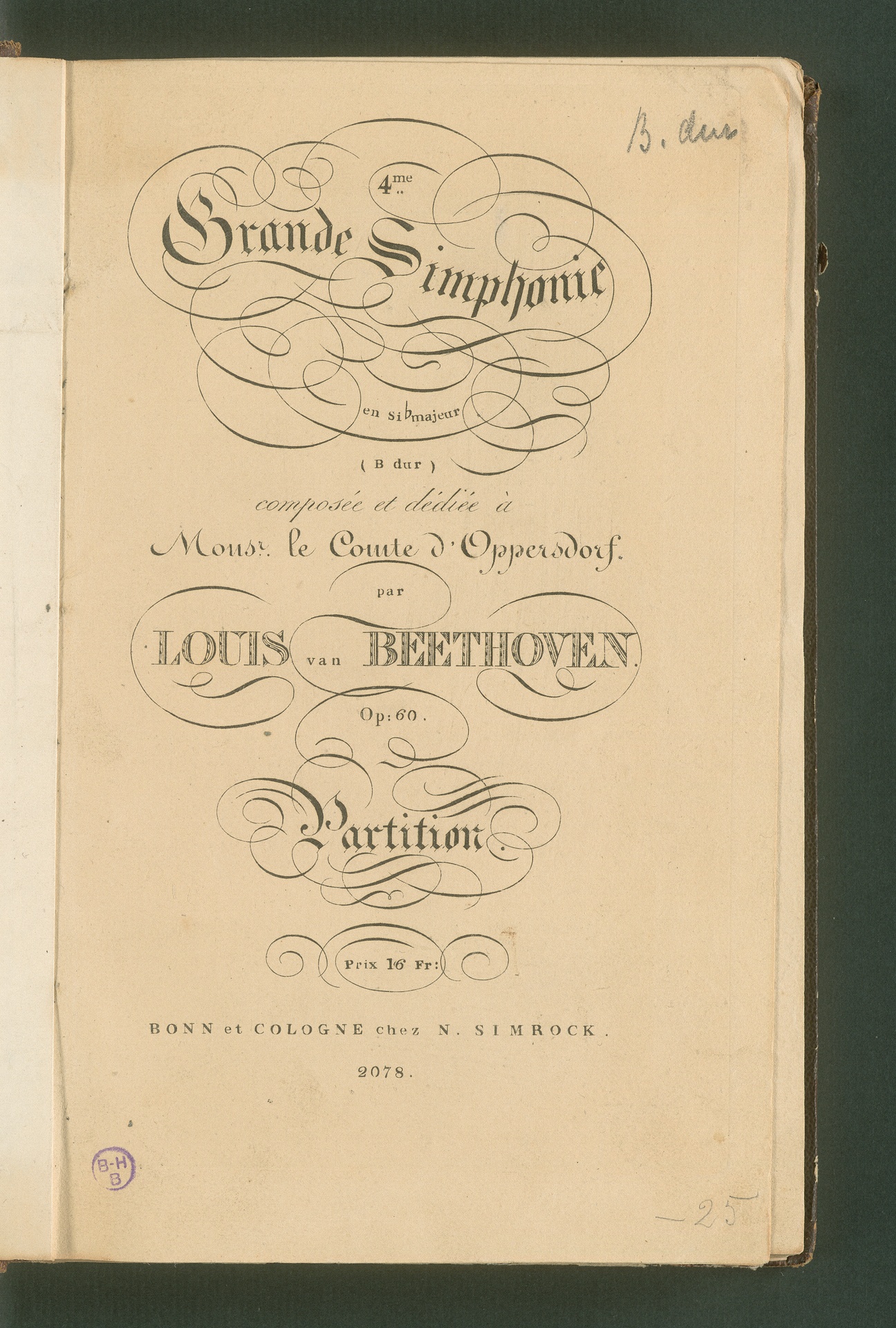 Ludwig van Beethoven, Sinfonie Nr. 4 (B-Dur) op. 60, Partitur, Simrock, 2078
