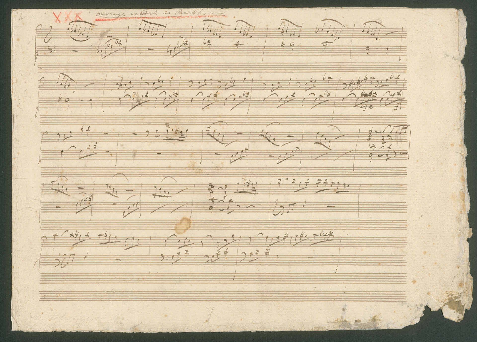 Ludwig van Beethoven, Zwei Stücke für Klavier (Orphika) (C-Dur, F-Dur) WoO 51, Autograph, Fragment