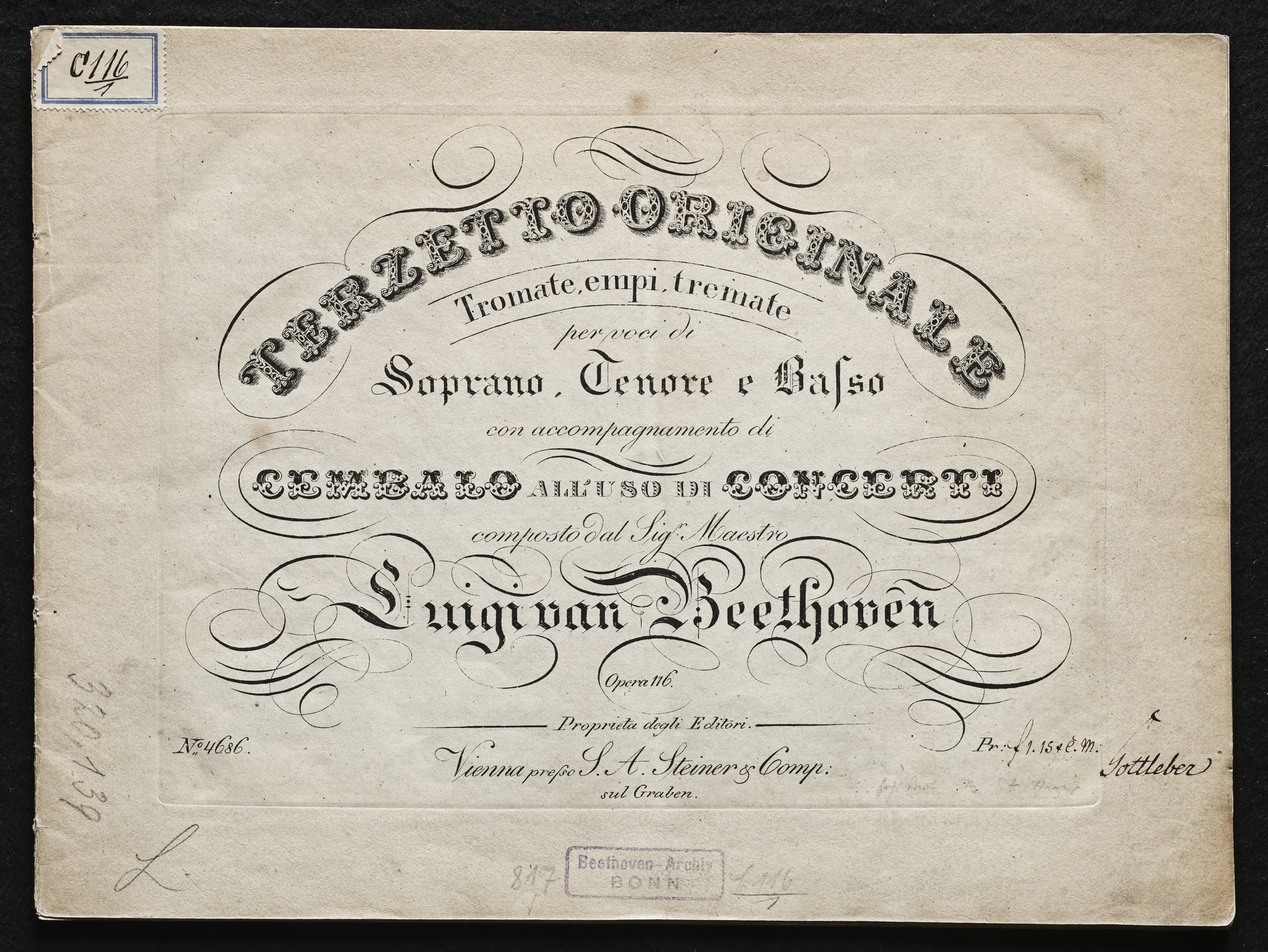 Ludwig van Beethoven, "Tremate, empi, tremate", Terzett für Sopran, Tenor, Bass und Orchester op. 116, Klavierauszug, Steiner, 4686