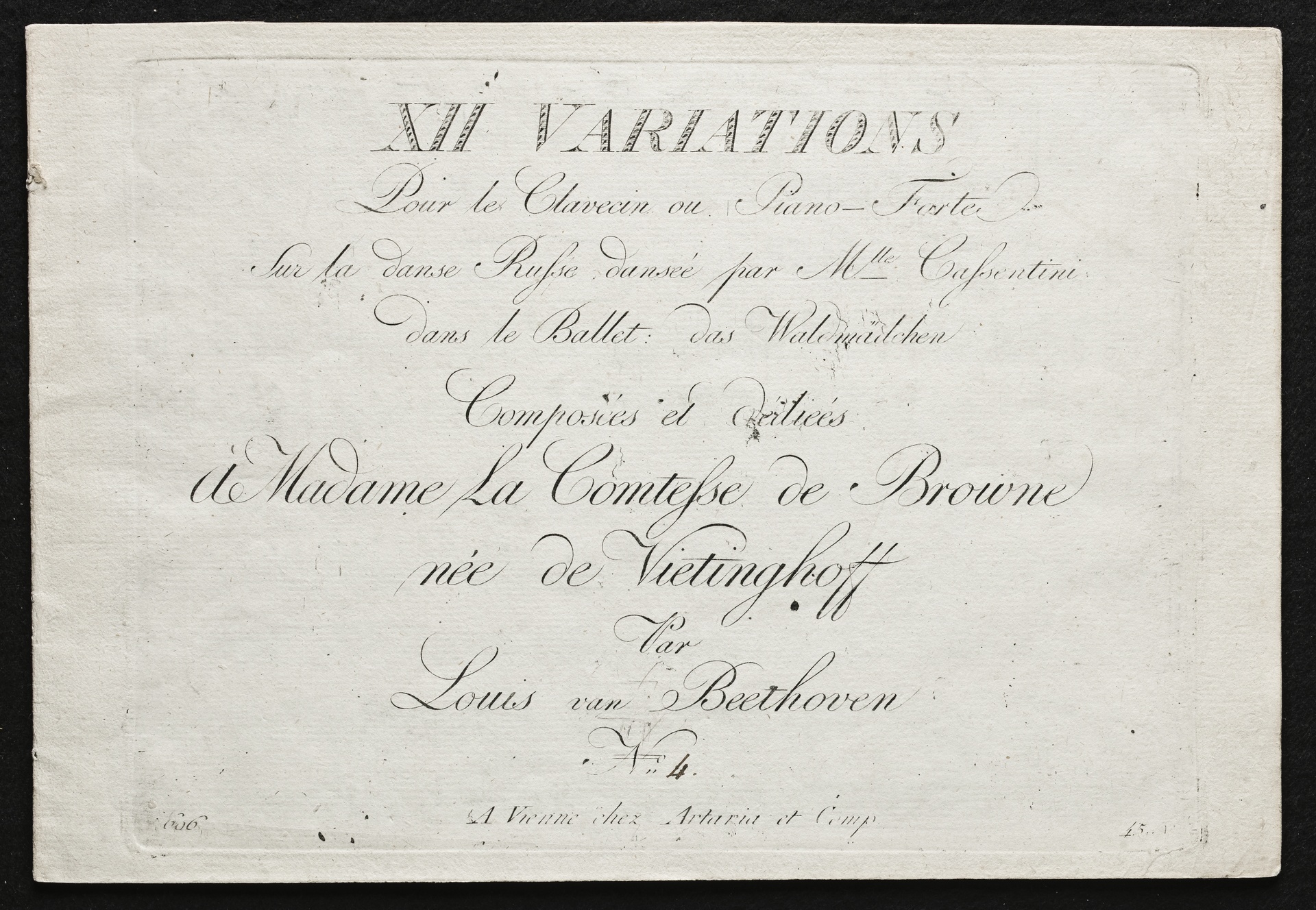 Ludwig van Beethoven, Variationen über den russischen Tanz aus Paul Wranitzkys Ballett "Das Waldmädchen" für Klavier (A-Dur) WoO 71, Artaria, 696