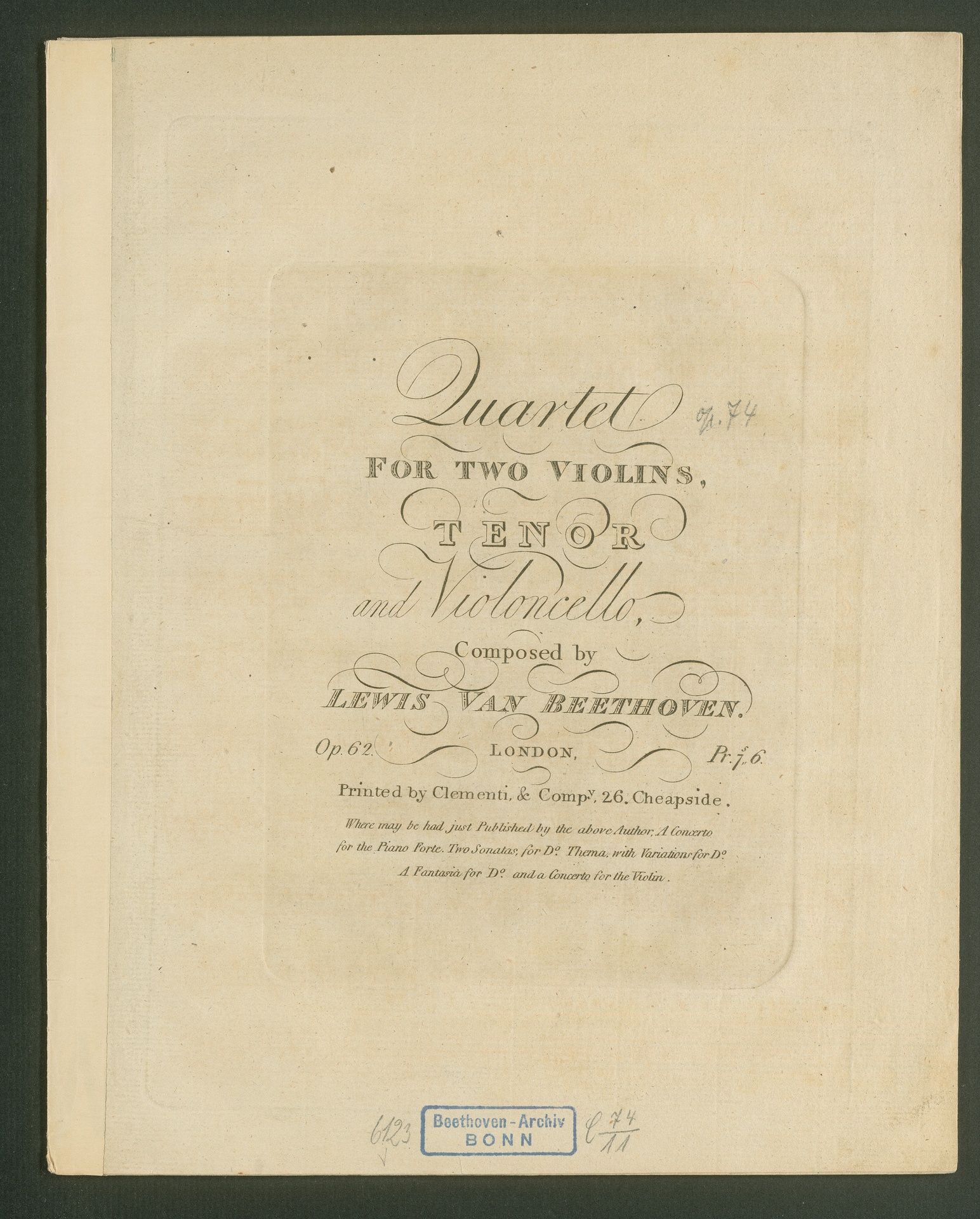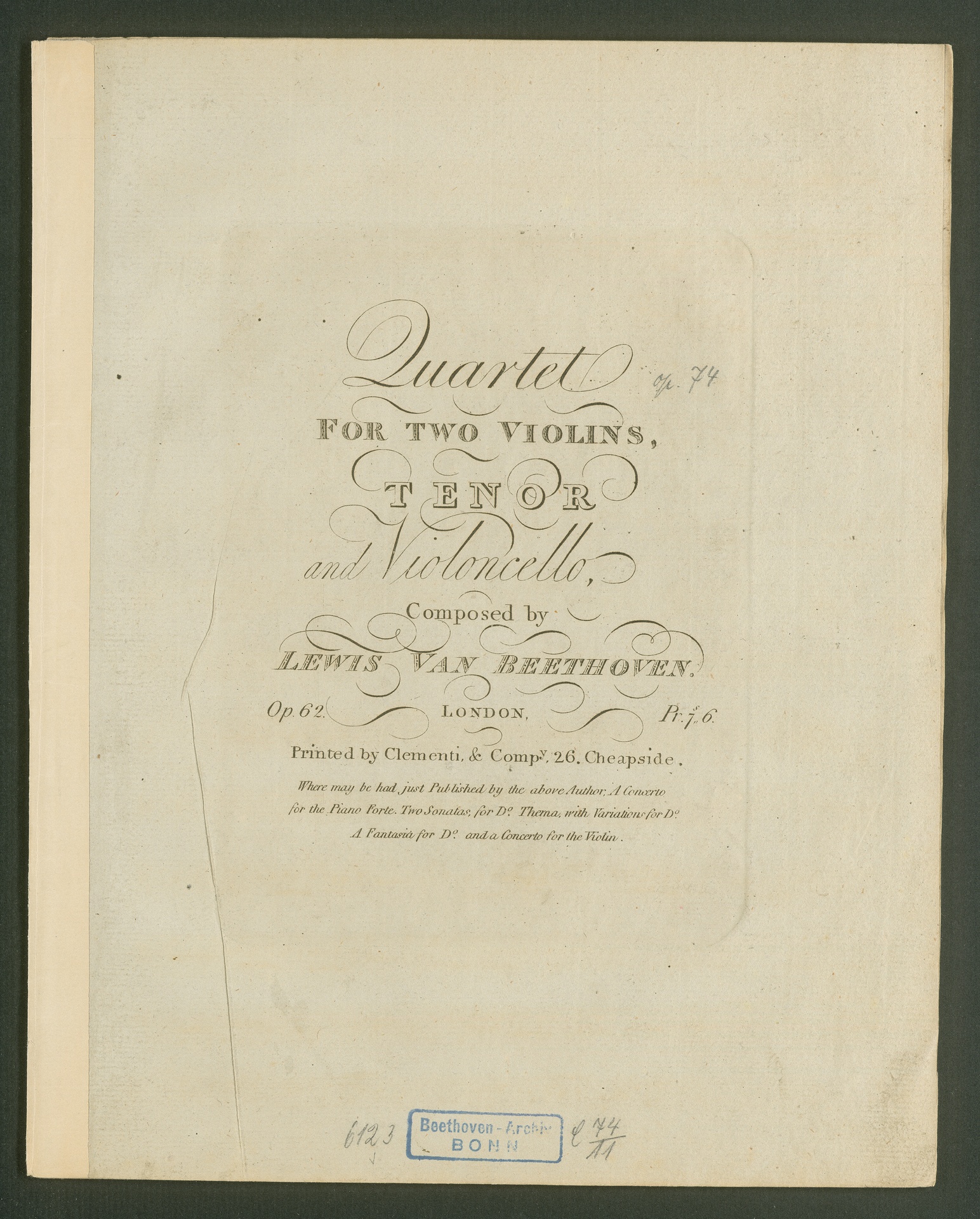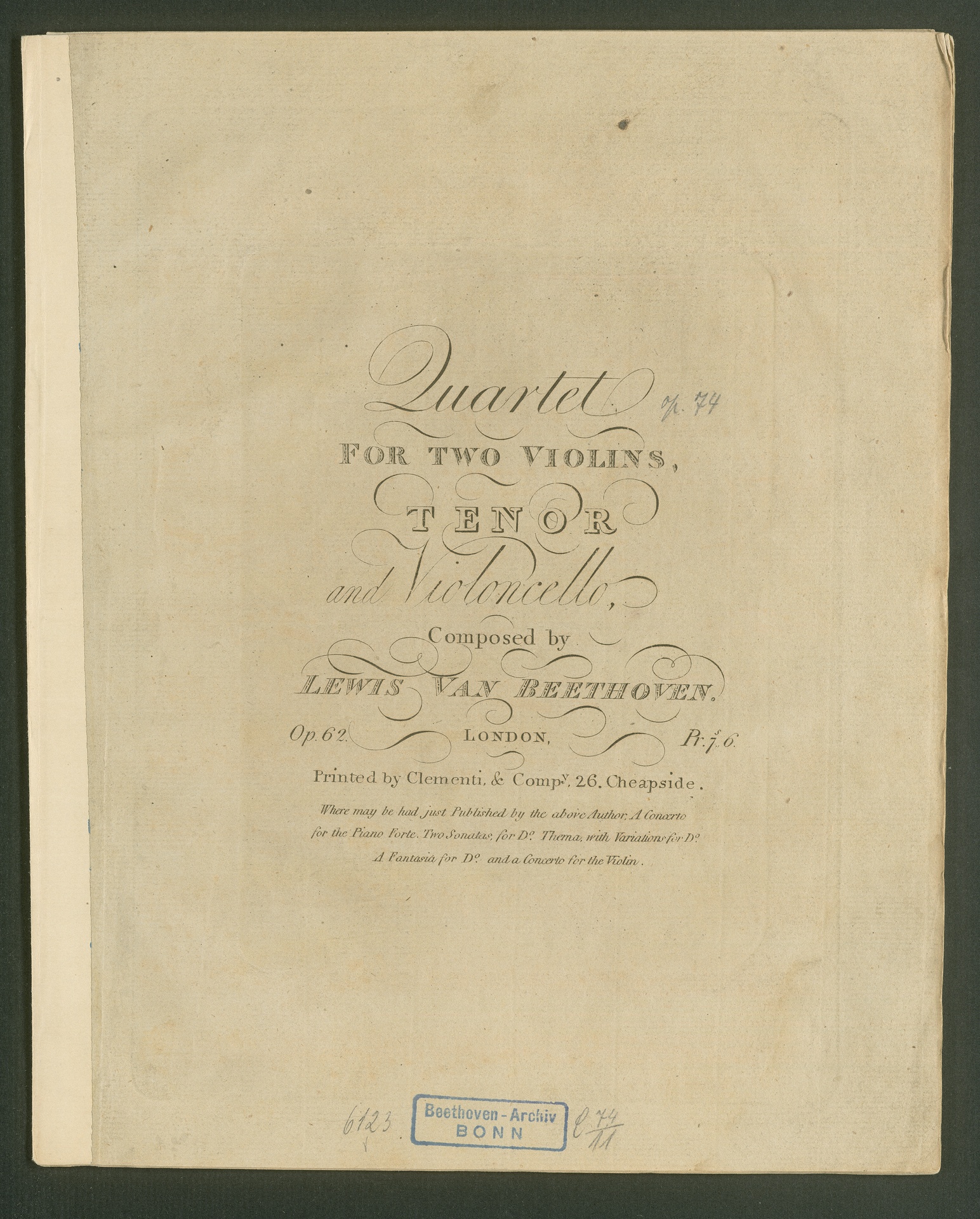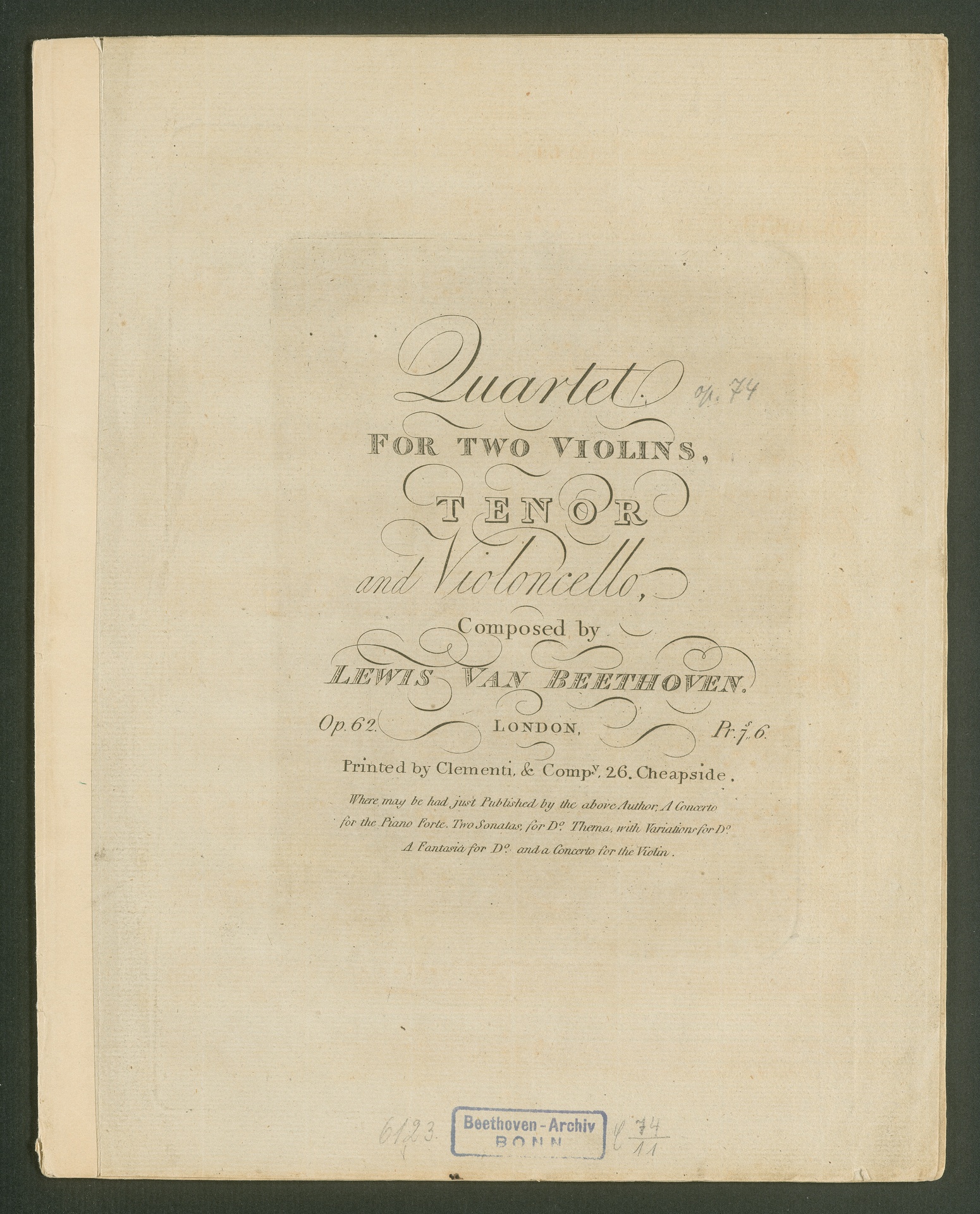 Ludwig van Beethoven, Quartett für 2 Violinen, Viola, Violoncello (Es-Dur) op. 74, Stimmen, Clementi