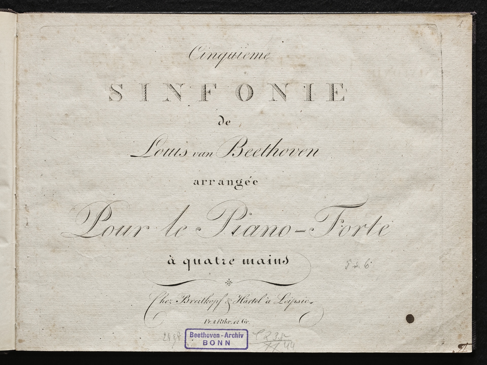 Ludwig van Beethoven, Sinfonie Nr. 5 (c-Moll) op. 67, Bearbeitung für Klavier zu 4 Händen von Friedrich Schneider, Breitkopf und Härtel, 1346