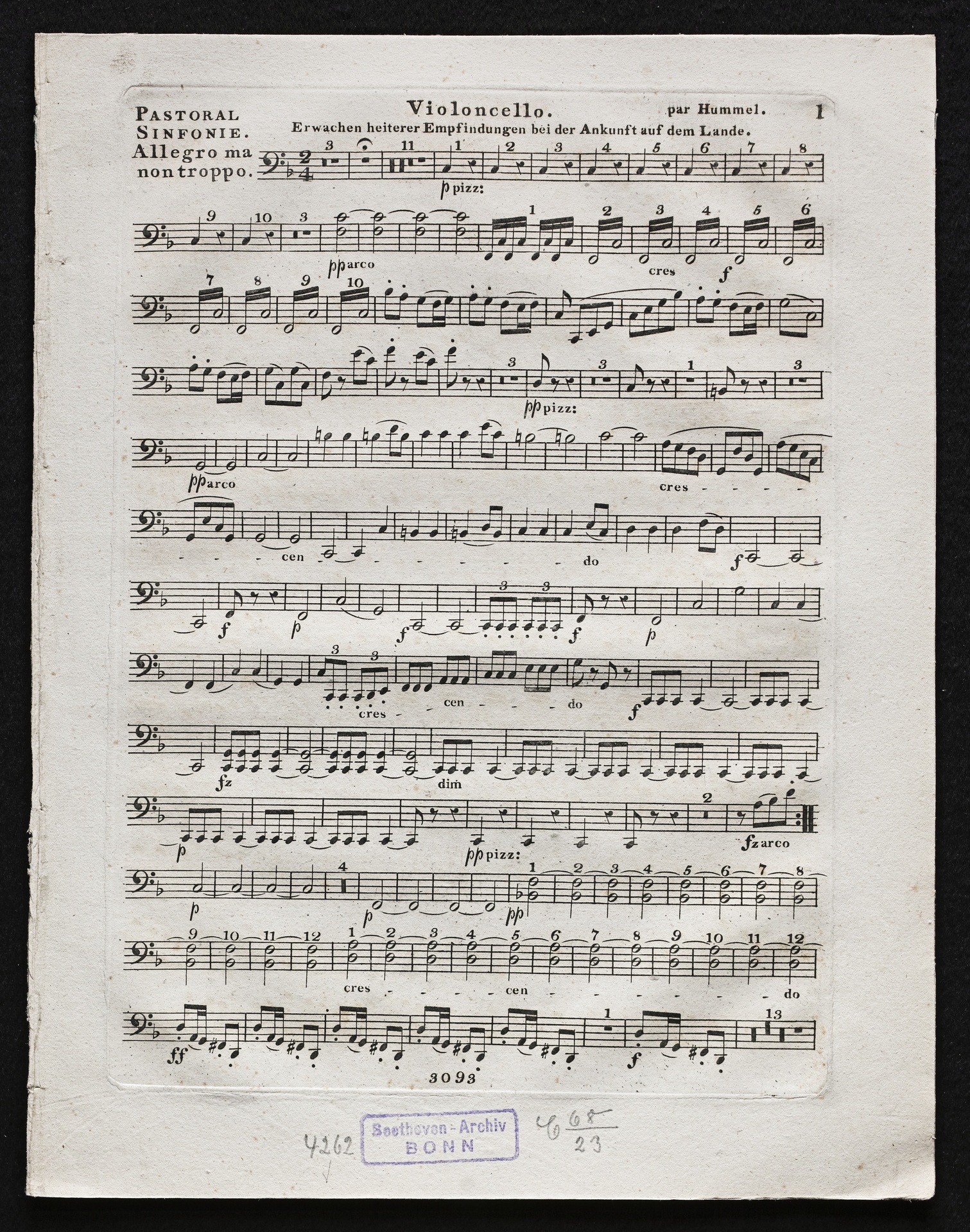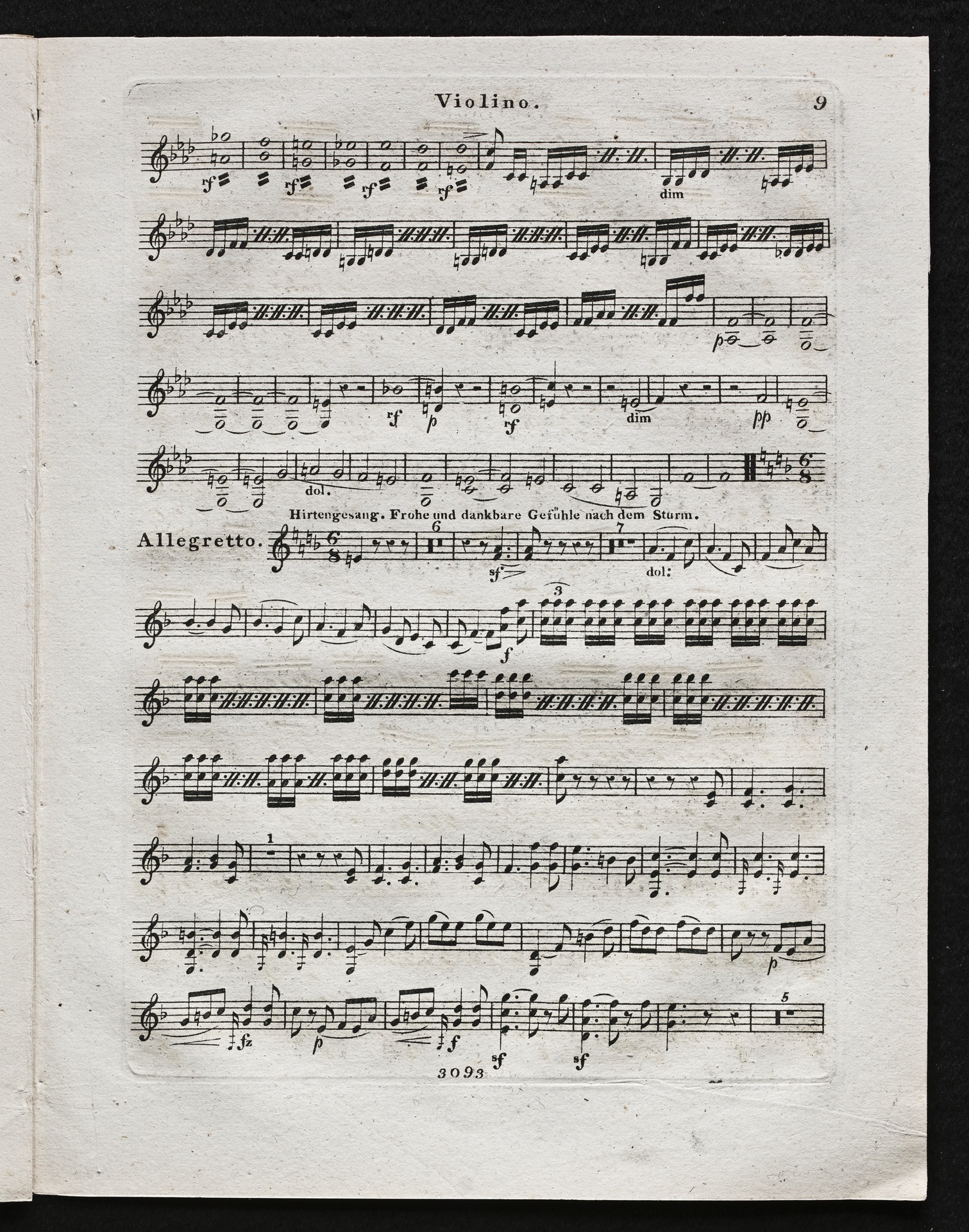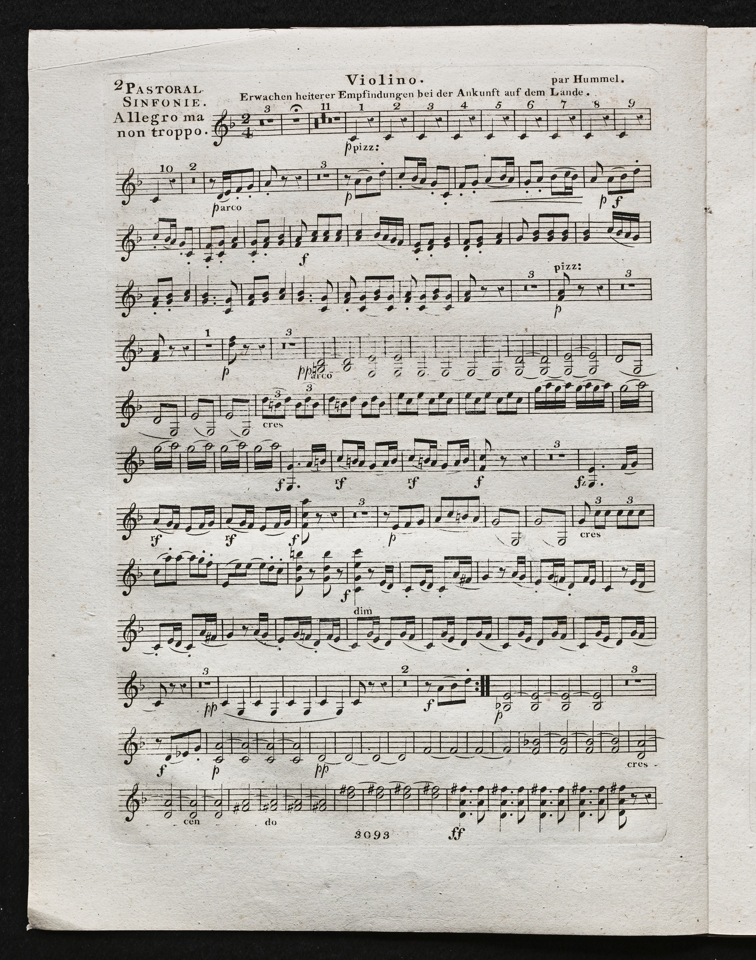 Ludwig van Beethoven, Sinfonie Nr. 6 (F-Dur) op. 68 (Pastorale), Bearbeitung für Flöte, Violine, Violoncello und Klavier von Johann Nepomuk Hummel, Stimmen, Schott, 3093