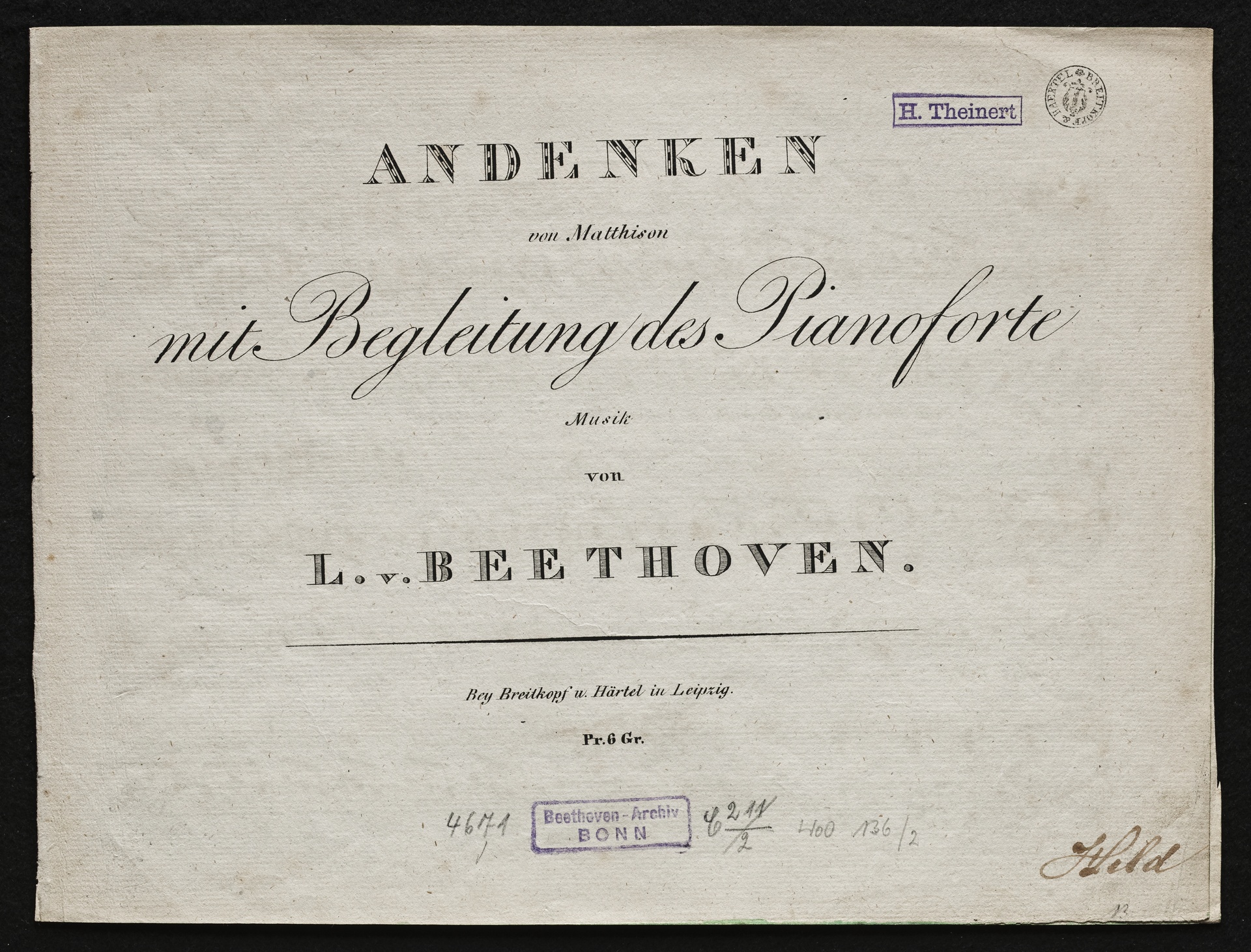 Ludwig van BeethovenFriedrich von Matthisson, "Andenken", Lied für Singstimme und Klavier WoO 136, Breitkopf und Härtel, 2699