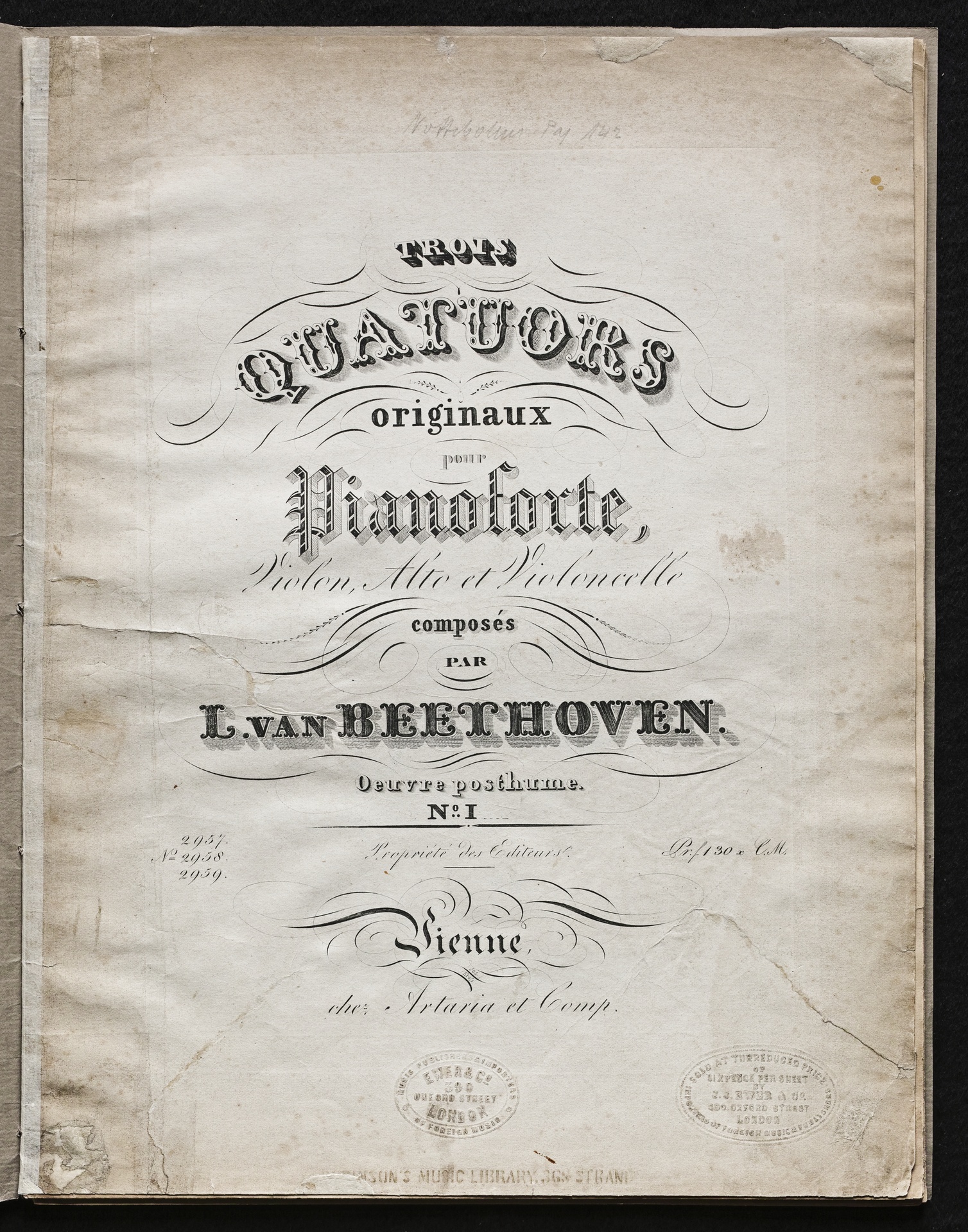 Ludwig van Beethoven, Quartett für Klavier, Violine, Viola, Violoncello (Es-Dur) WoO 36, 1, Stimmen, Artaria, 2957
