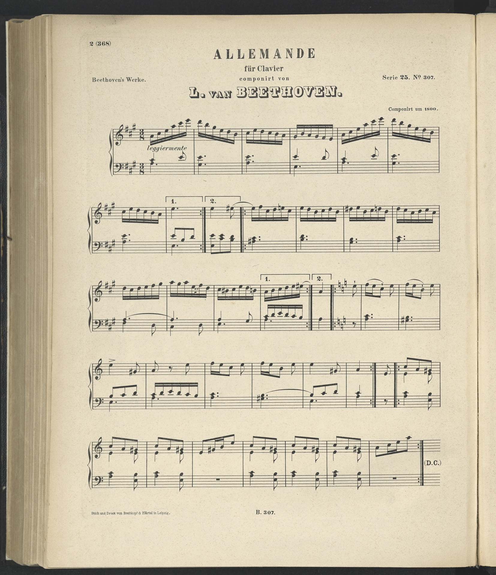 Ludwig van Beethoven, Allemande für Klavier (A-Dur) WoO 81, Breitkopf und Härtel, 307