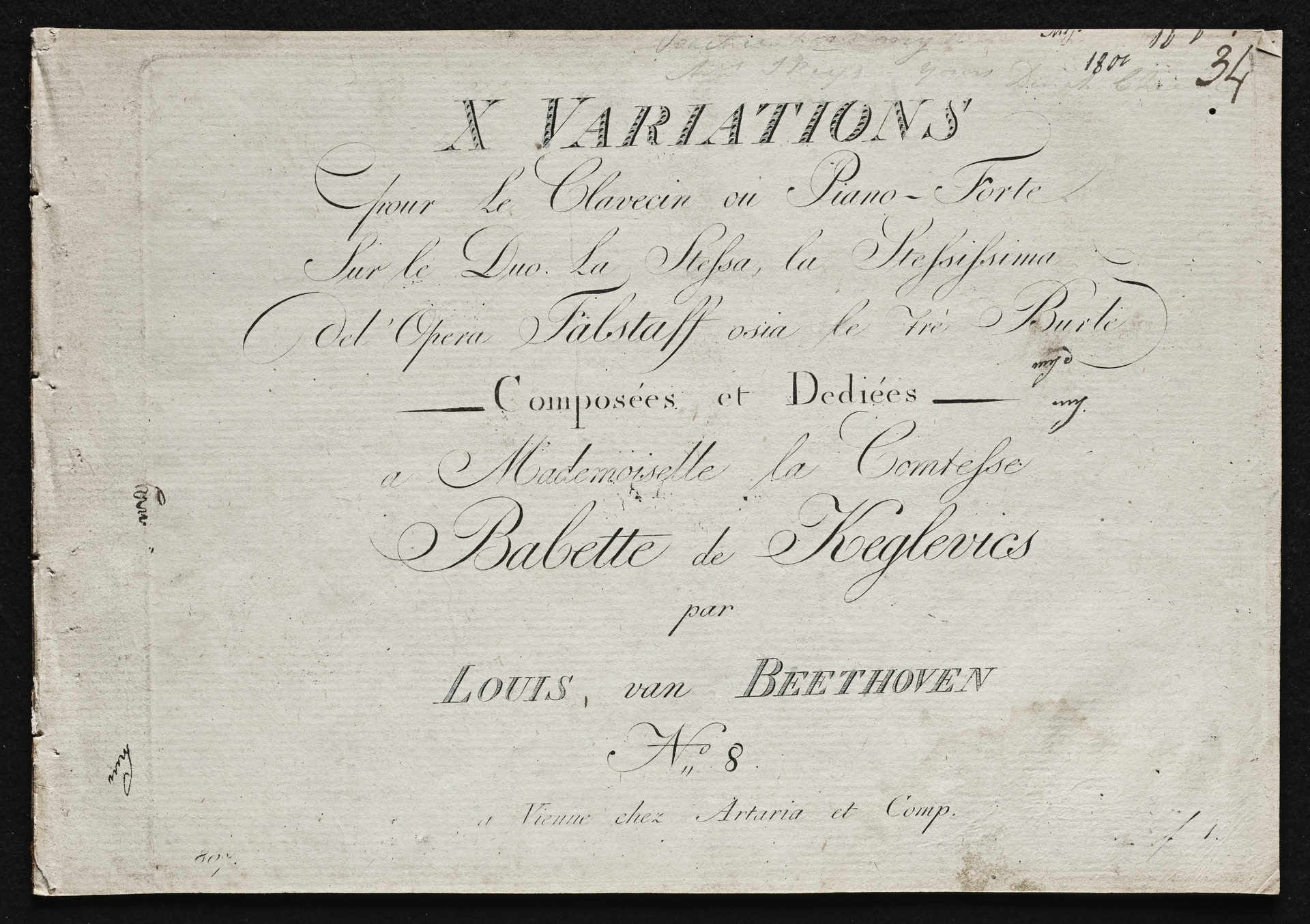 Ludwig van Beethoven, Variationen über das Duett "La stessa, la stessissima" aus Antonio Salieris Oper "Falstaff" für Klavier (B-Dur) WoO 73, Artaria, 807