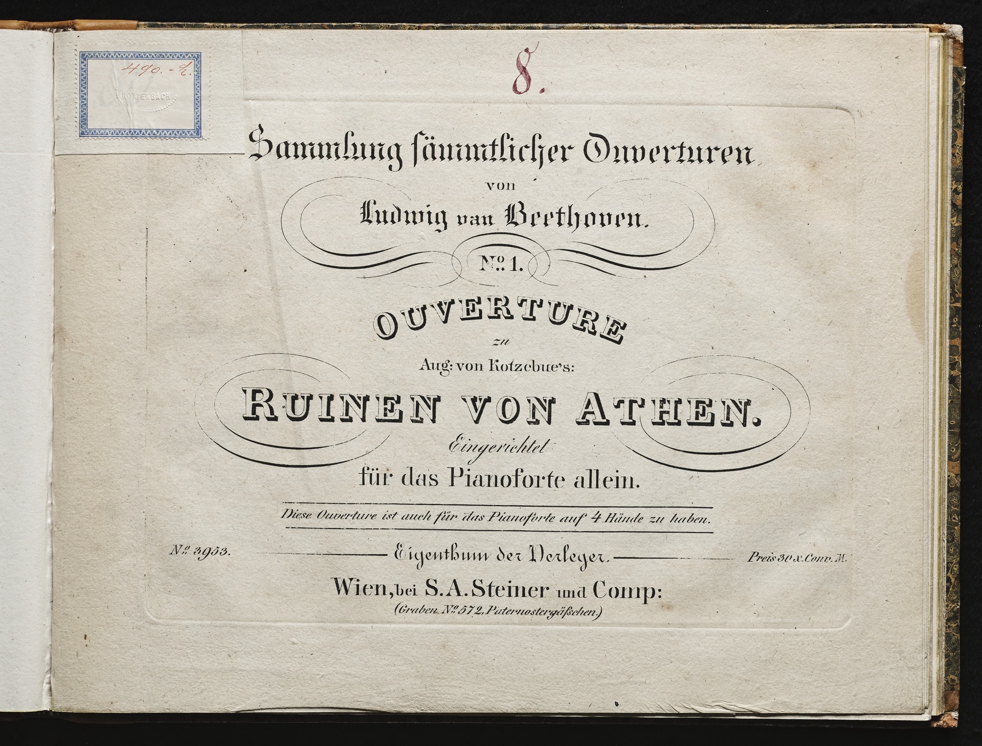 Ludwig van Beethoven, Ouvertüre (G-Dur) zu August von Kotzebues Festspiel "Die Ruinen von Athen" op. 113, Bearbeitung für Klavier, Steiner, 3953