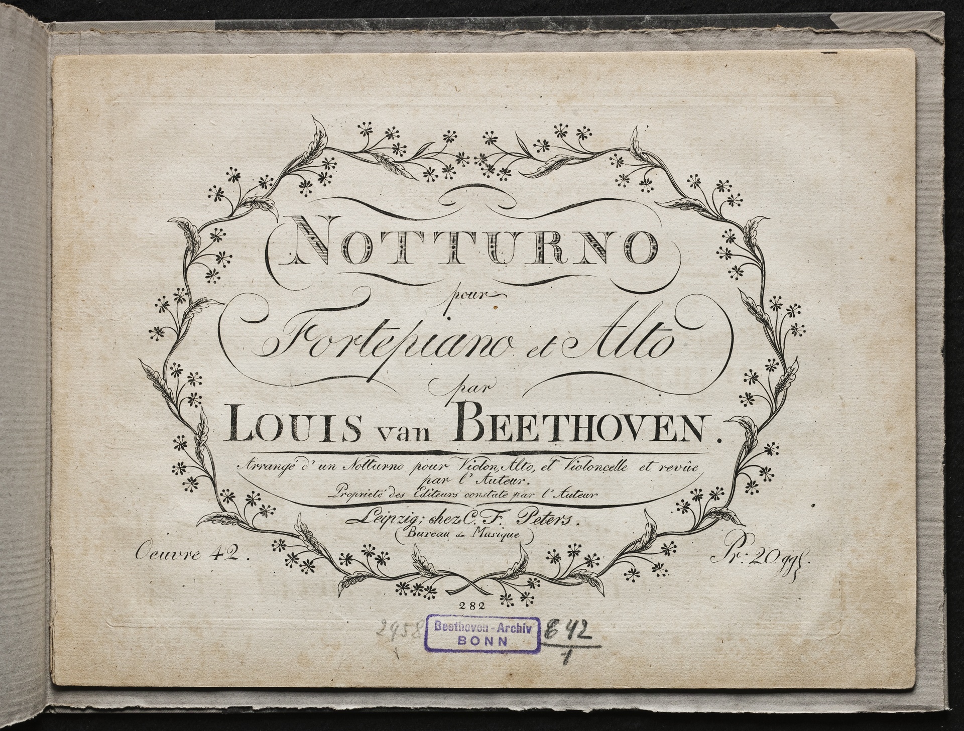 Ludwig van Beethoven, Notturno für Klavier und Viola (D-Dur) op. 42, Stimmen, Peters, 282