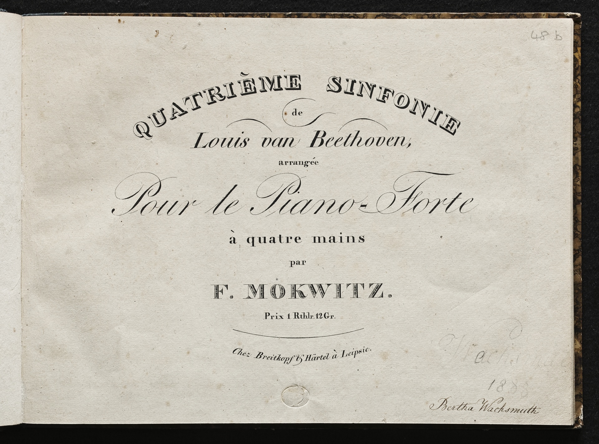 Ludwig van Beethoven, Sinfonie Nr. 4 (B-Dur) op. 60, Bearbeitung für Klavier zu 4 Händen von Friedrich Mockwitz, Breitkopf und Härtel, 3893