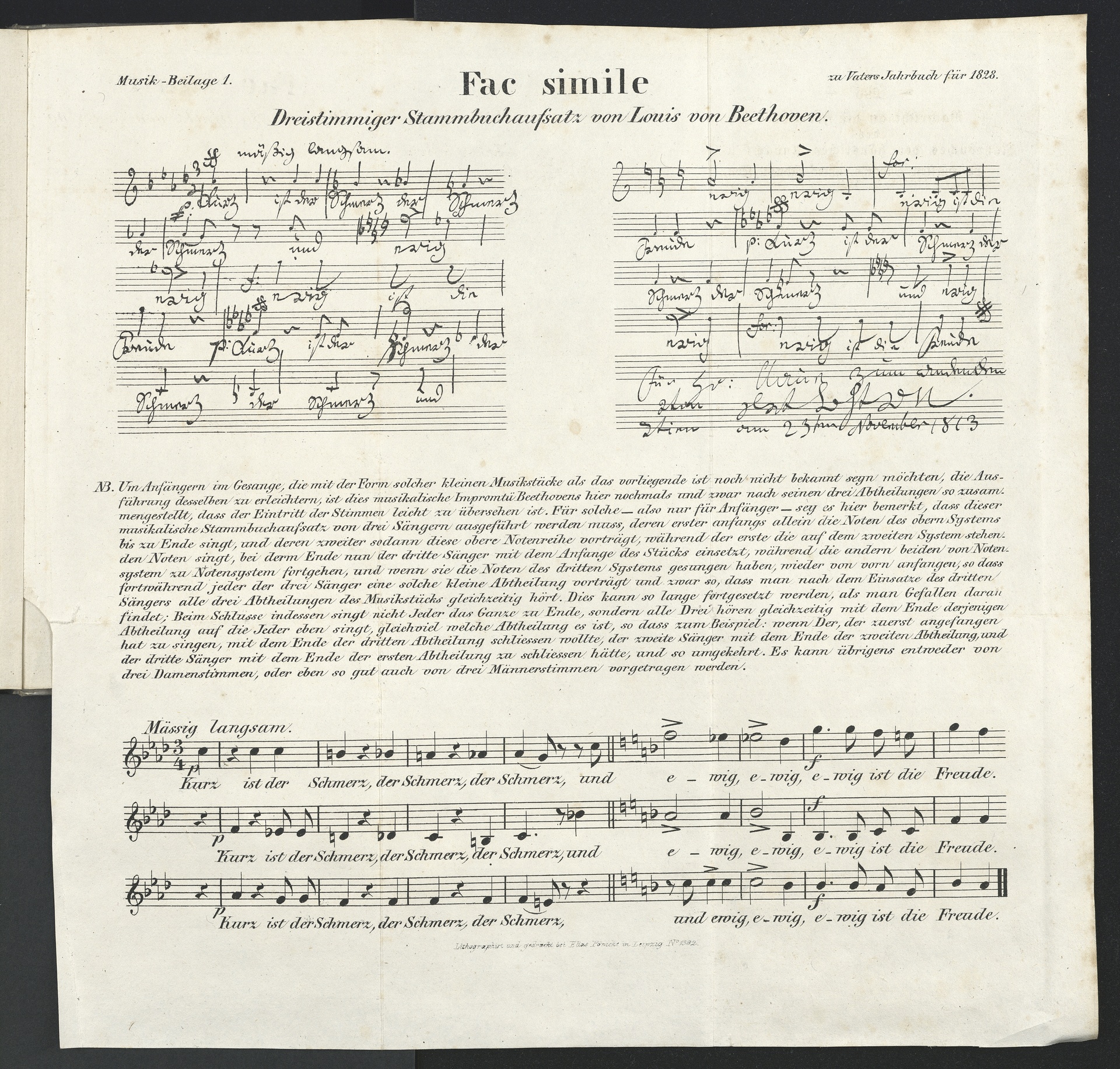 Ludwig van Beethoven, "Kurz ist der Schmerz", dreistimmiger Kanon WoO 163, Vaters Jahrbuch