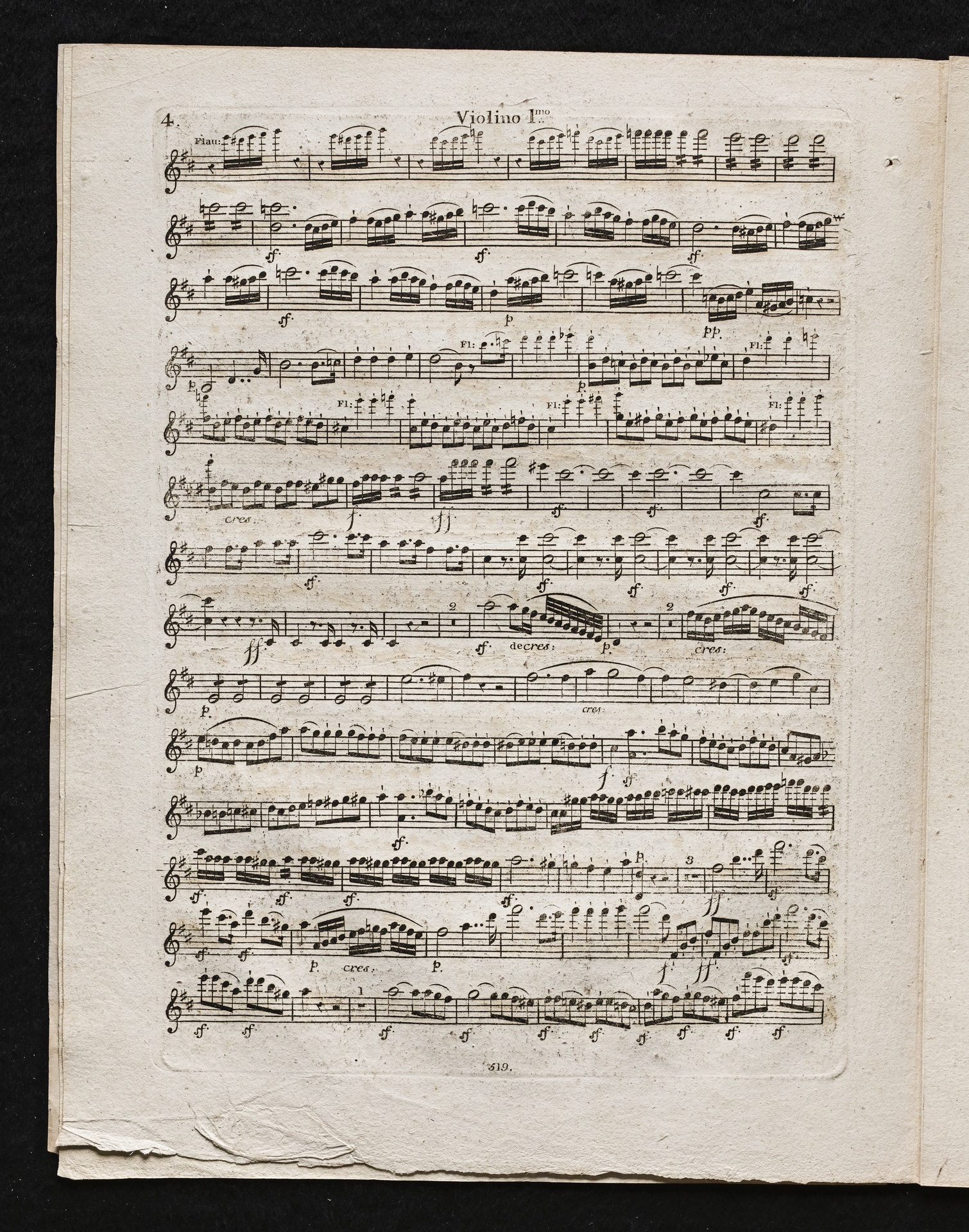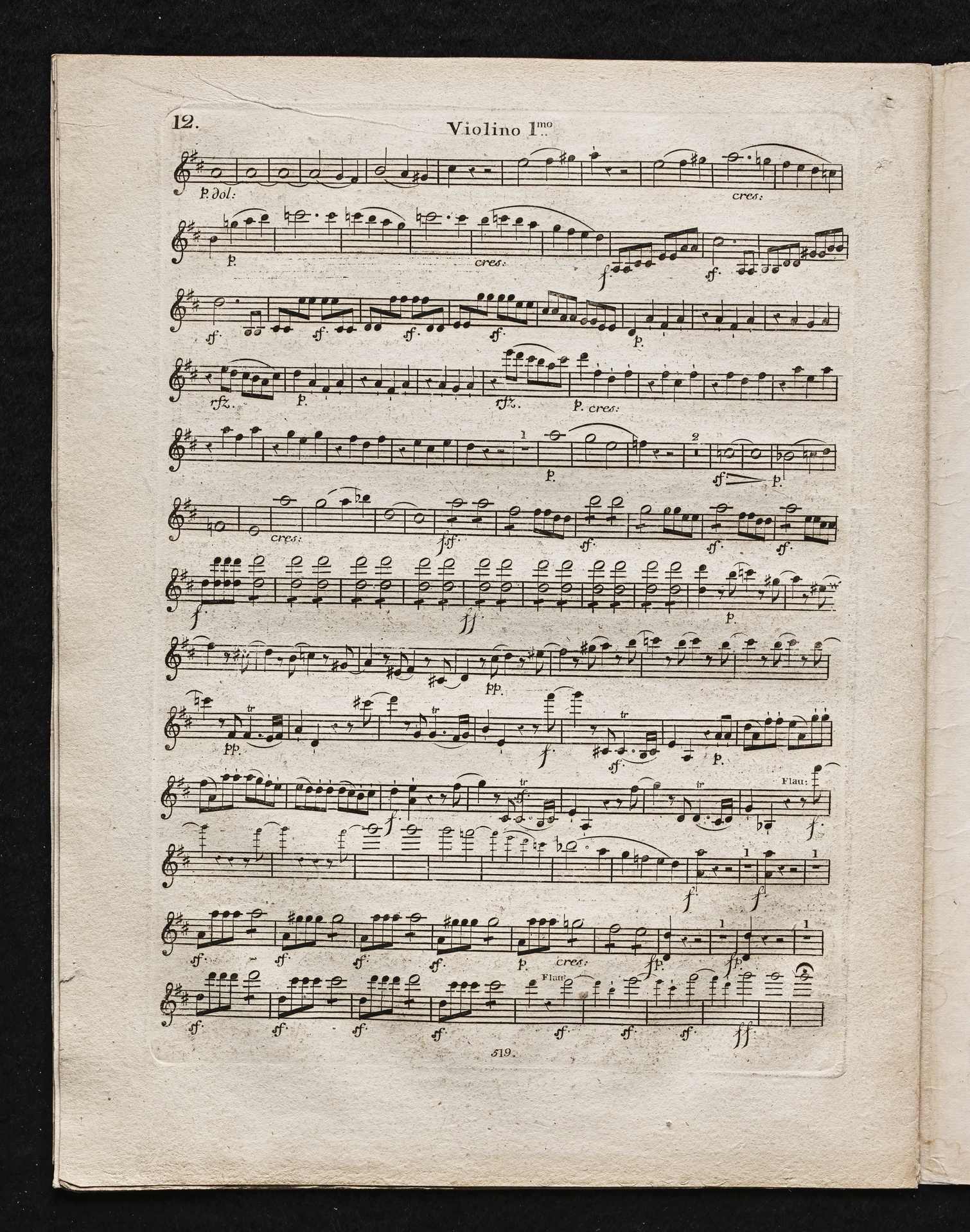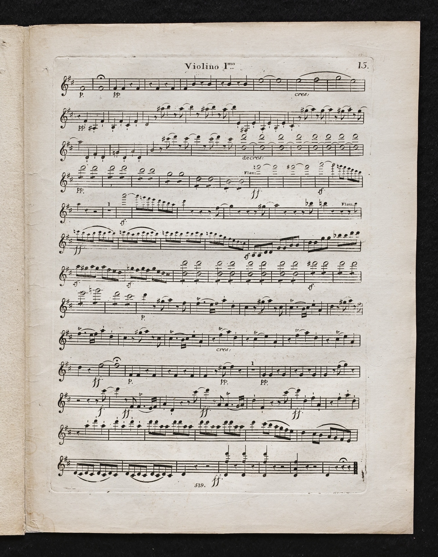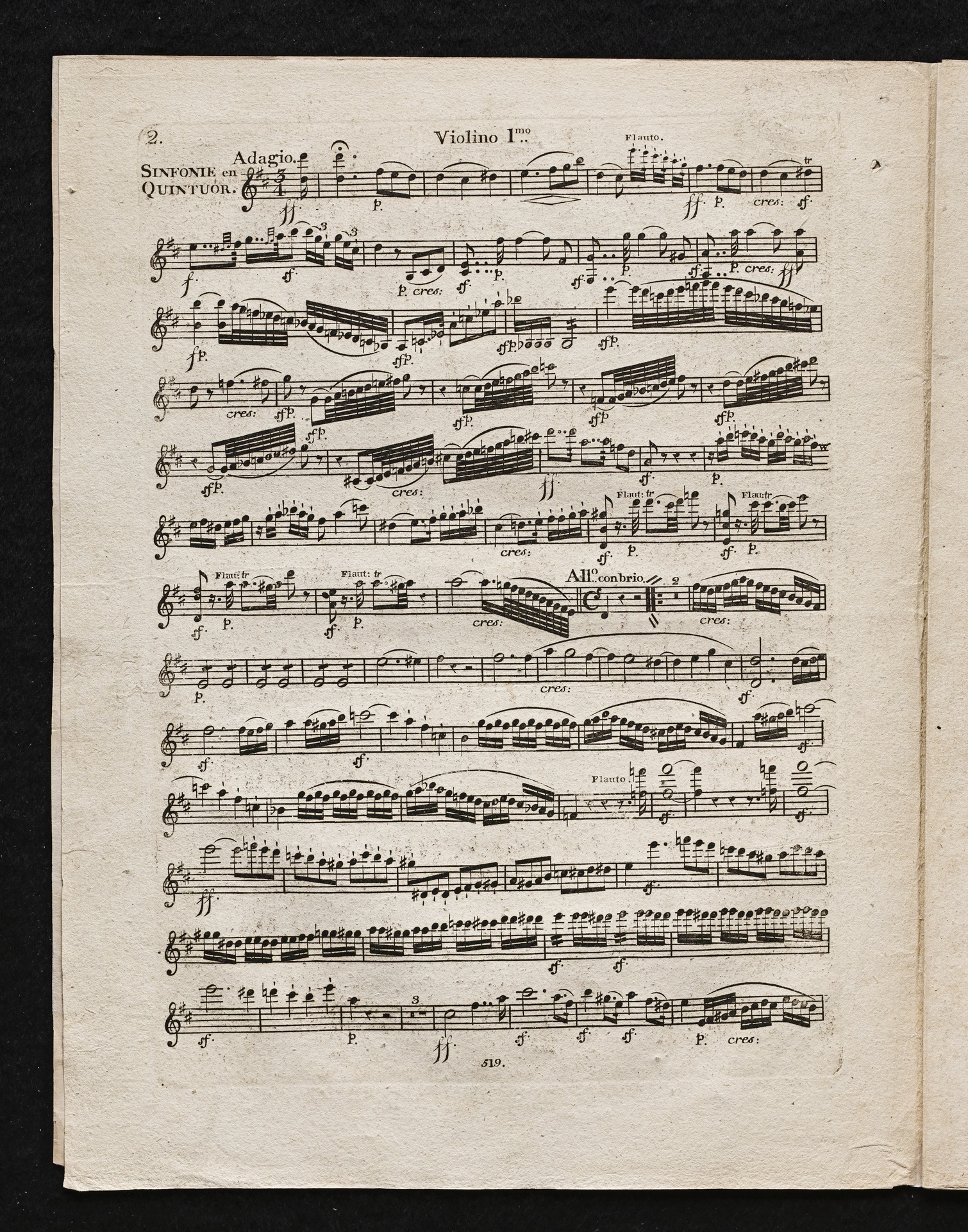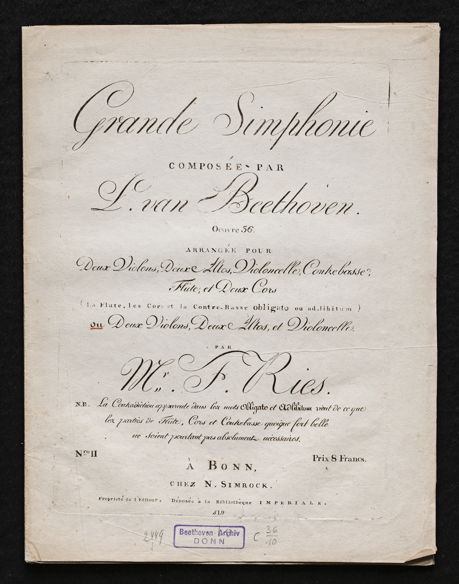 Ludwig van Beethoven, Sinfonie Nr. 2 (D-Dur) op. 36, Bearbeitung für Flöte, 2 Hörner, 2 Violinen, 2 Violen, Violoncello, Kontrabass von Ferdinand Ries, Stimmen, Simrock, 519