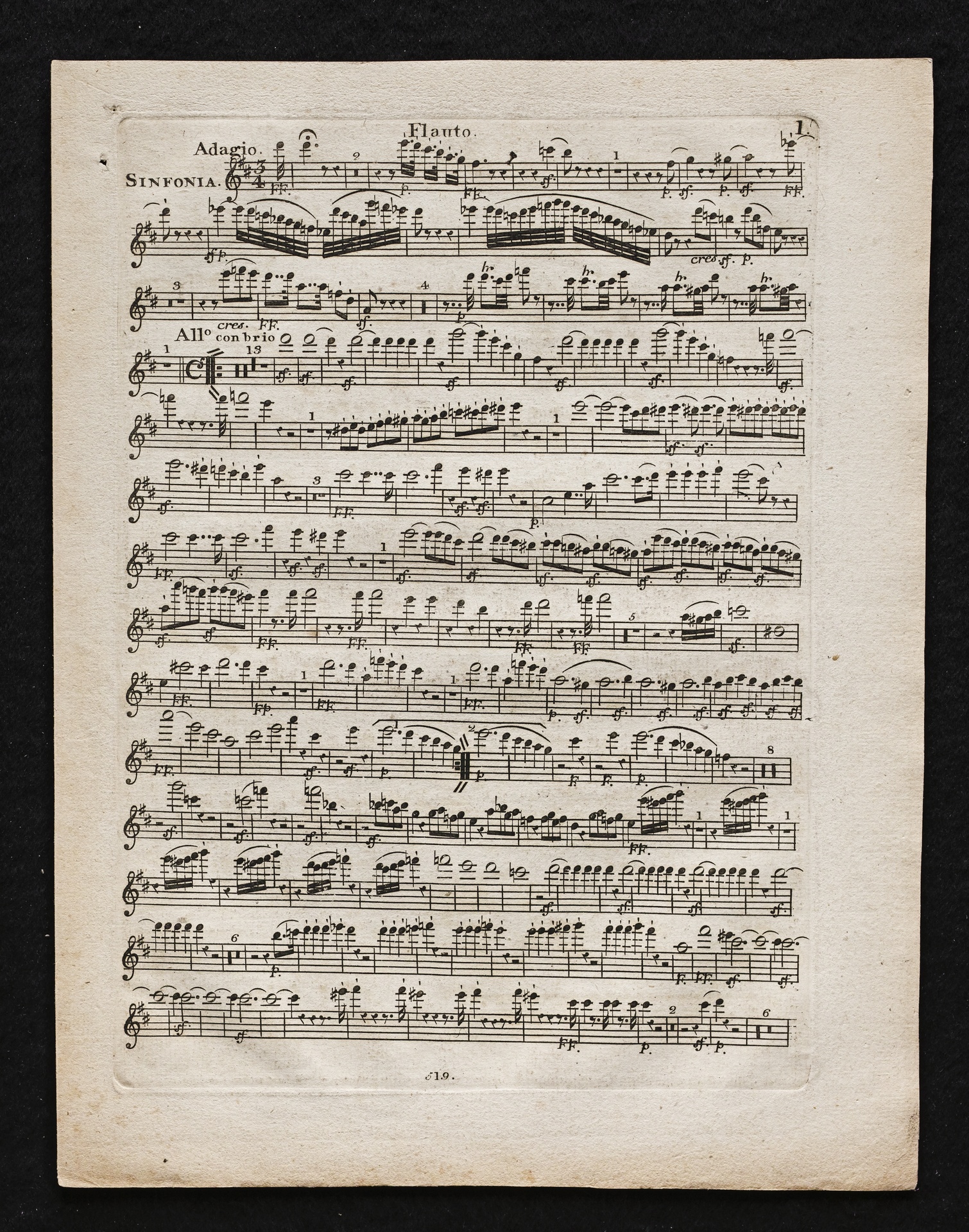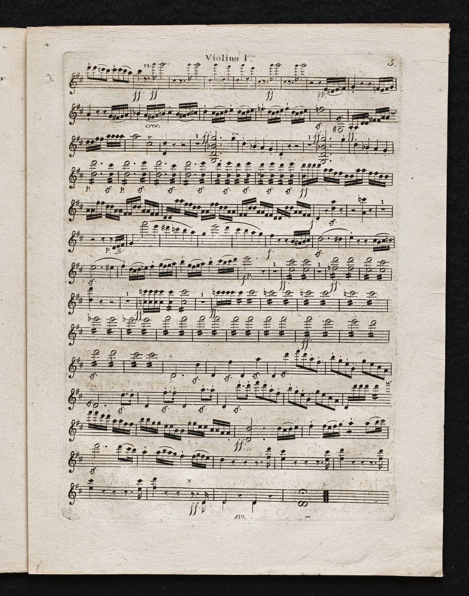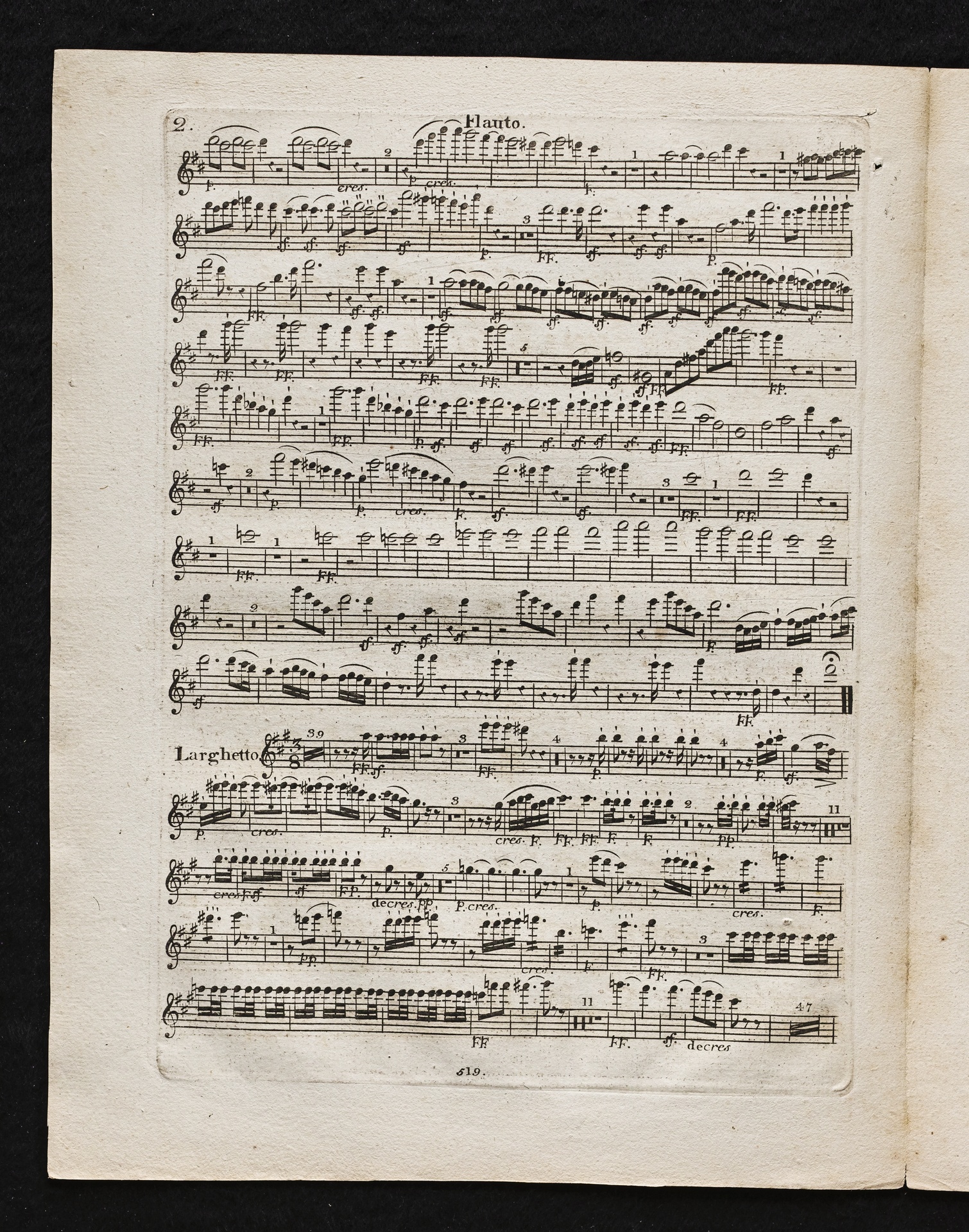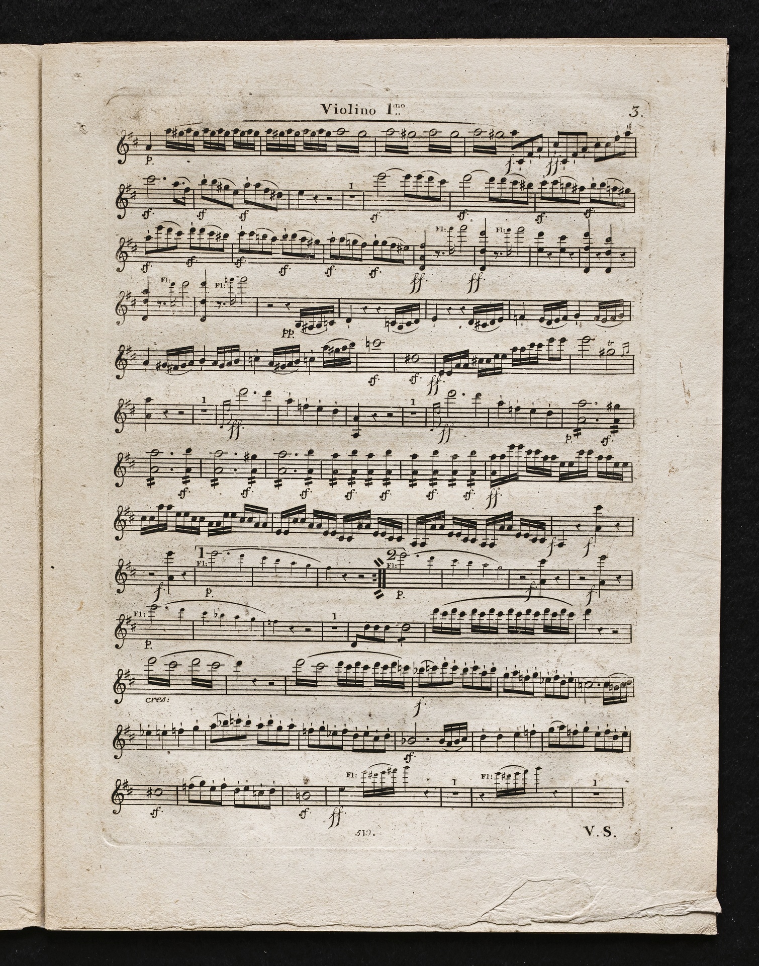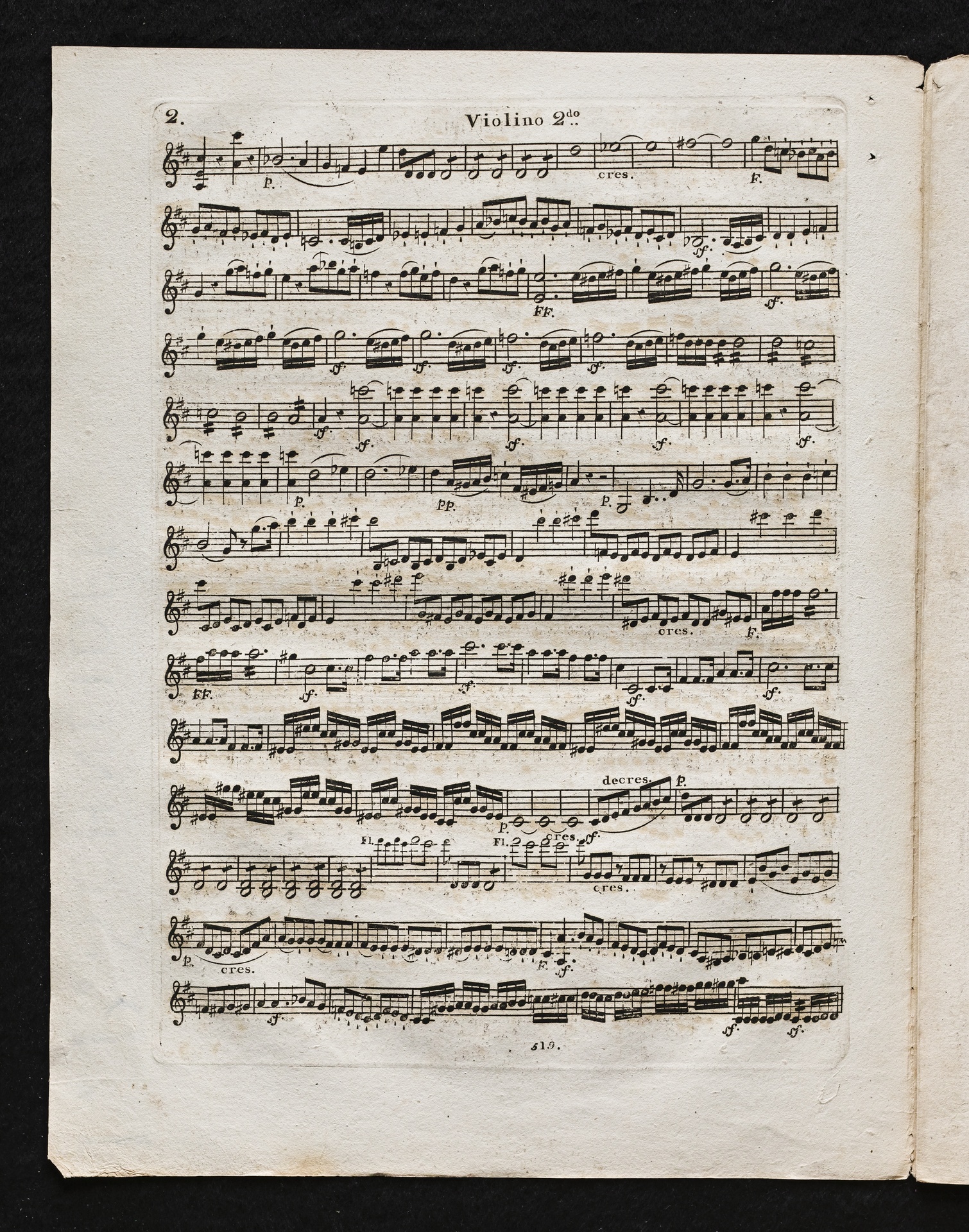 Ludwig van Beethoven, Sinfonie Nr. 2 (D-Dur) op. 36, Bearbeitung für Flöte, 2 Hörner, 2 Violinen, 2 Violen, Violoncello, Kontrabass von Ferdinand Ries, Stimmen, Simrock, 519