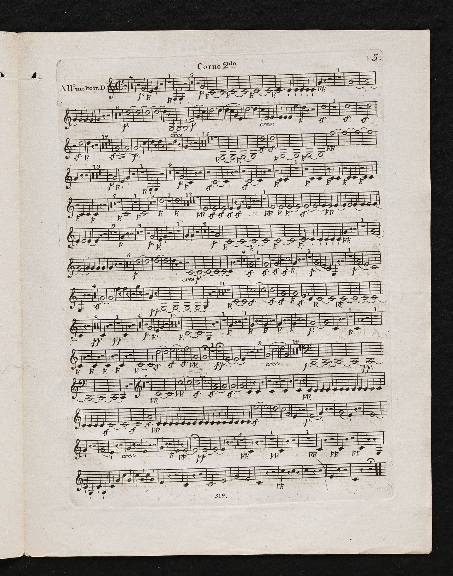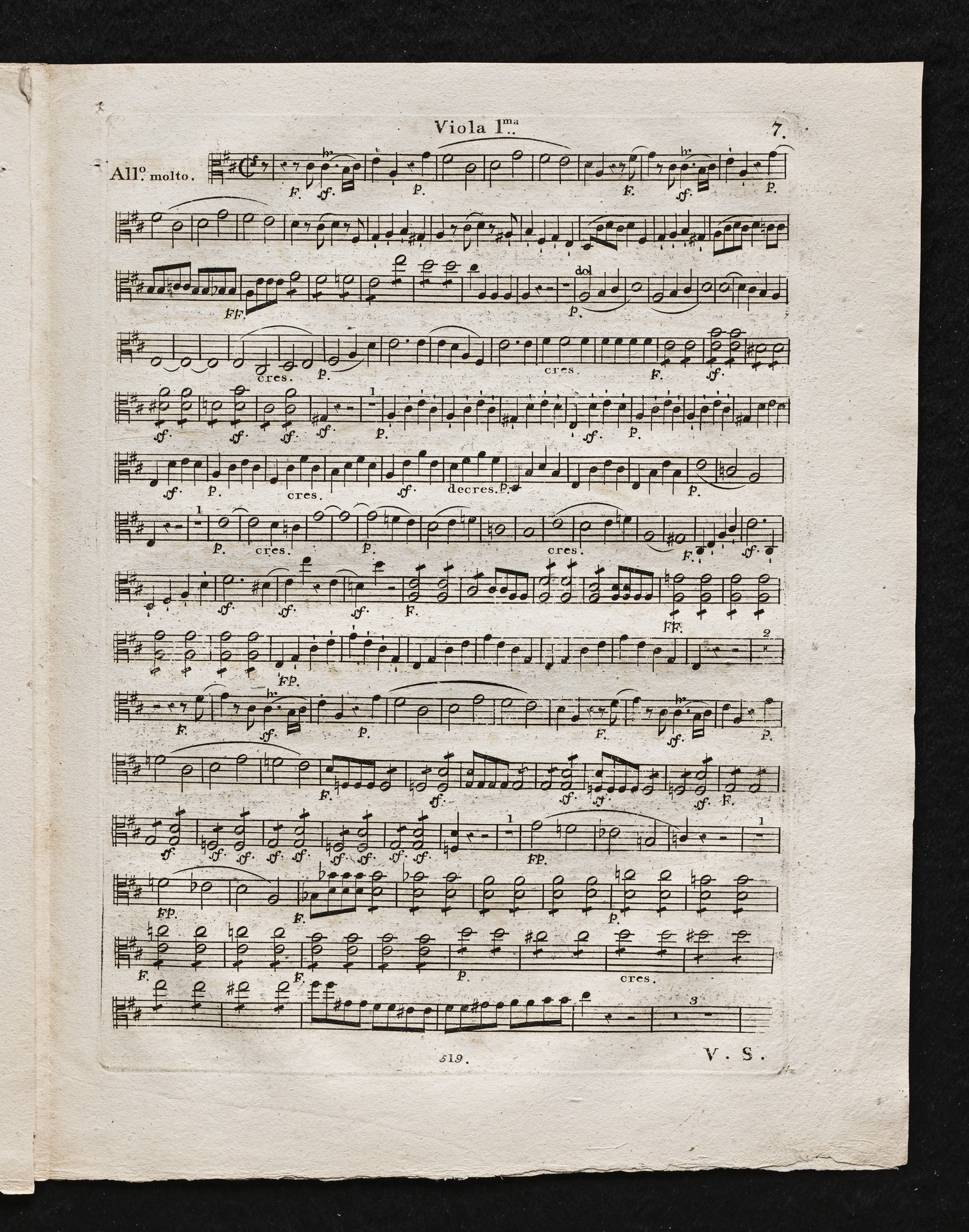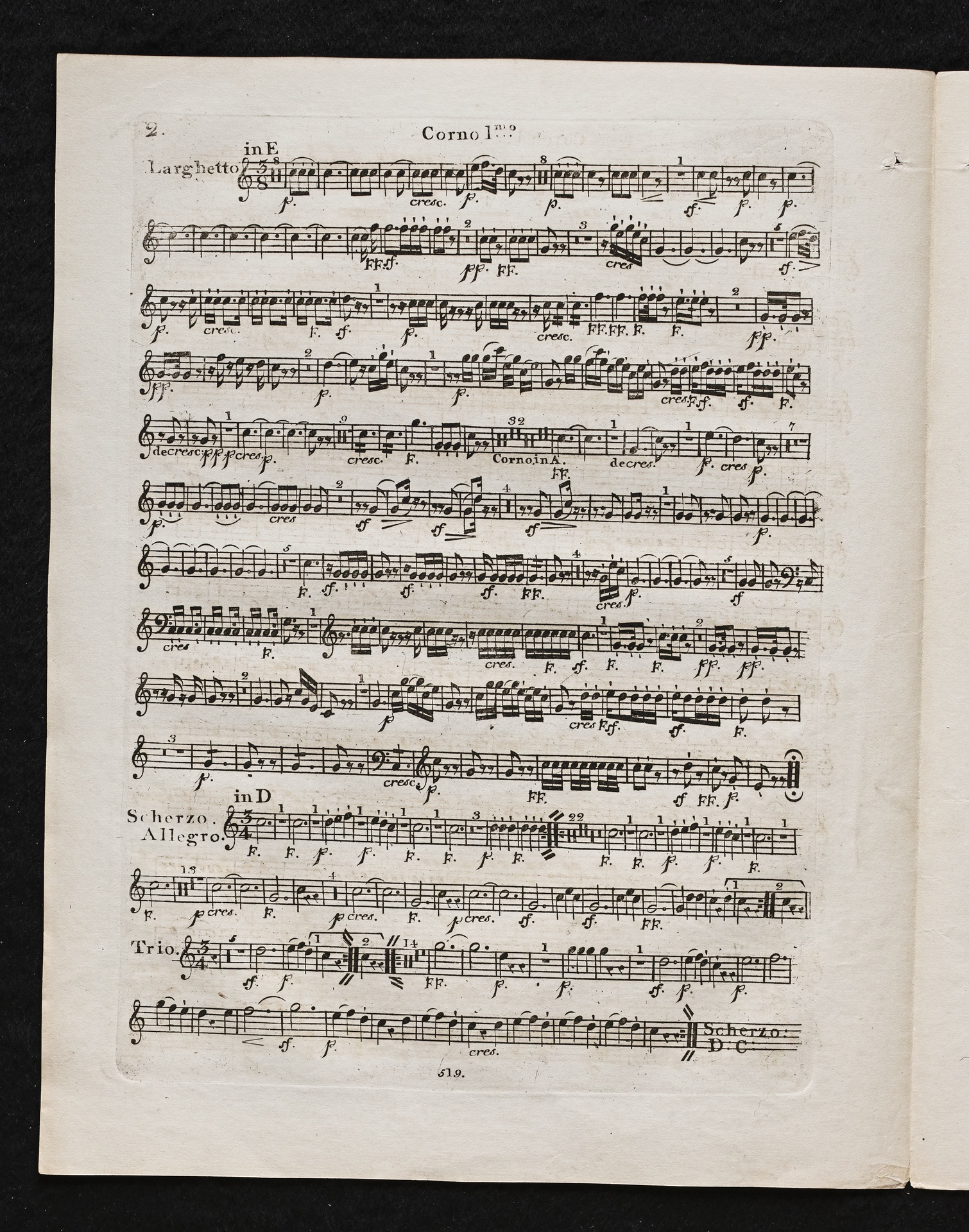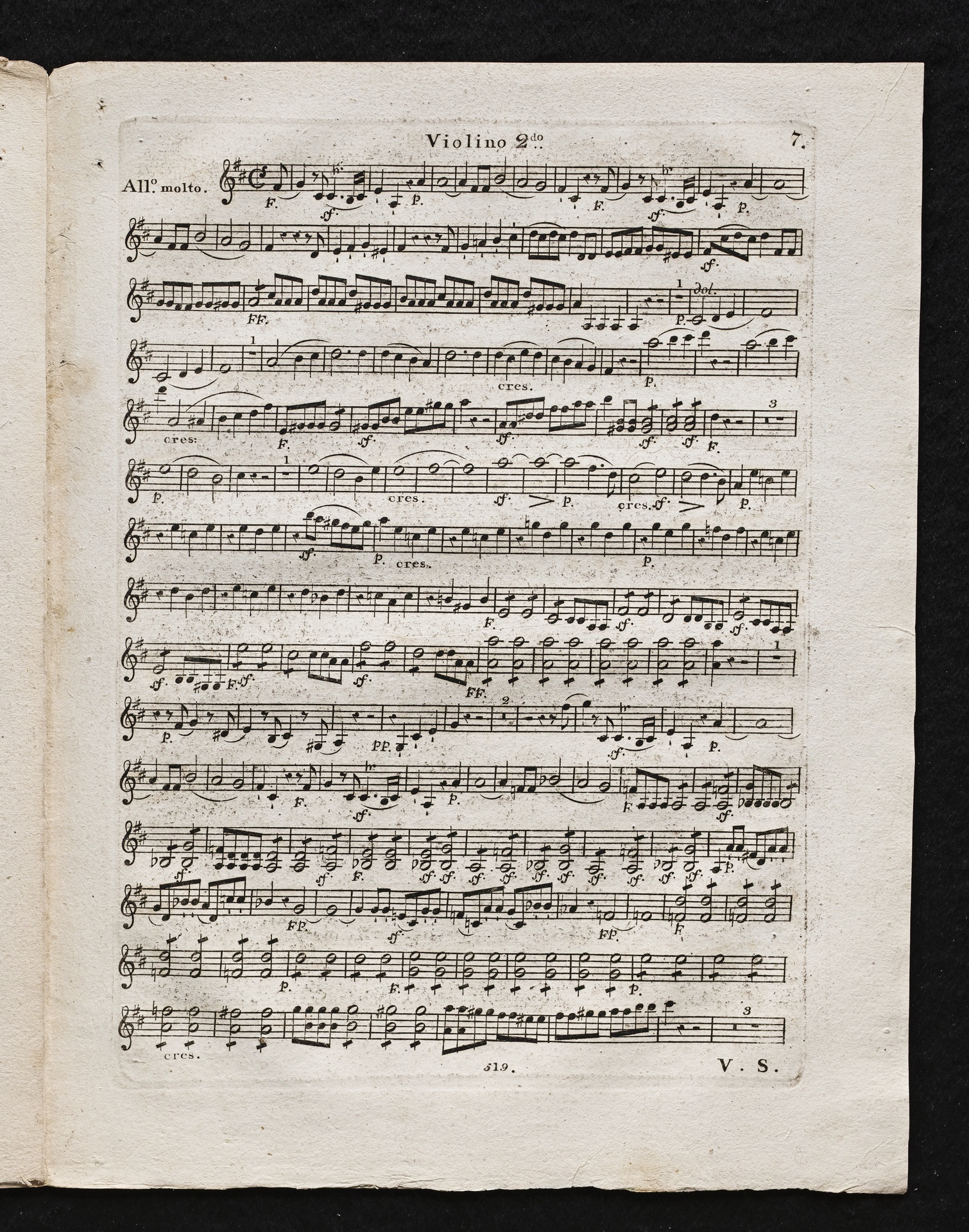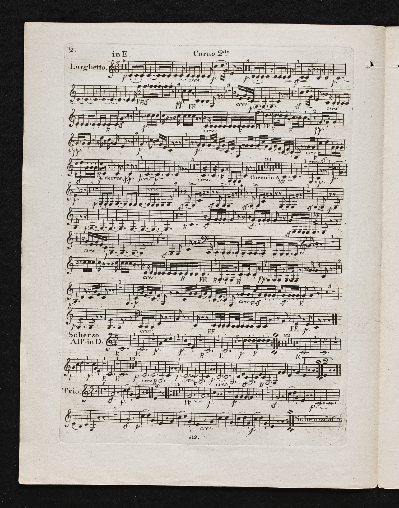 Ludwig van Beethoven, Sinfonie Nr. 2 (D-Dur) op. 36, Bearbeitung für Flöte, 2 Hörner, 2 Violinen, 2 Violen, Violoncello, Kontrabass von Ferdinand Ries, Stimmen, Simrock, 519