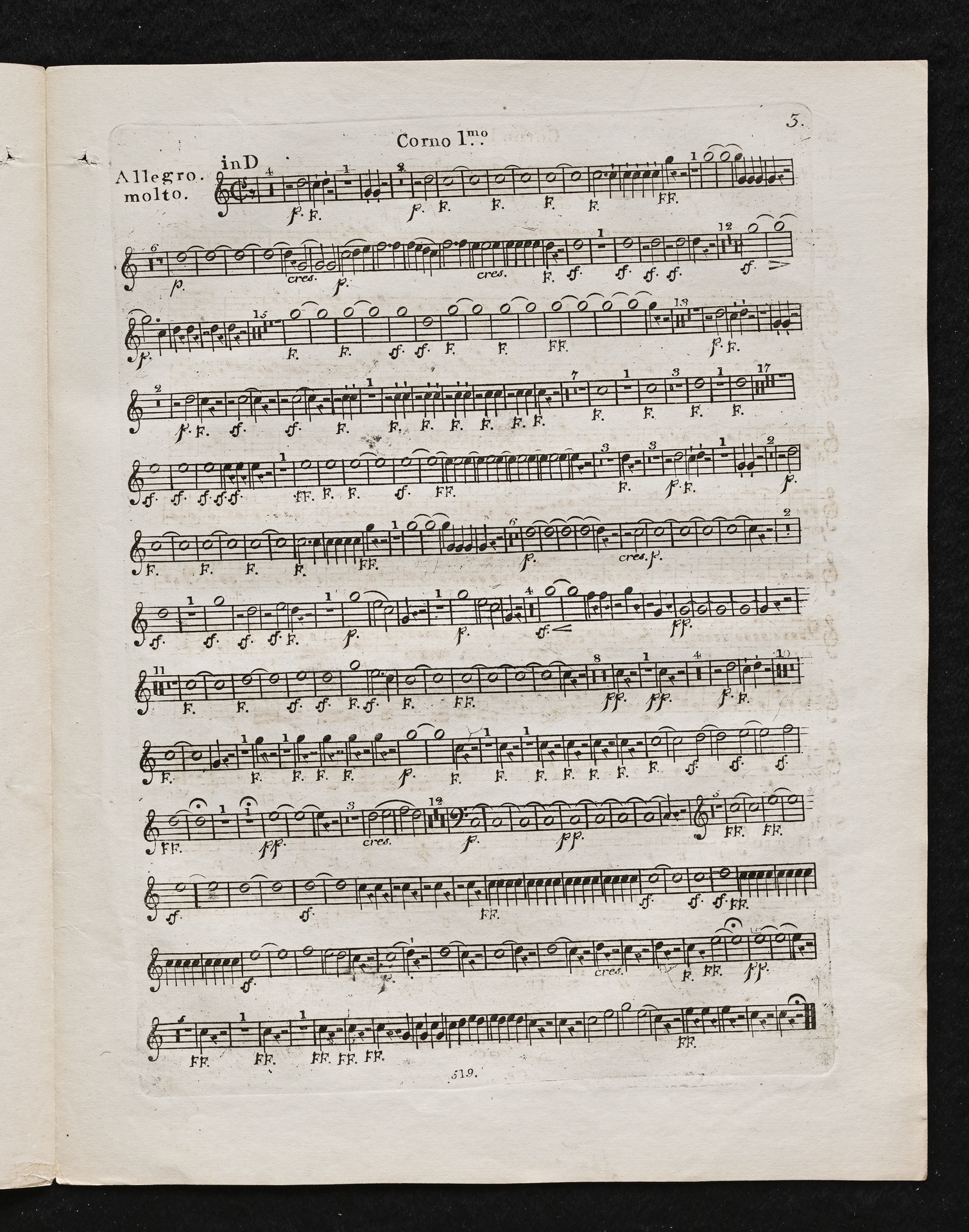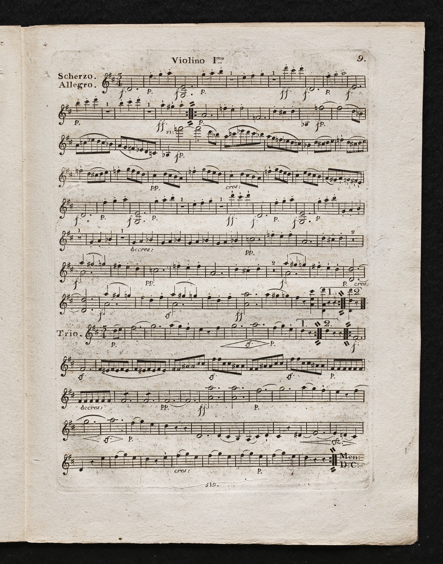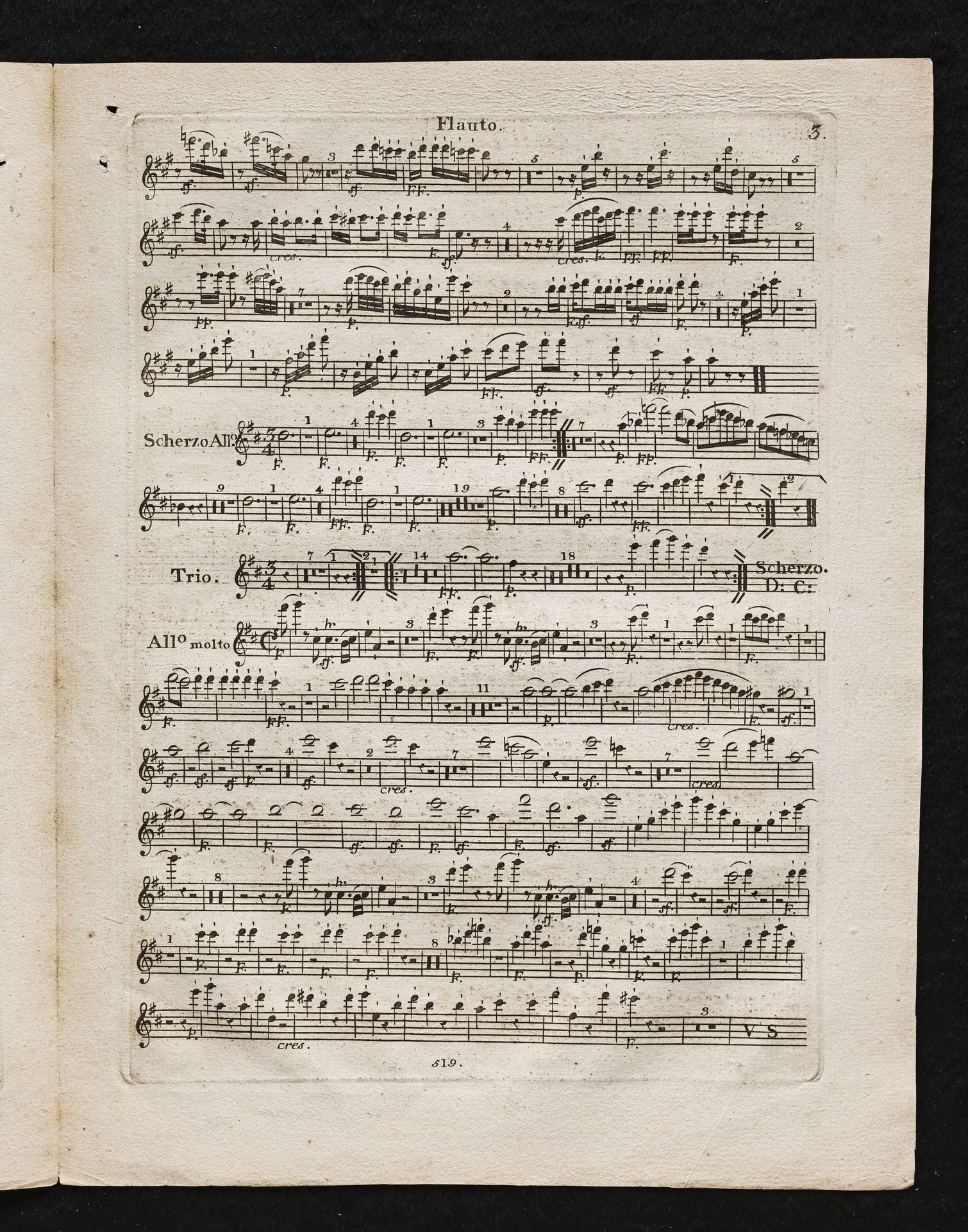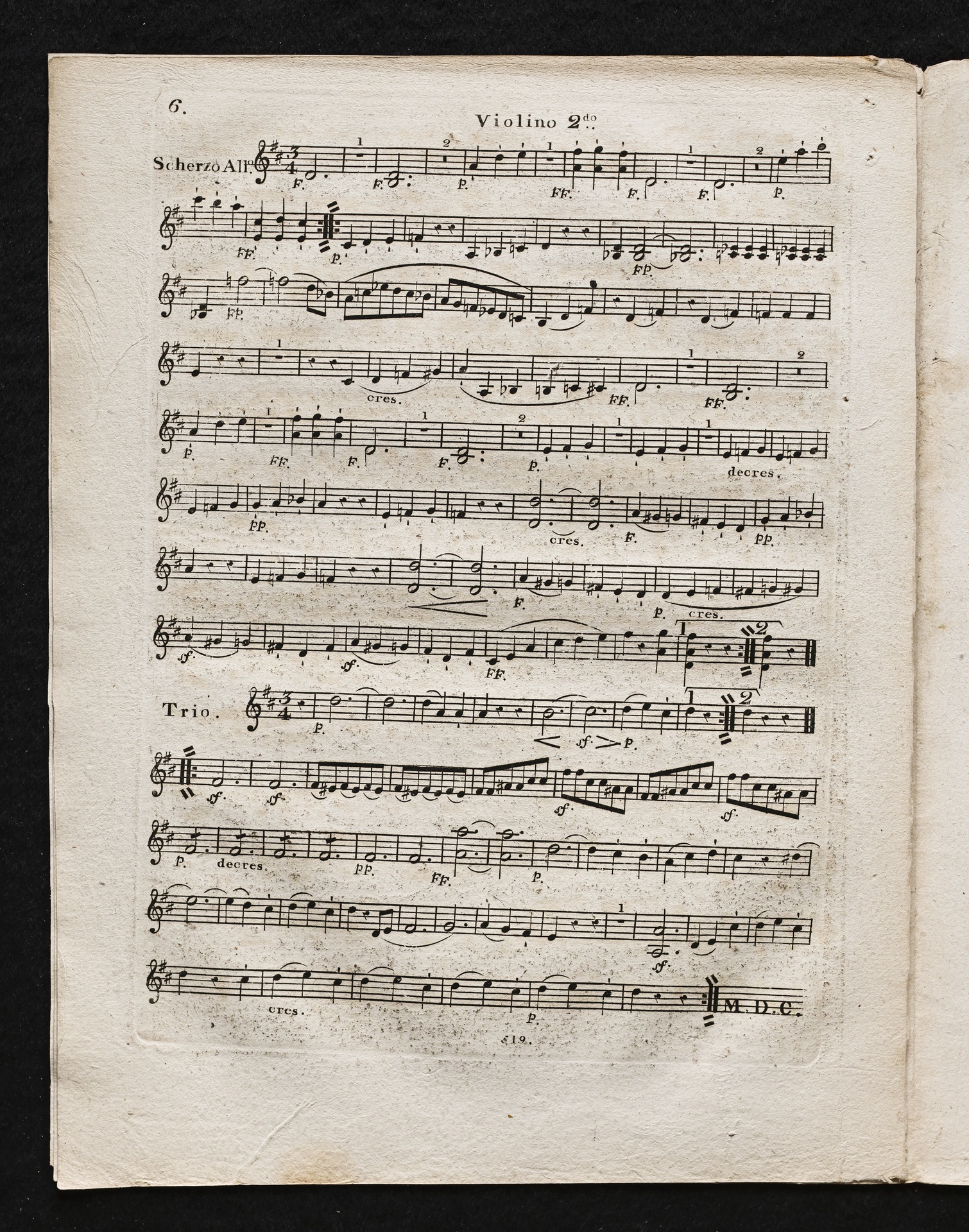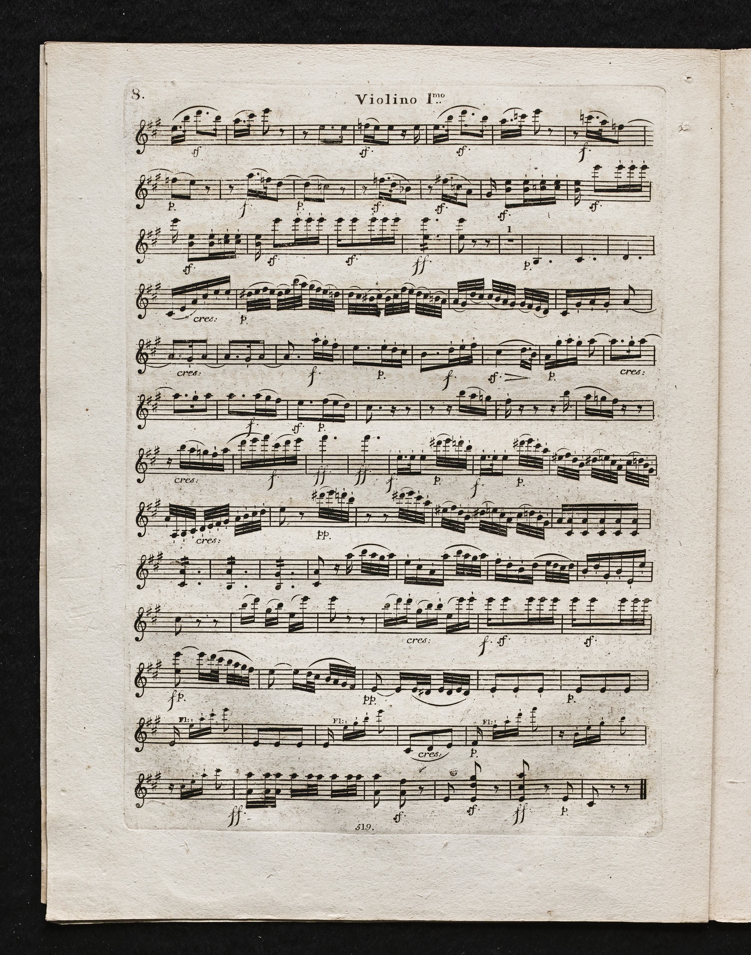 Ludwig van Beethoven, Sinfonie Nr. 2 (D-Dur) op. 36, Bearbeitung für Flöte, 2 Hörner, 2 Violinen, 2 Violen, Violoncello, Kontrabass von Ferdinand Ries, Stimmen, Simrock, 519