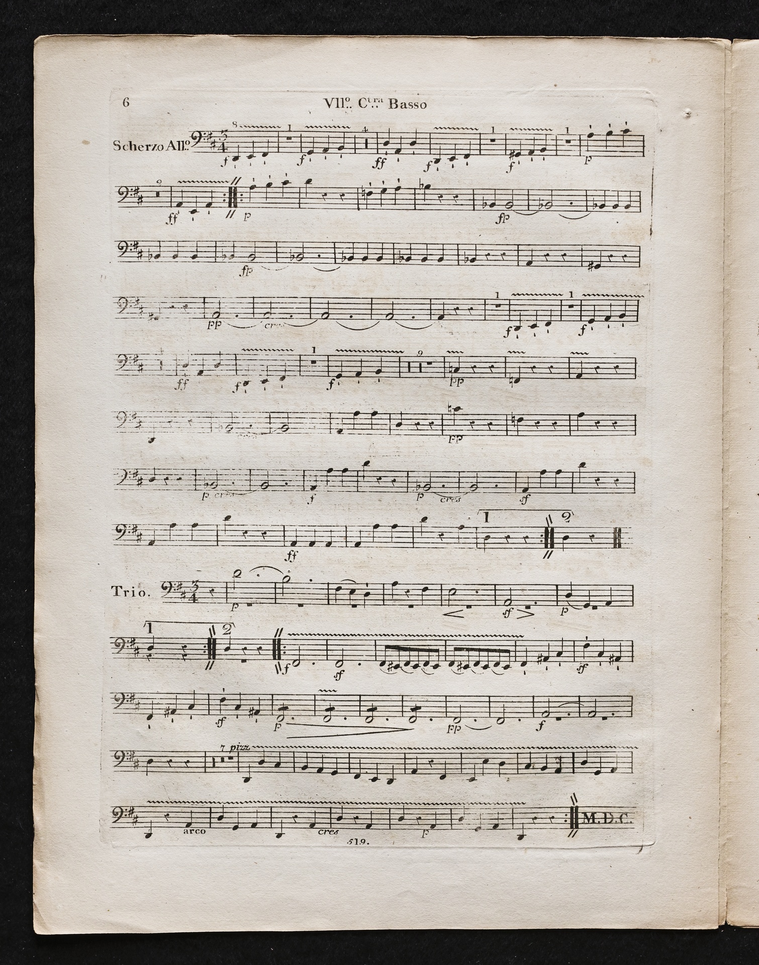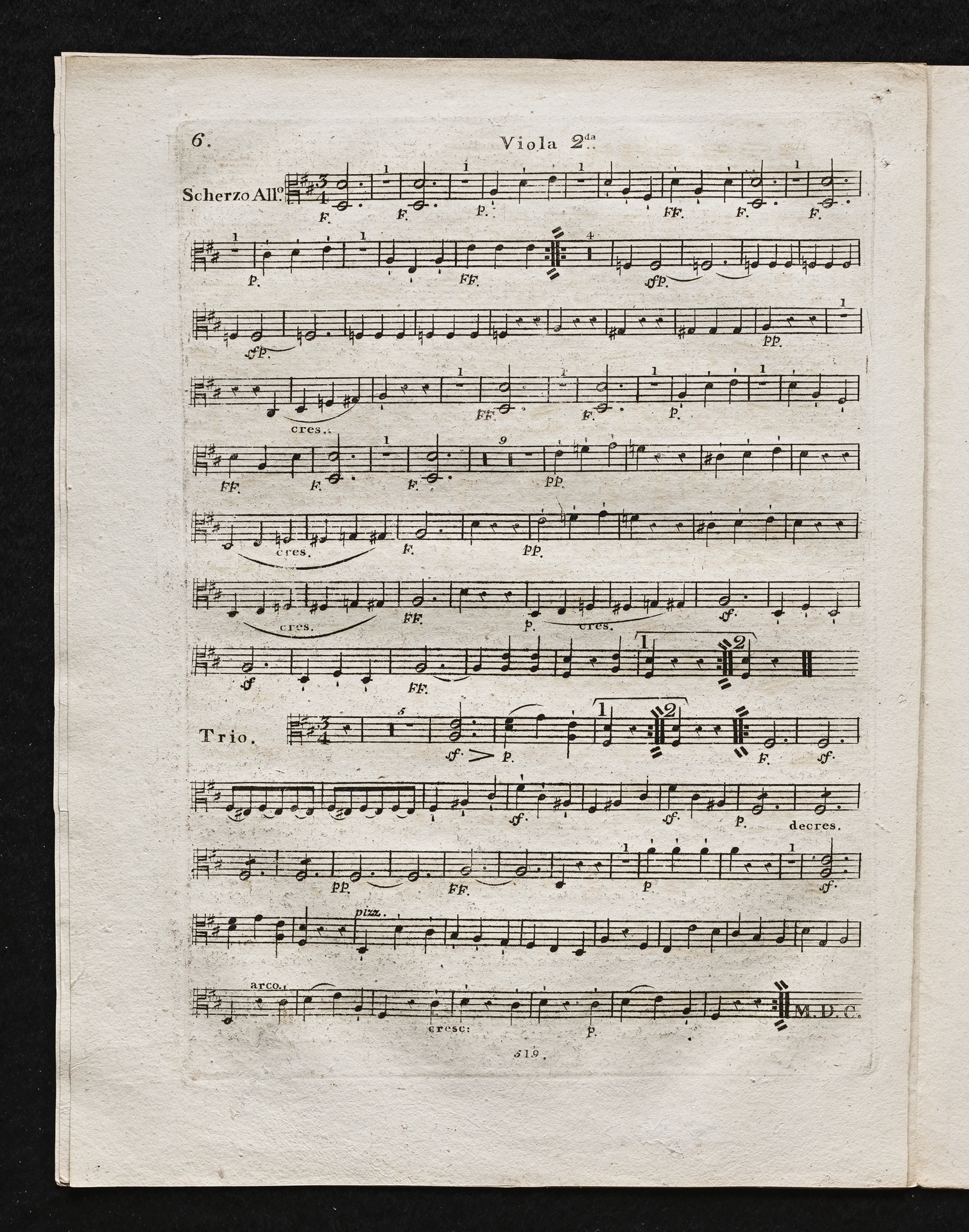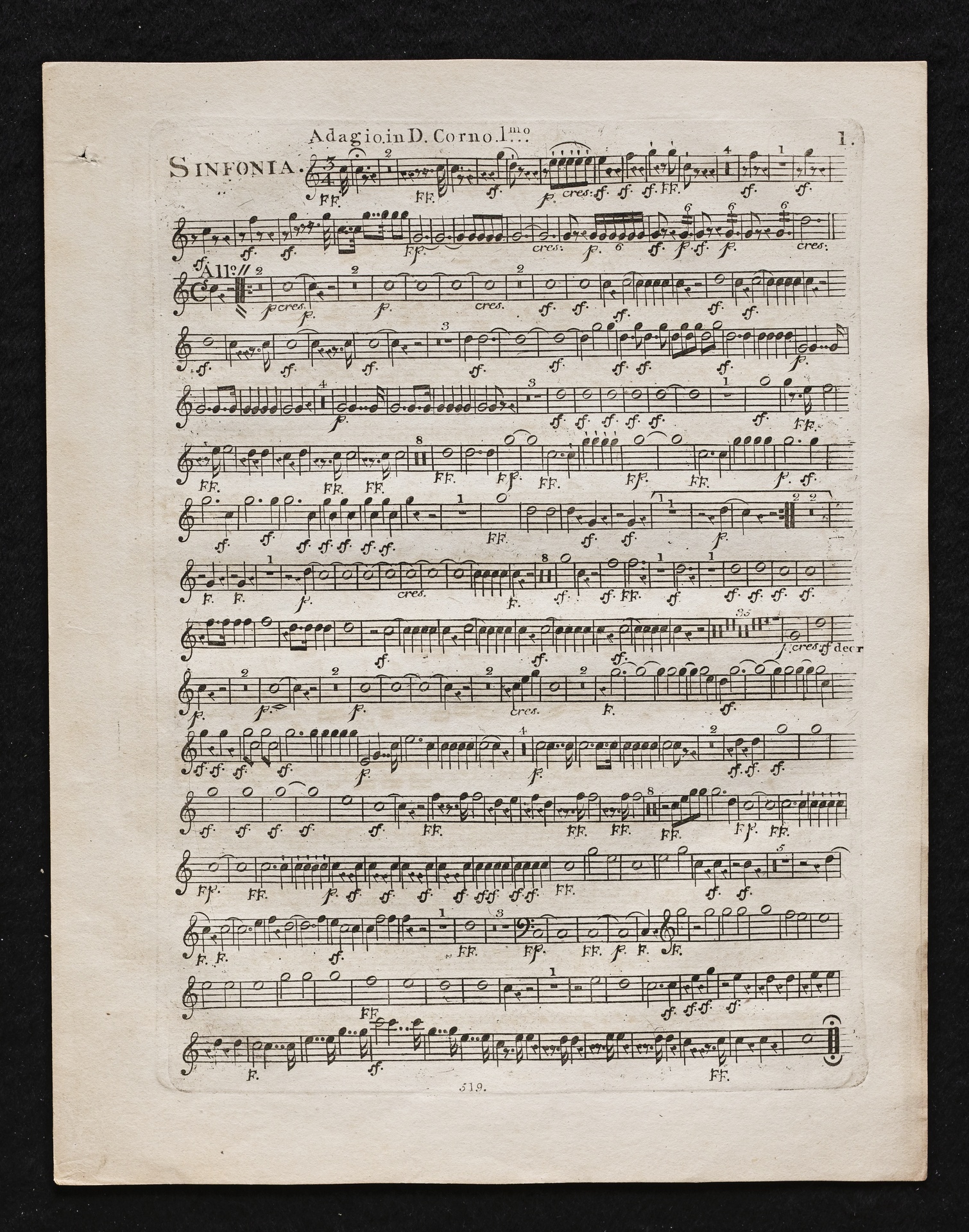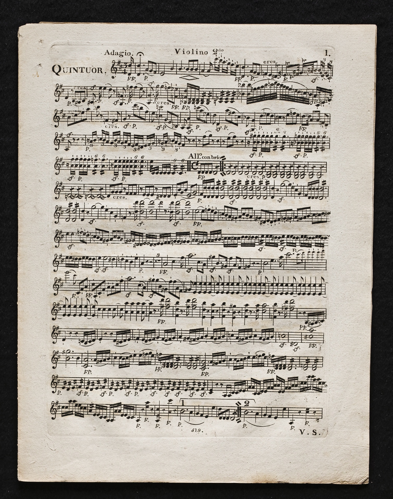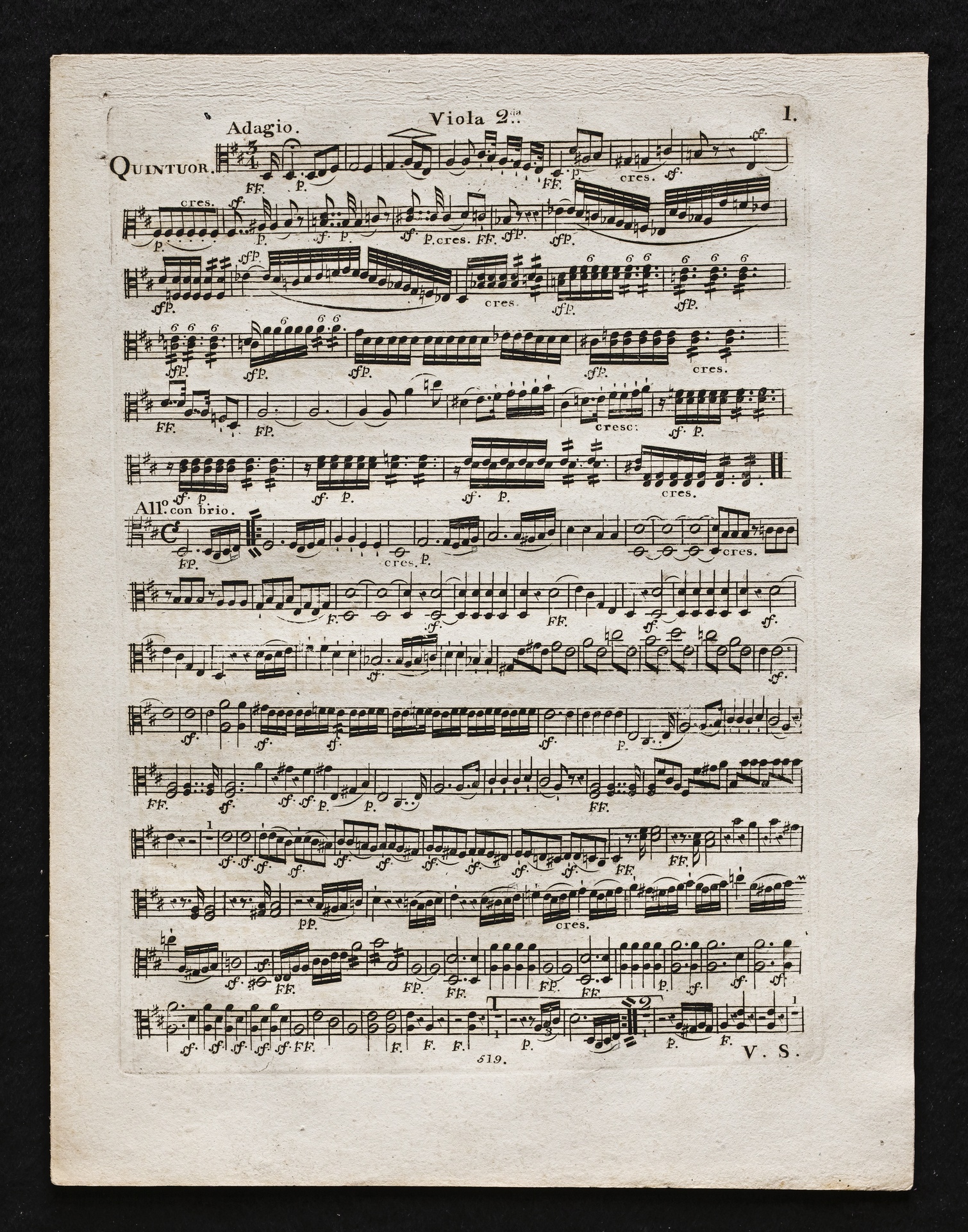 Ludwig van Beethoven, Sinfonie Nr. 2 (D-Dur) op. 36, Bearbeitung für Flöte, 2 Hörner, 2 Violinen, 2 Violen, Violoncello, Kontrabass von Ferdinand Ries, Stimmen, Simrock, 519