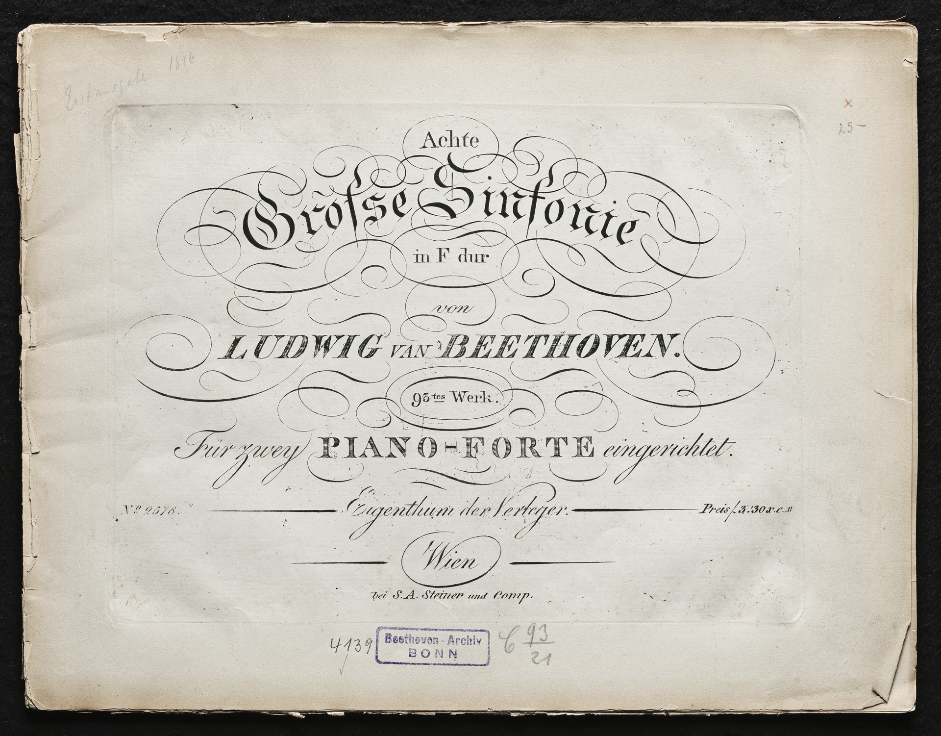 Ludwig van Beethoven, Sinfonie Nr. 8 (F-Dur) op. 93, Bearbeitung für 2 Klaviere von Carl Czerny, Steiner, 2578