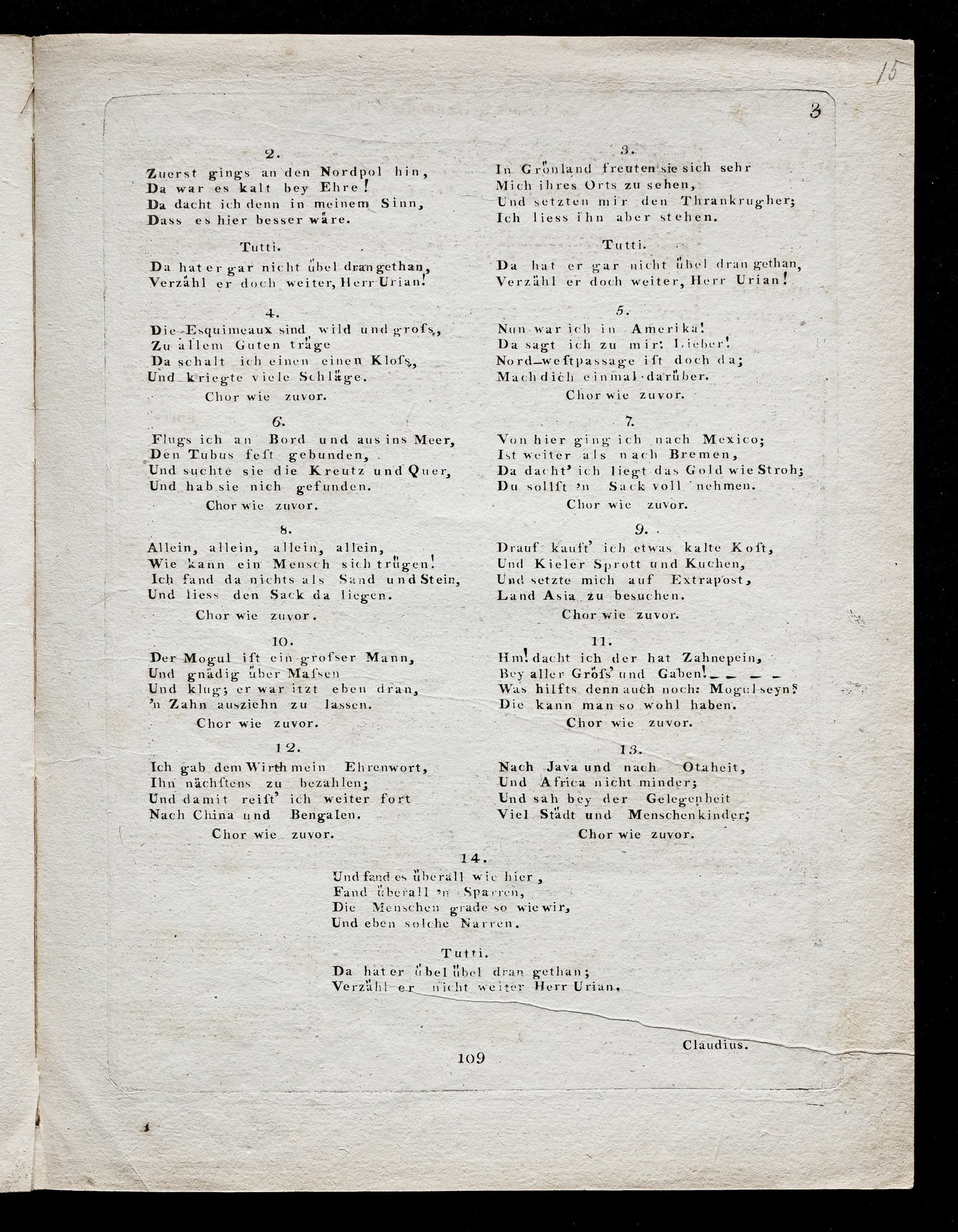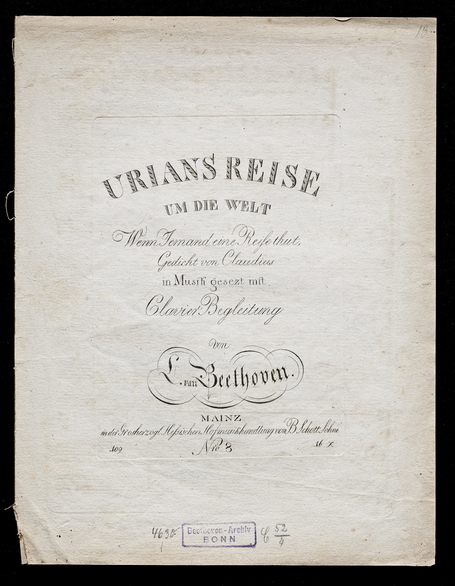 Ludwig van BeethovenMatthias Claudius, "Urians Reise um die Welt", Lied für Singstimme und Klavier op. 52, 1, Schott, 109