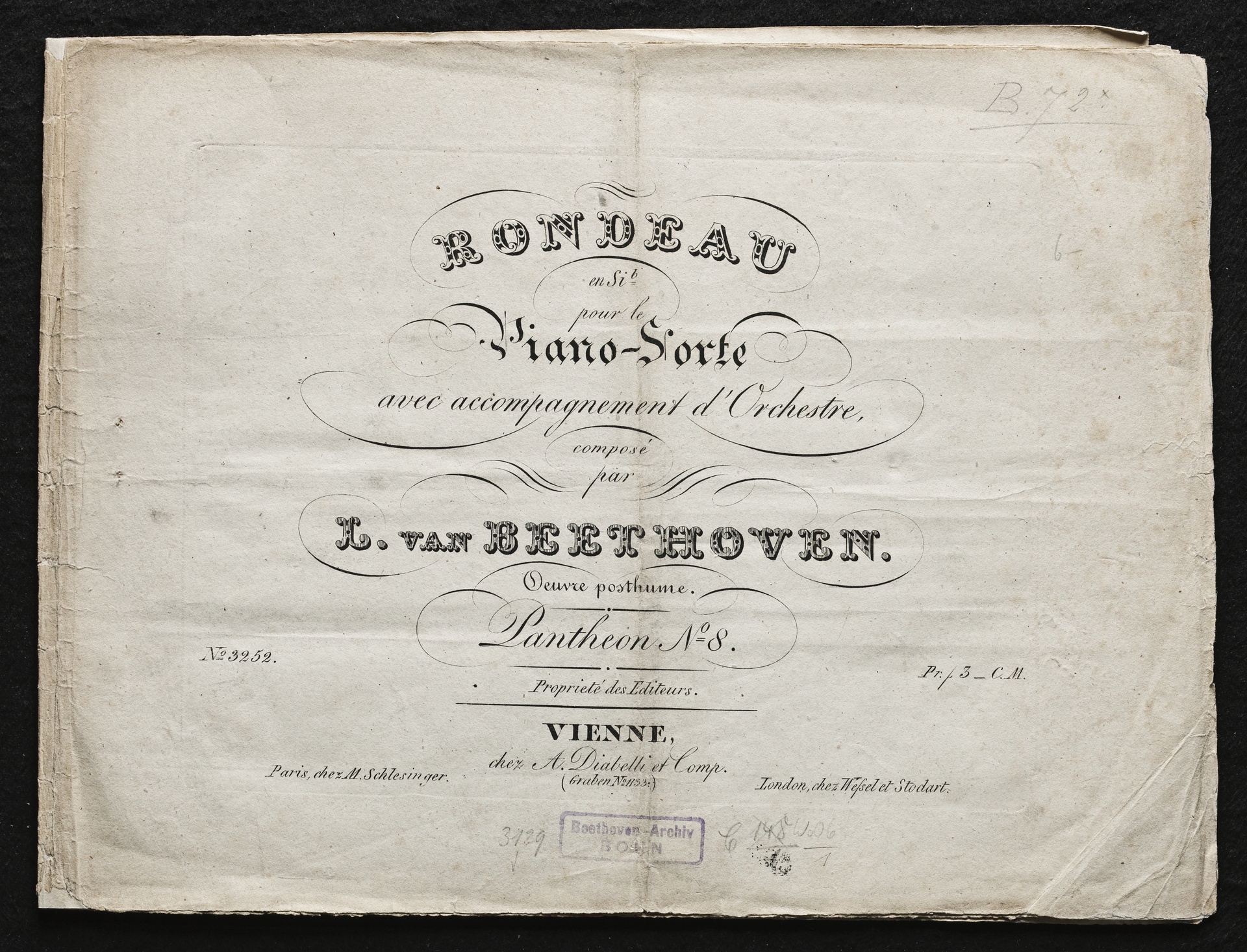 Ludwig van Beethoven, Rondo für Klavier und Orchester (B-Dur) WoO 6, Stimme, Diabelli, 3252