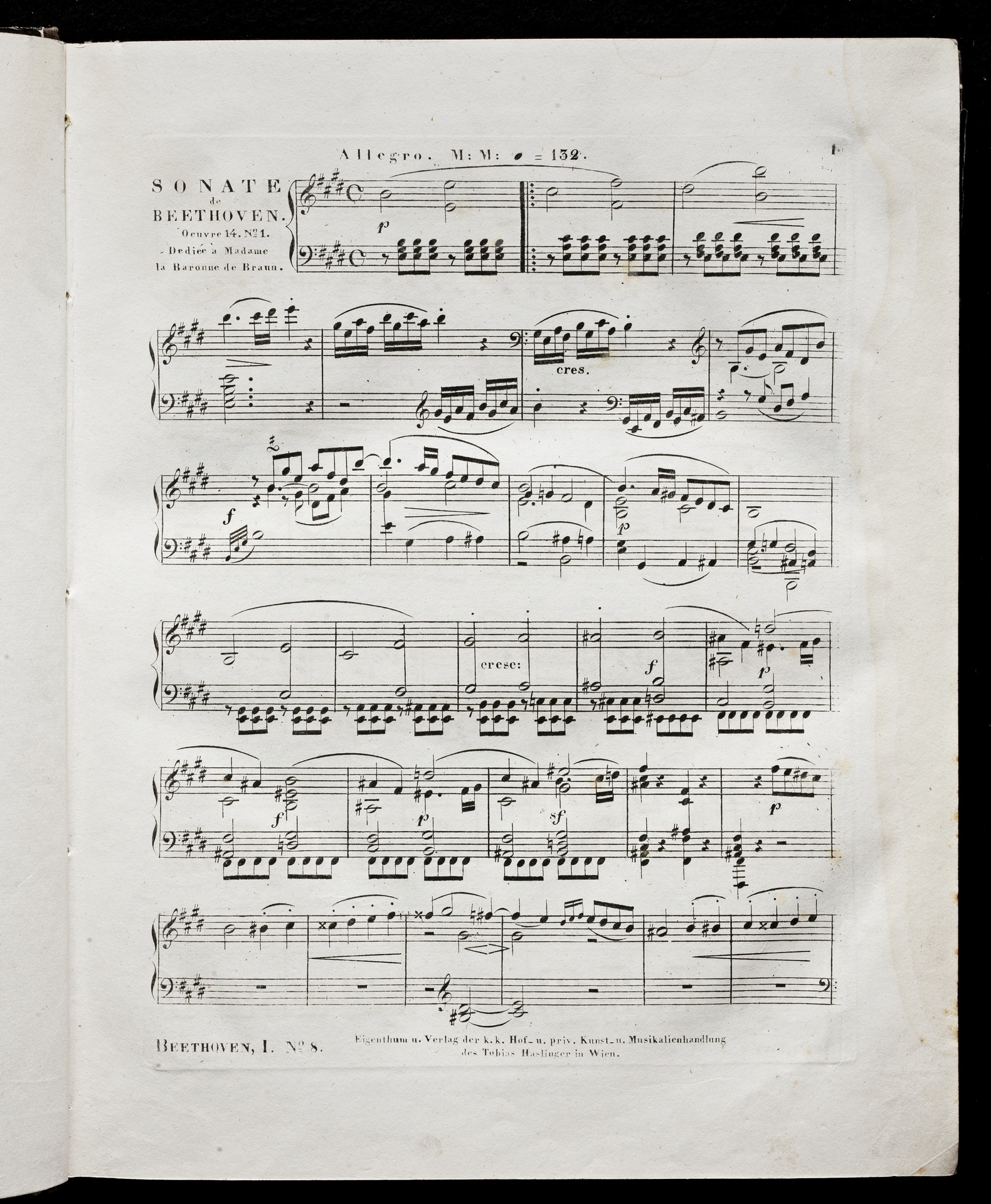 Ludwig van Beethoven, Sonate für Klavier (E-Dur) op. 14, 1, Haslinger, 1,8