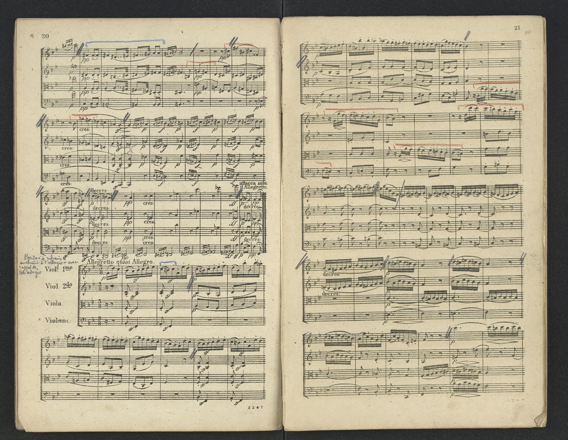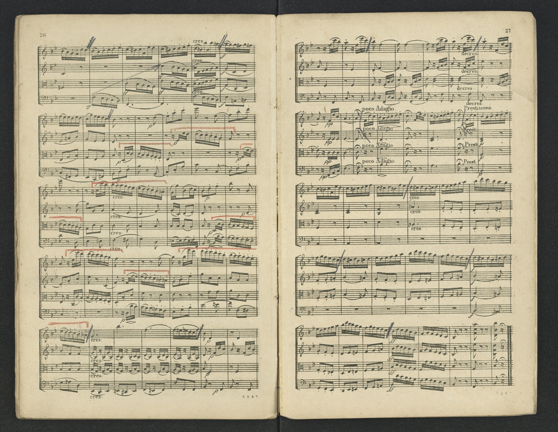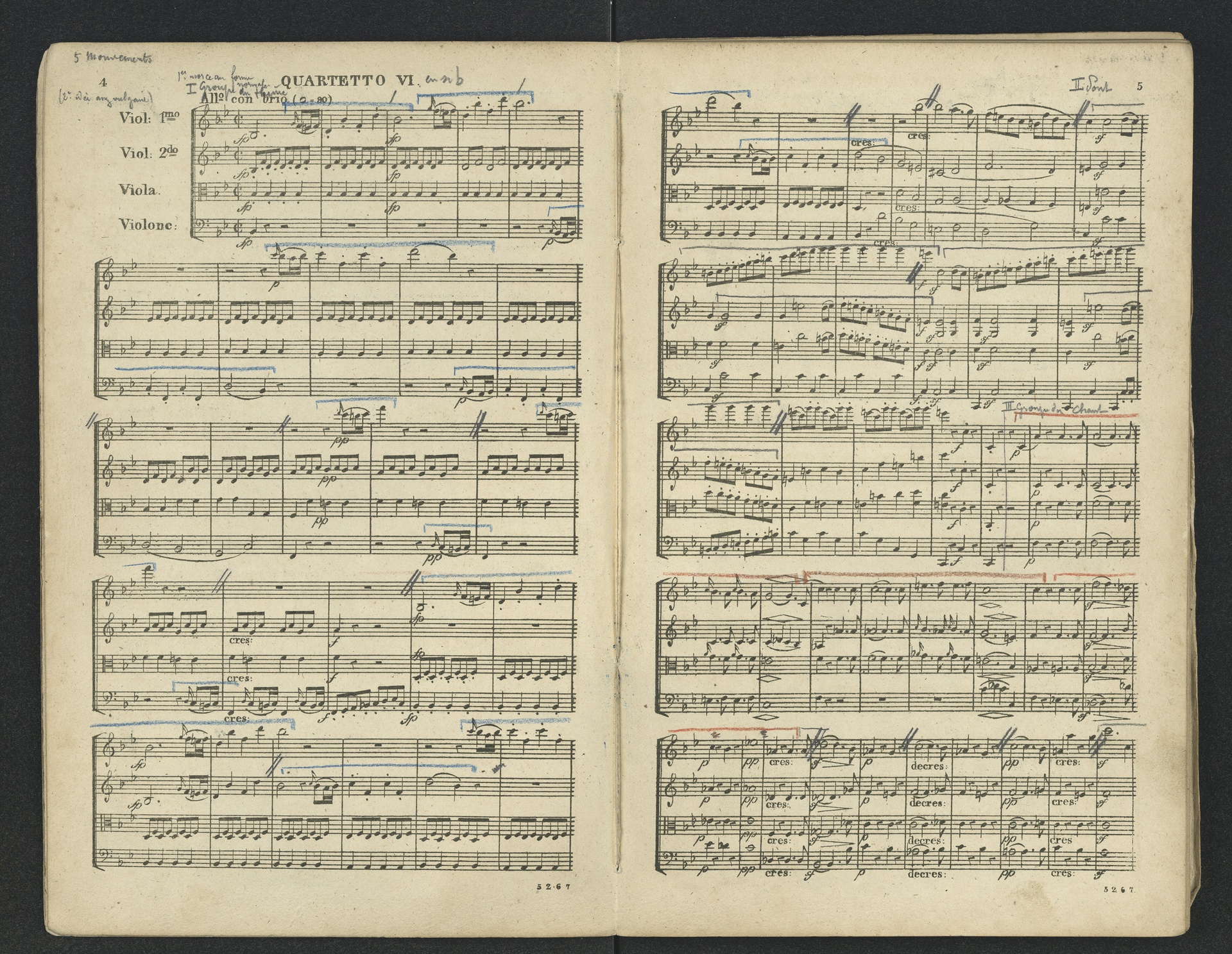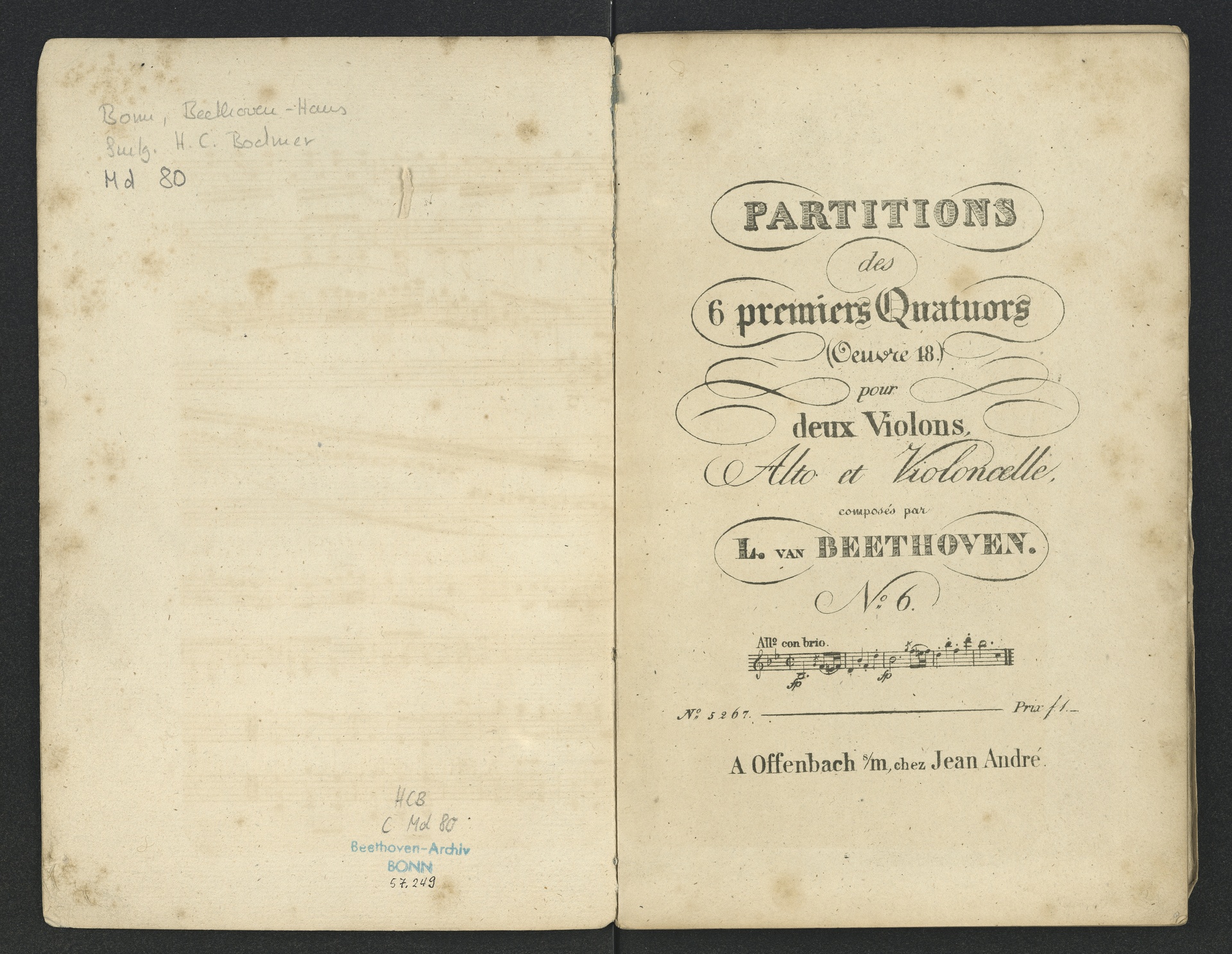 Ludwig van Beethoven, Quartett für 2 Violinen, Viola, Violoncello (B-Dur) op. 18, 6, Partitur, André, 5267