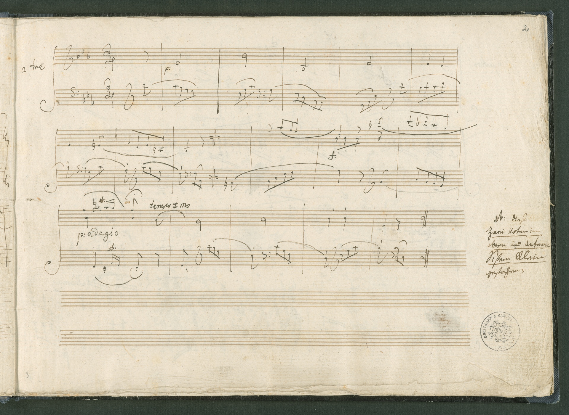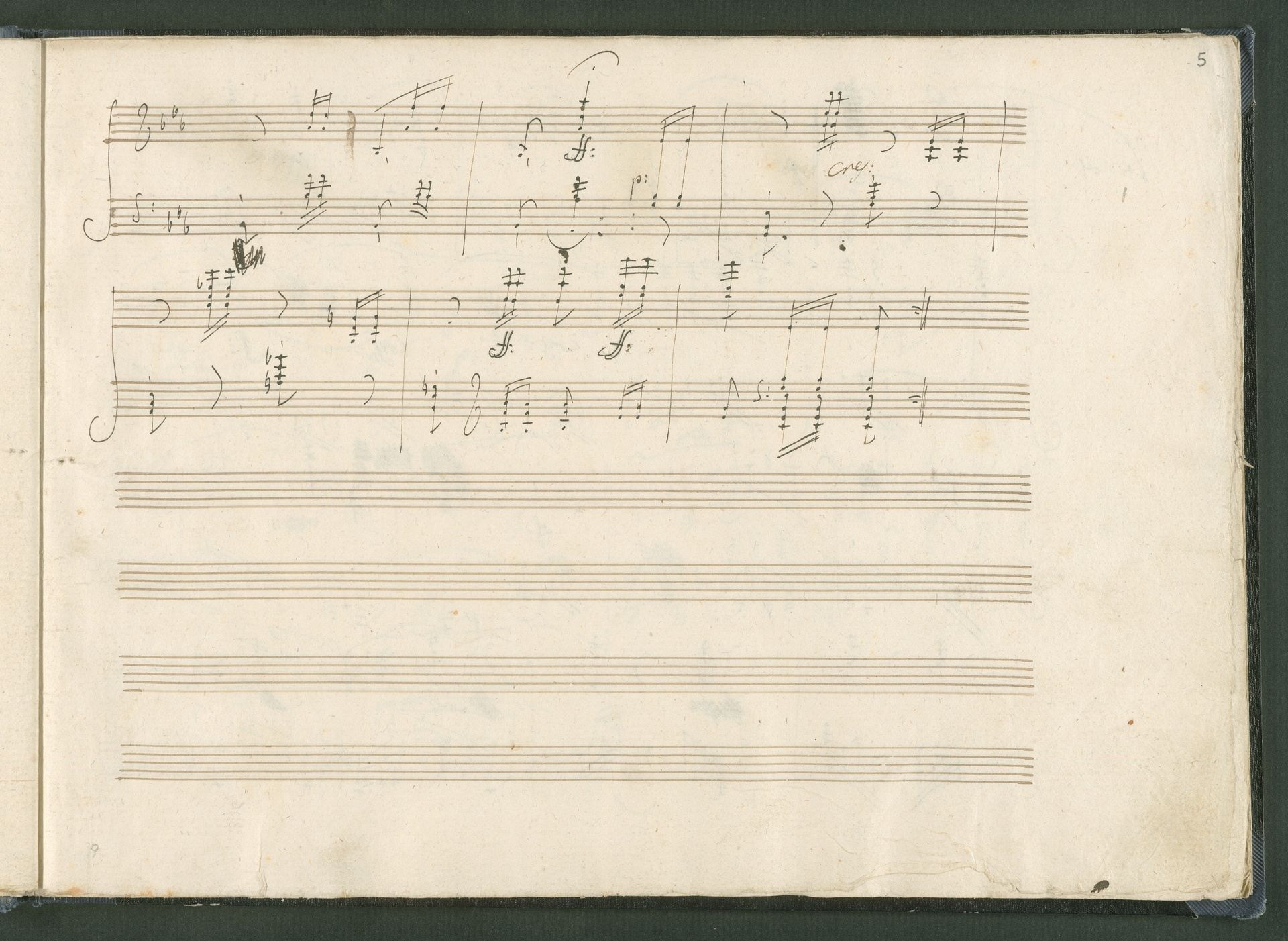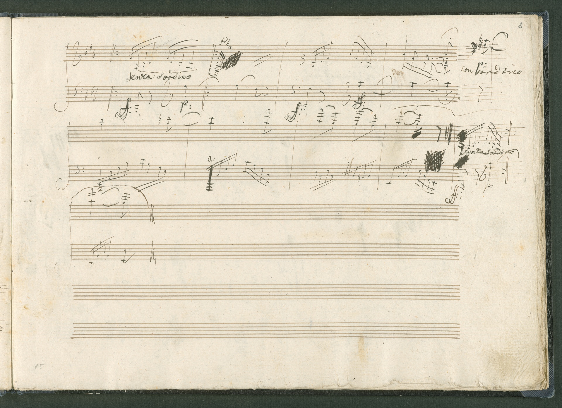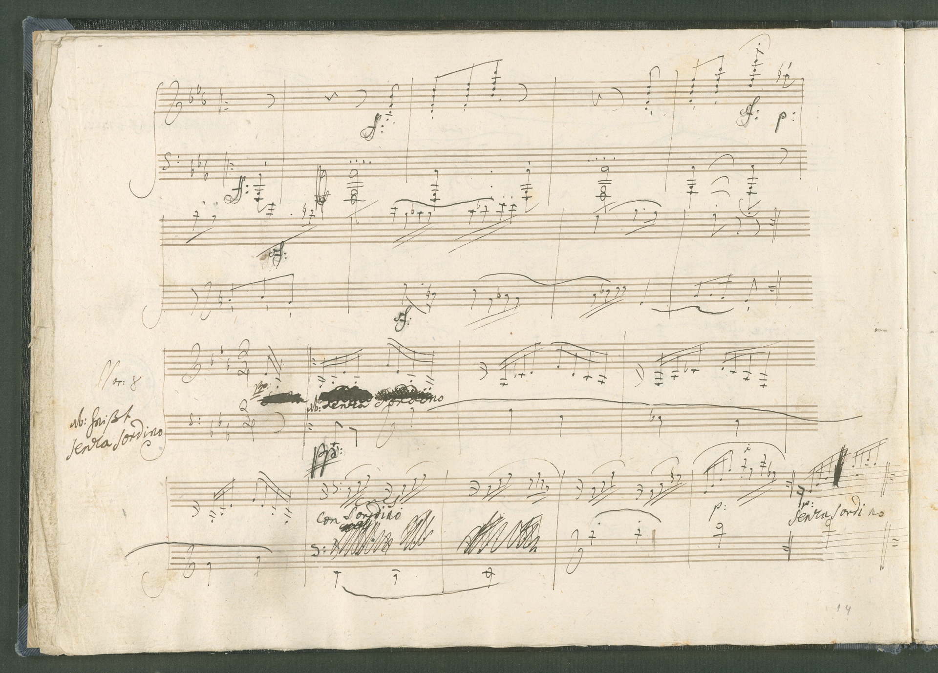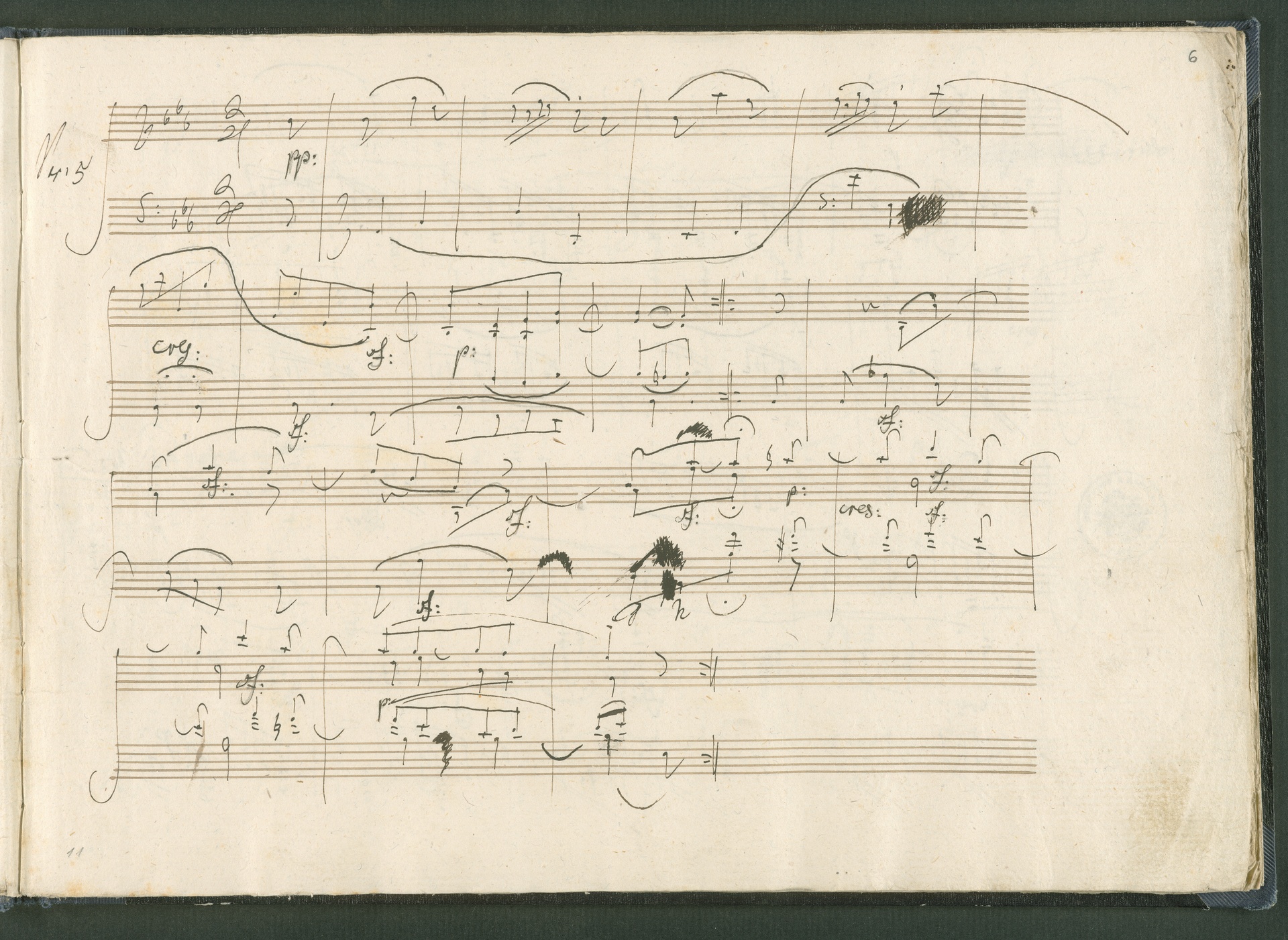 The title page of the autograph score of the "Prometheus" Variations op. 35 certainly immediately catches one's eye. Beethoven crossed out the central inscription several times, rendering it almost illegible. Behind the crossings out there are two versions of an explanatory note, "As I have diverged from the up to now usual method with these v[ariations], I did not want them to continue as my earlier ones, and instead of indicating them like my previous ones by means of a number I have included them in the proper numerical series of my greater musical works, the more so as the themes have been composed by me."