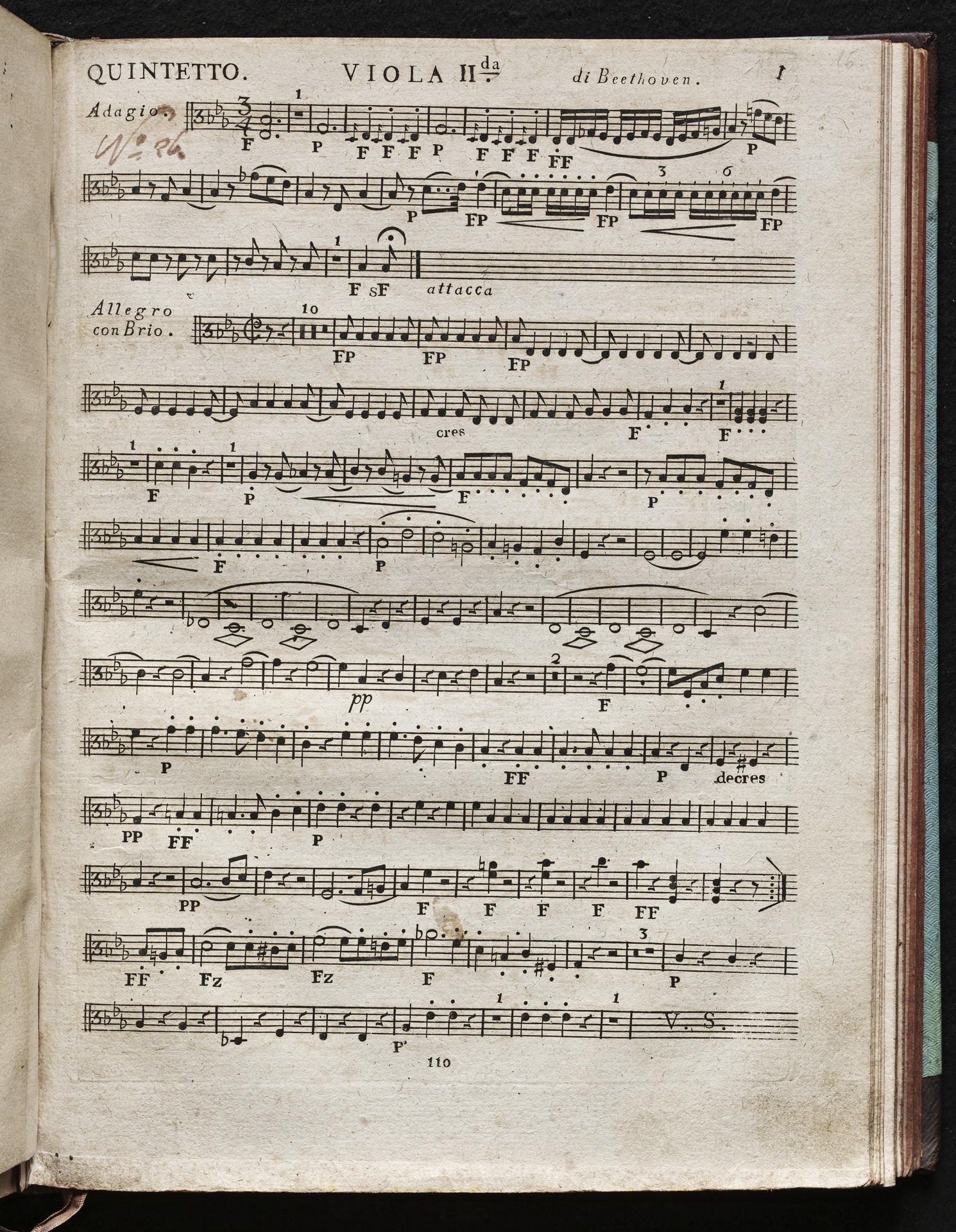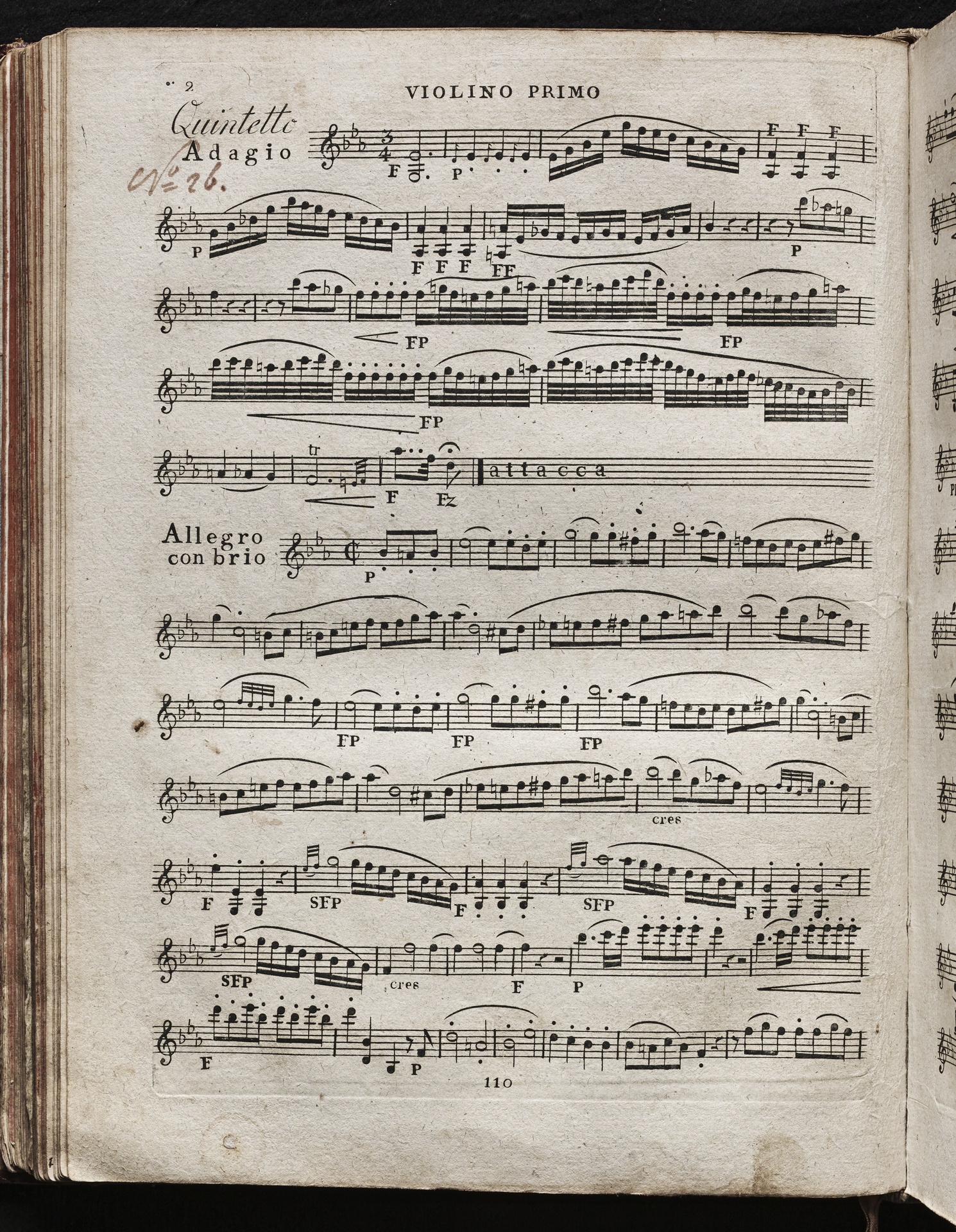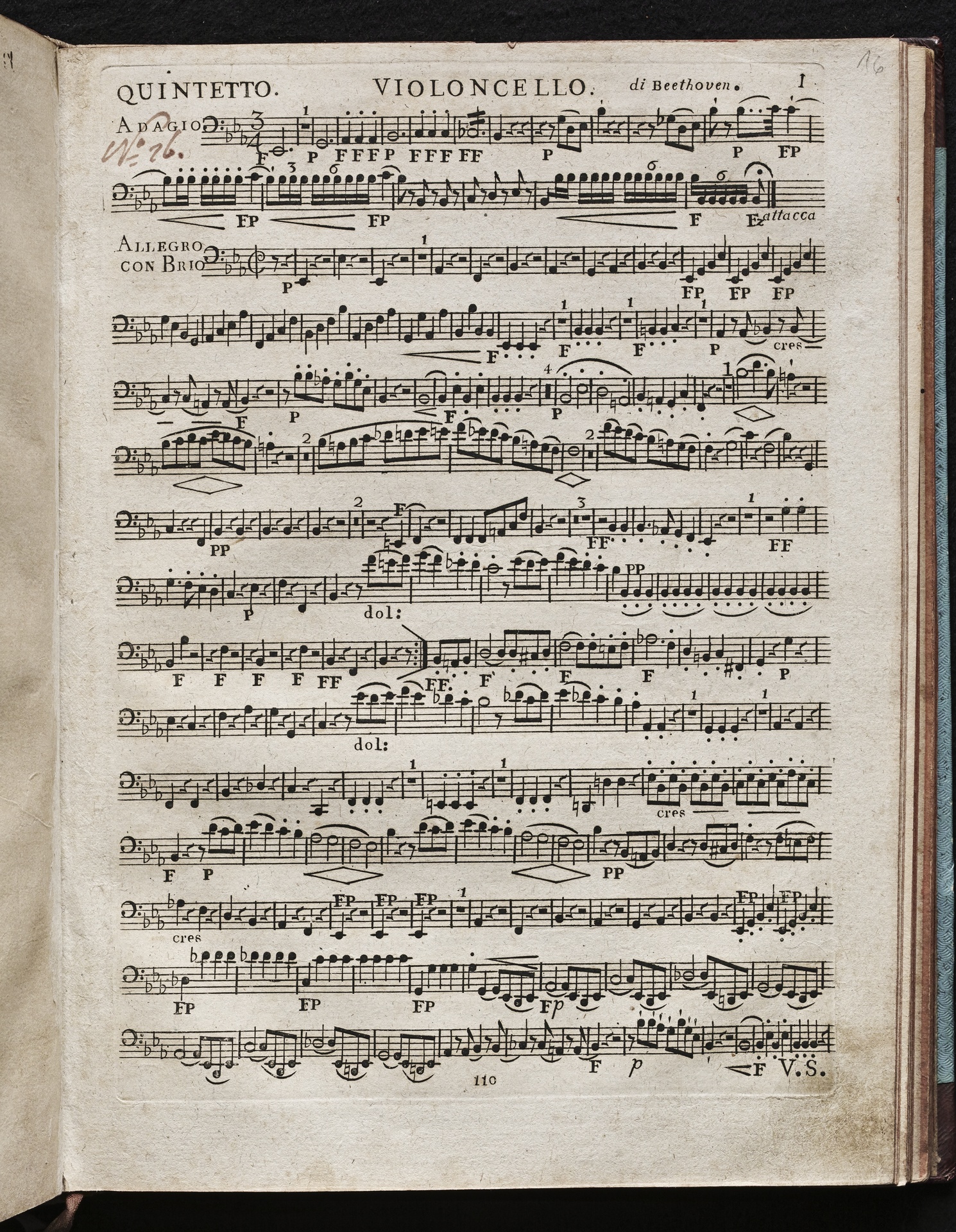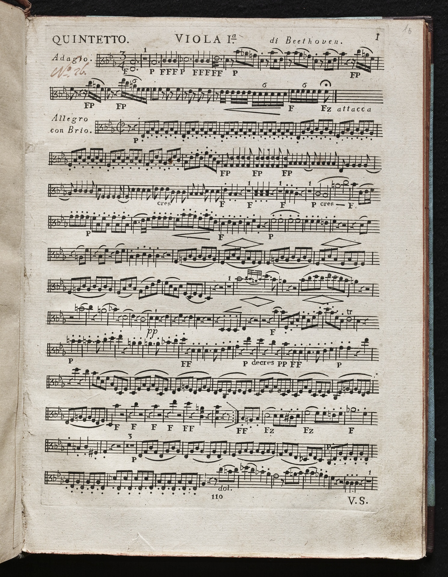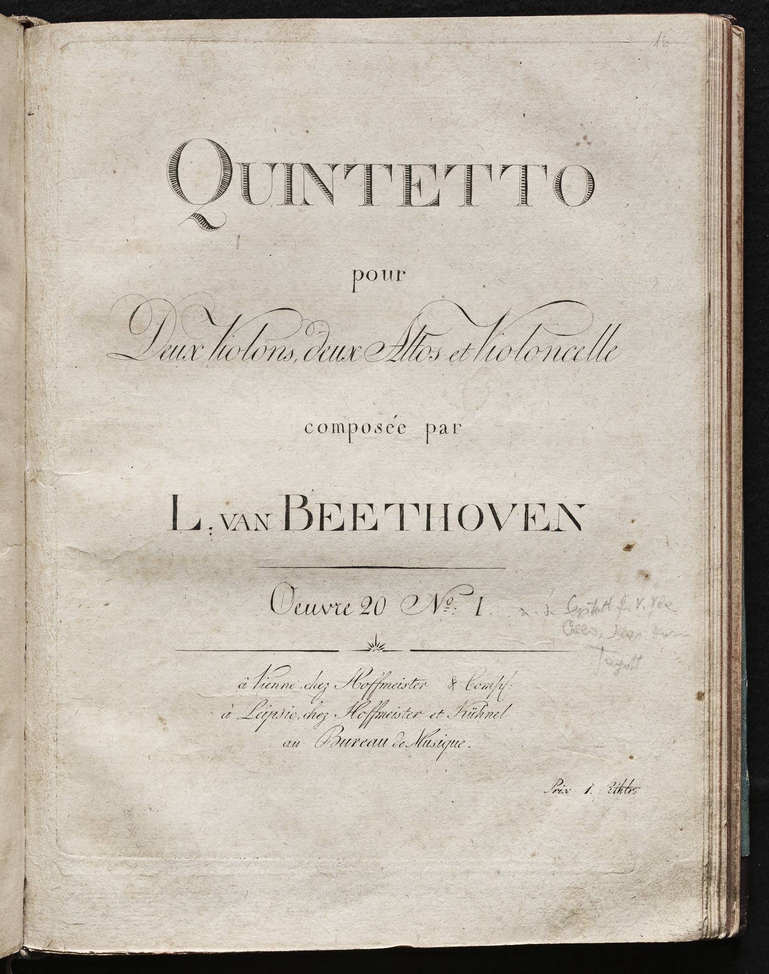 Ludwig van Beethoven, Septett für Violine, Viola, Klarinette, Horn, Fagott, Violoncello, Kontrabass (Es-Dur) op. 20, Bearbeitung für 2 Violinen, 2 Violen und Violoncello von Franz Anton Hoffmeister, Stimmen, Hoffmeister, 110-111