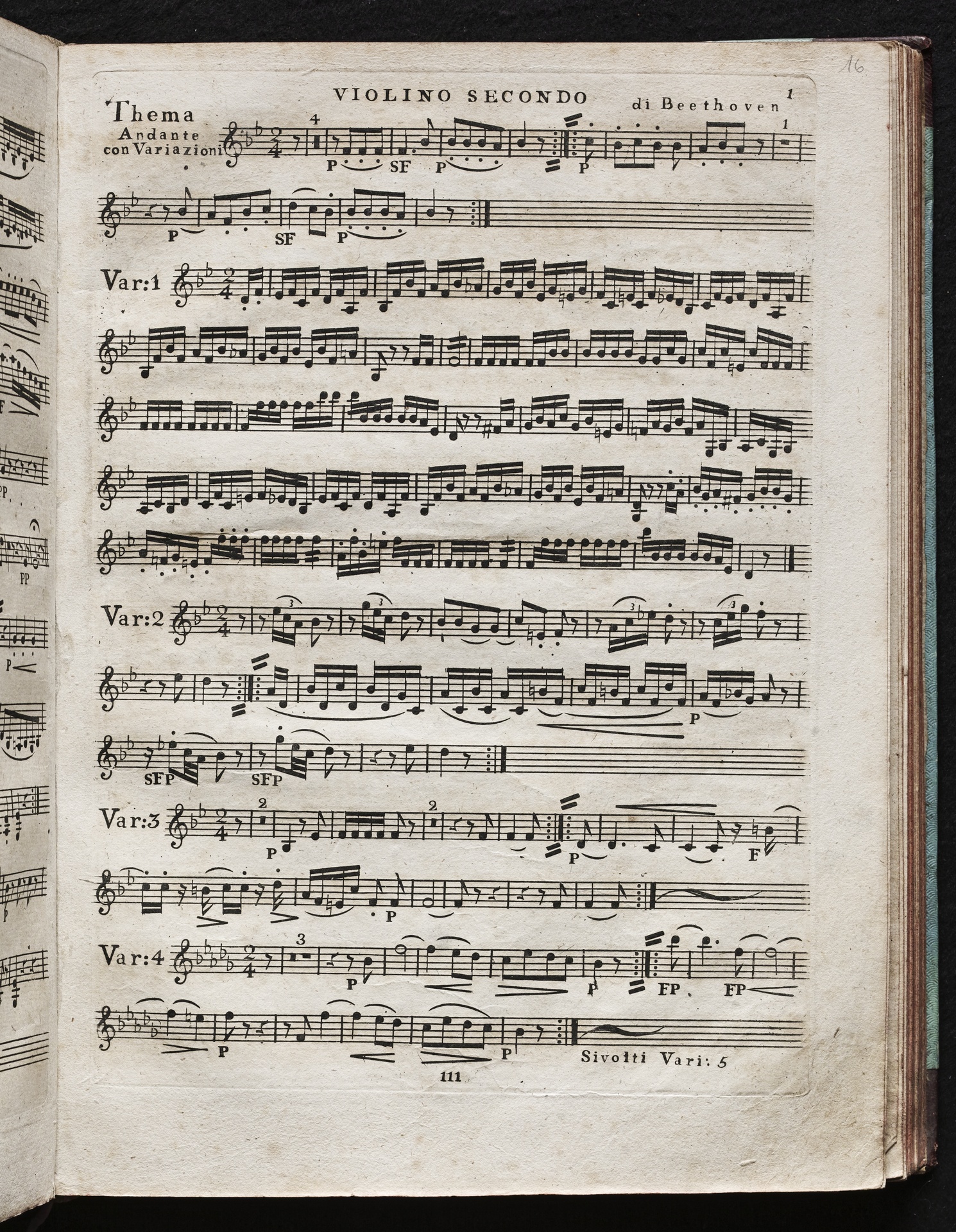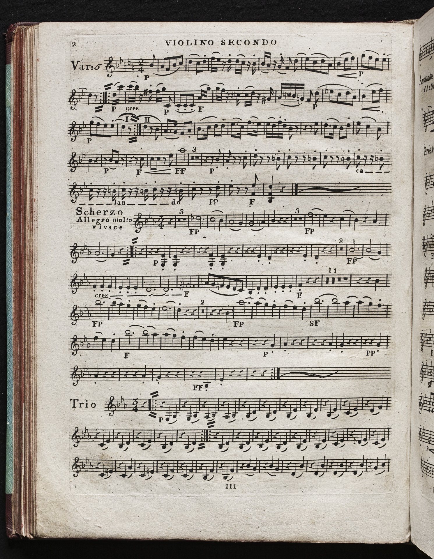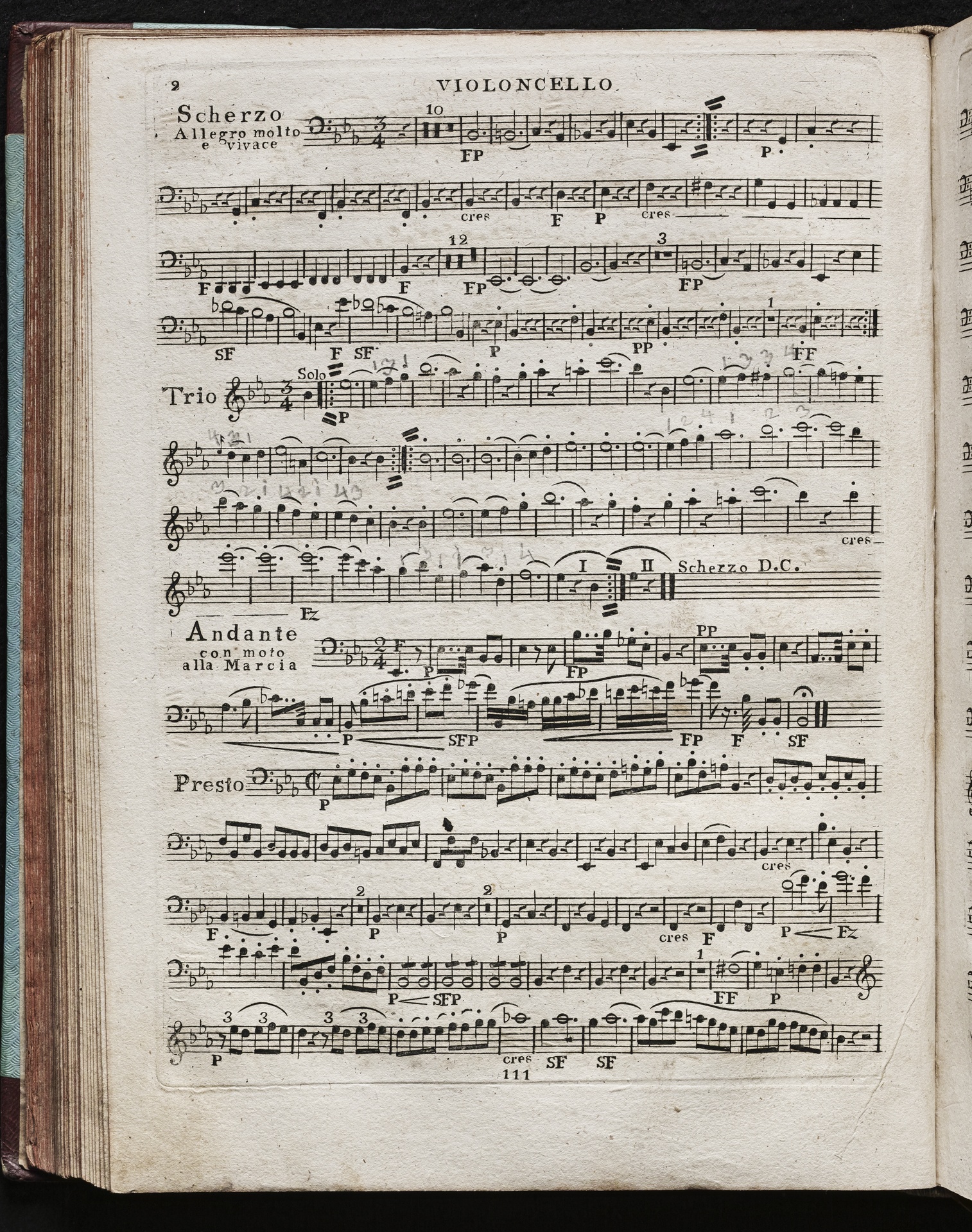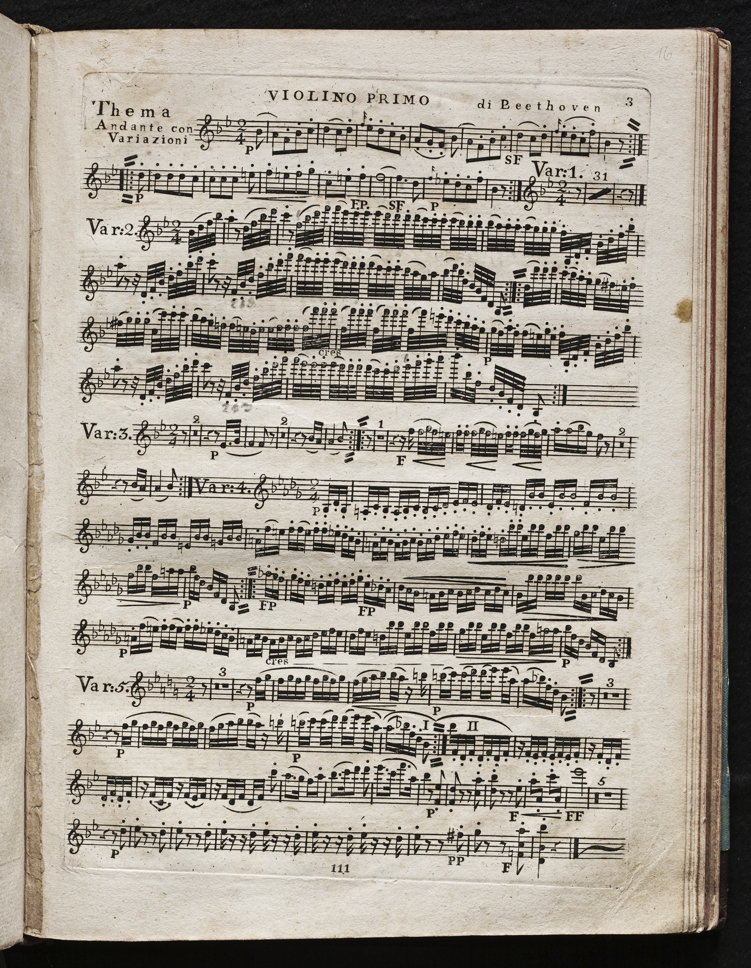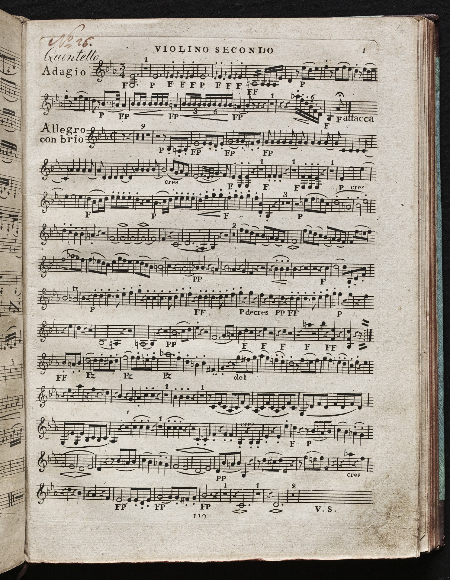 Ludwig van Beethoven, Septett für Violine, Viola, Klarinette, Horn, Fagott, Violoncello, Kontrabass (Es-Dur) op. 20, Bearbeitung für 2 Violinen, 2 Violen und Violoncello von Franz Anton Hoffmeister, Stimmen, Hoffmeister, 110-111