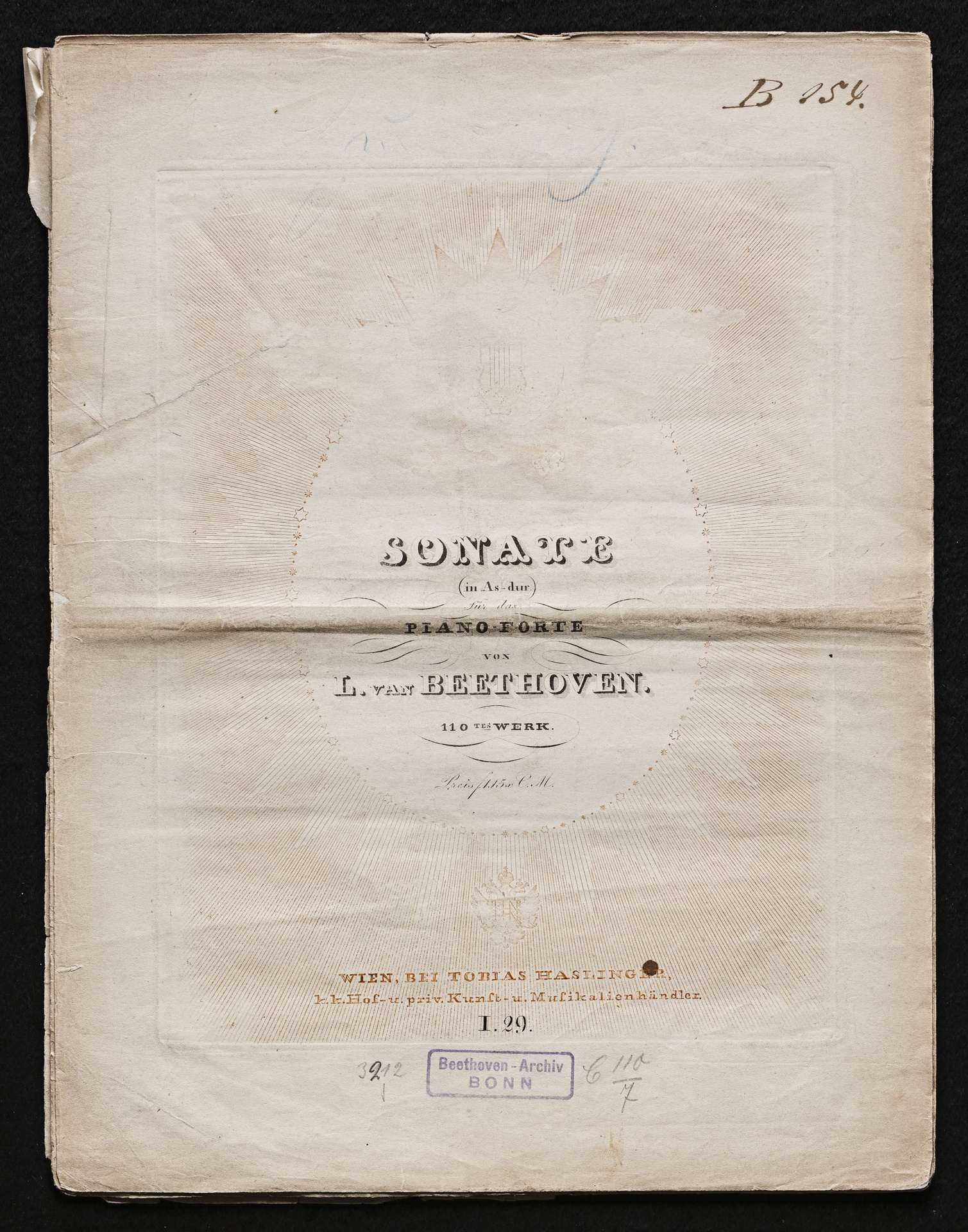 Ludwig van Beethoven, Sonate für Klavier (As-Dur) op. 110, Haslinger, 1,29