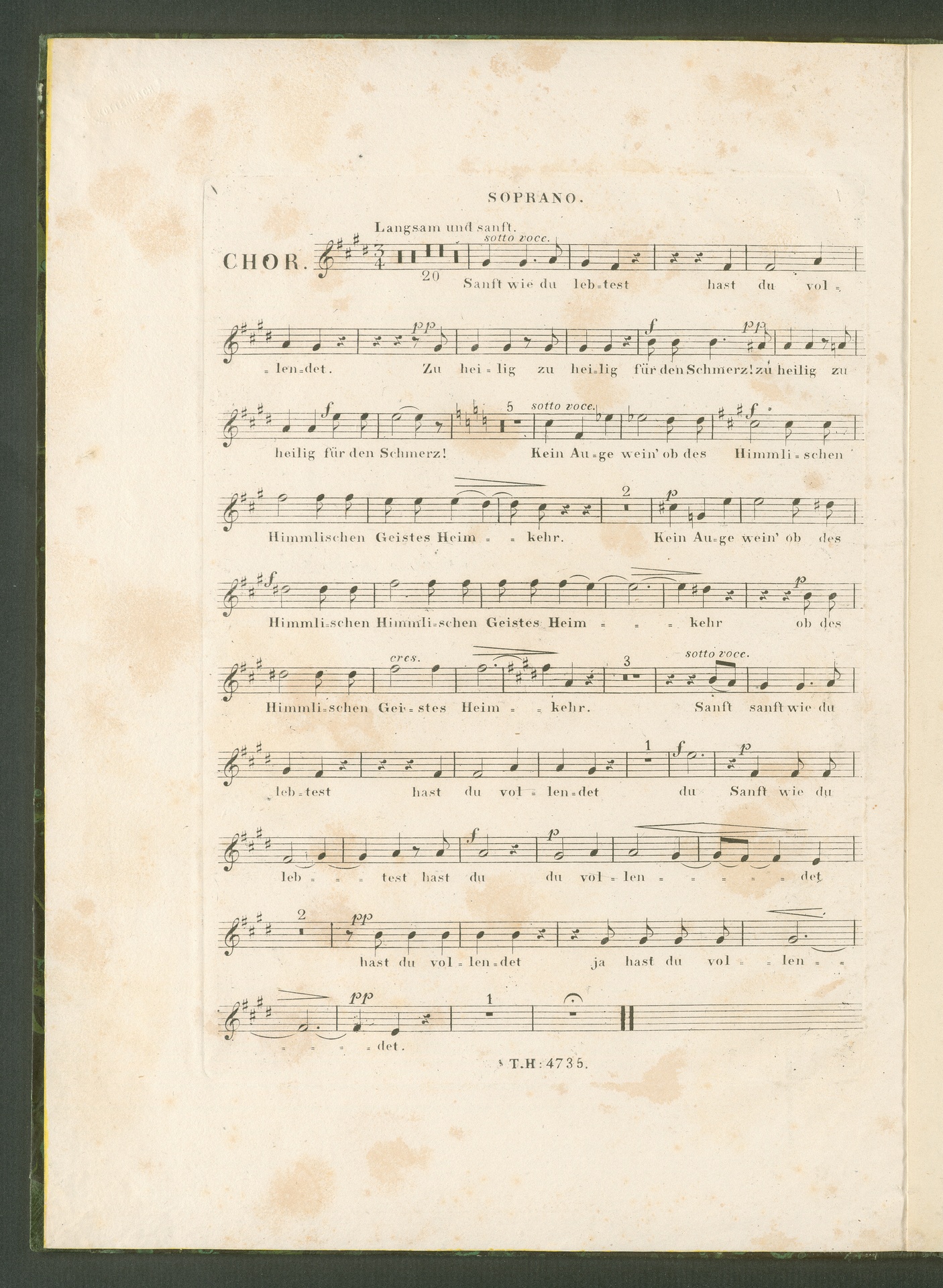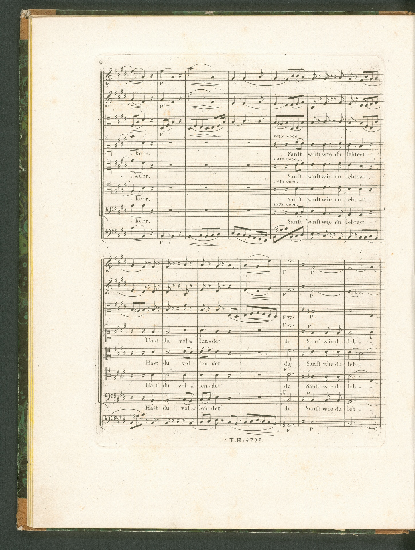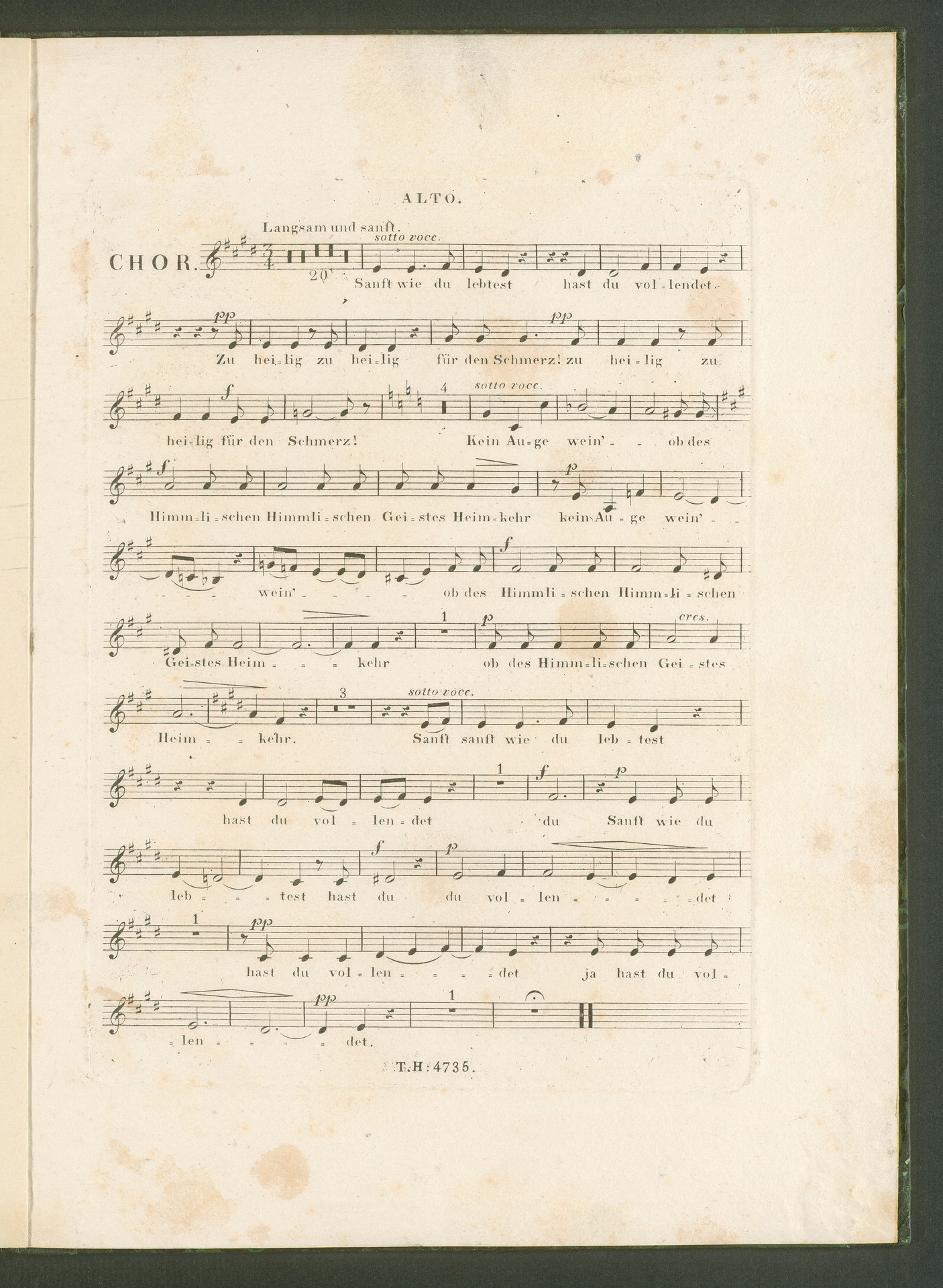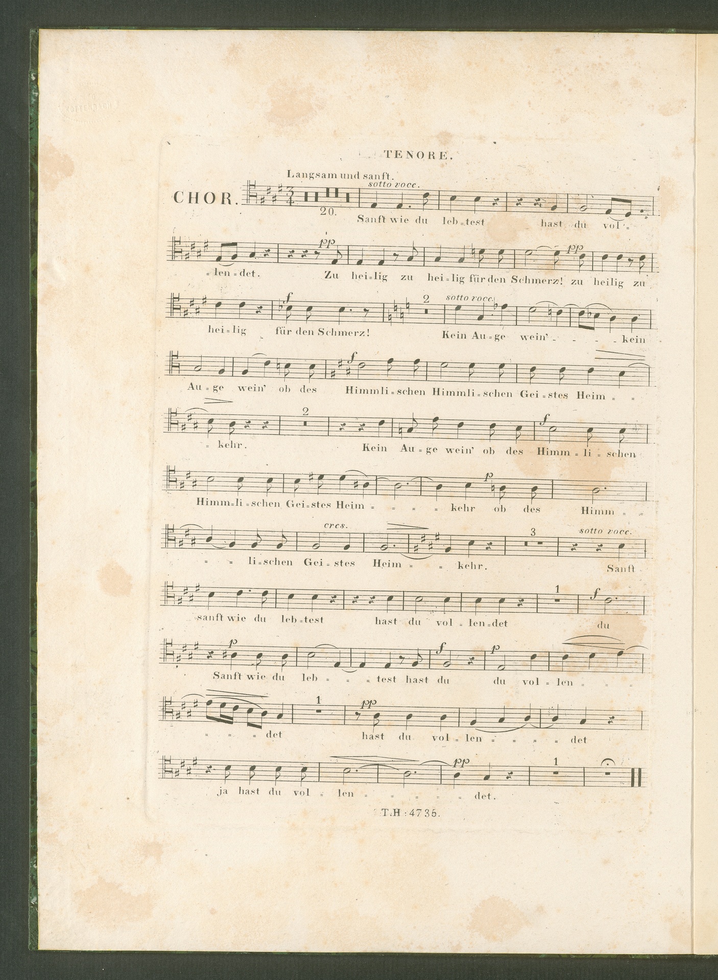 Ludwig van Beethoven, "Elegischer Gesang", Lied für 4 Singstimmen, 2 Violinen, Viola und Violoncello op. 118, Partitur, Klavierauszug und Stimmen, Haslinger, 4735