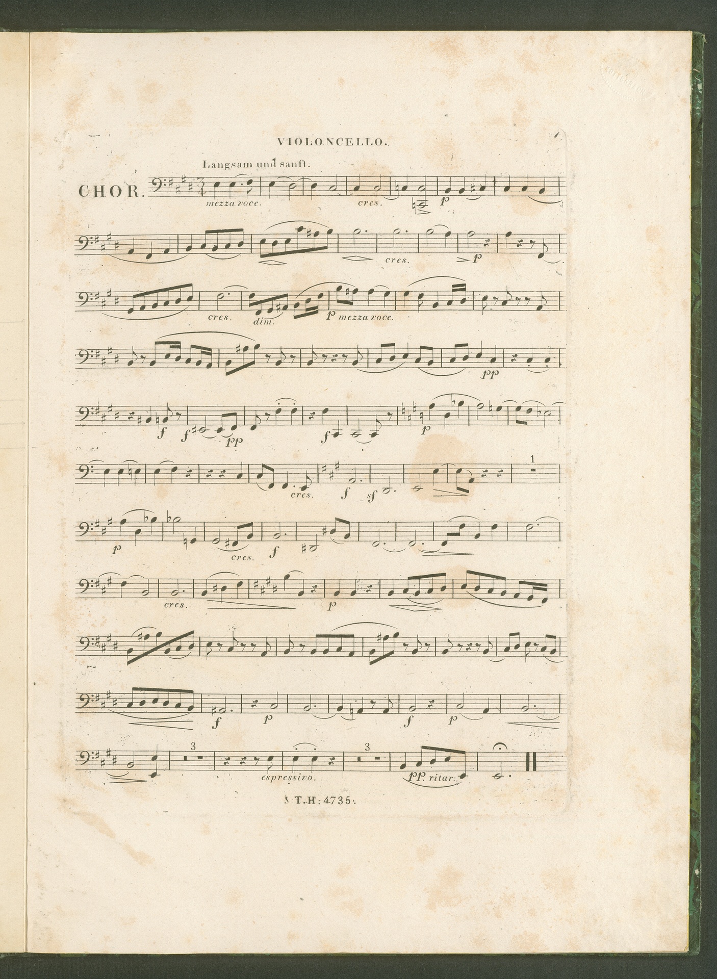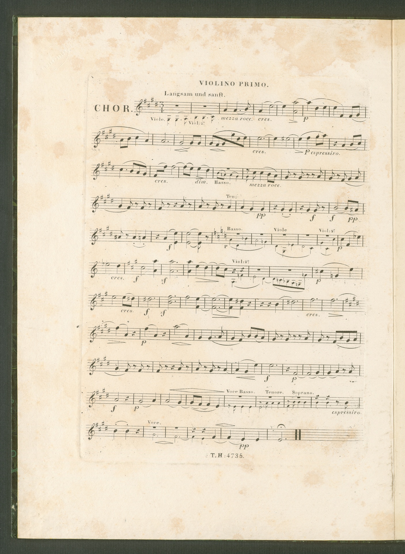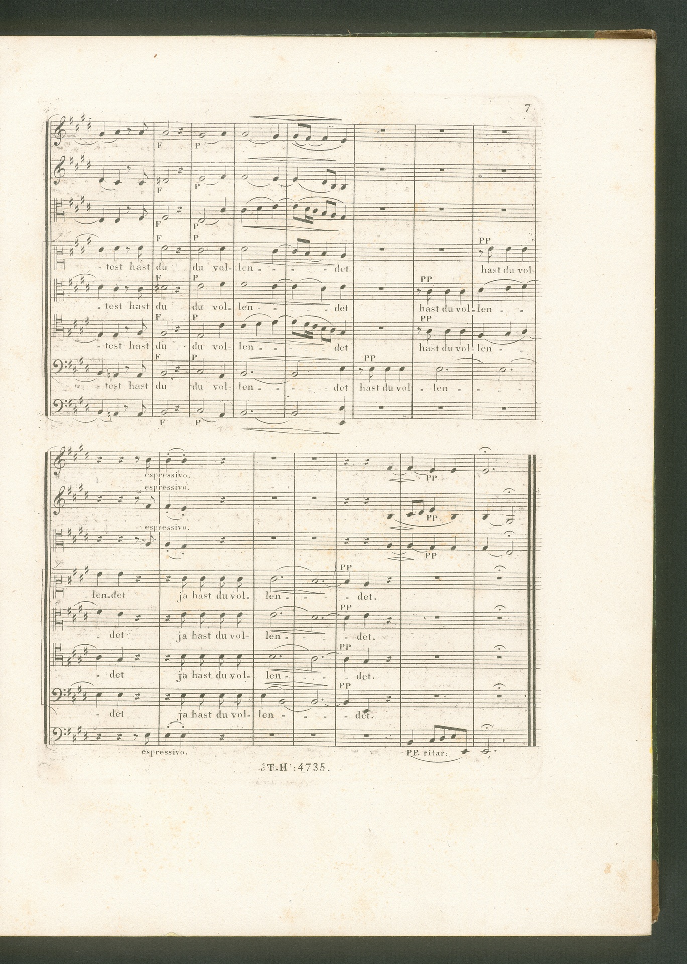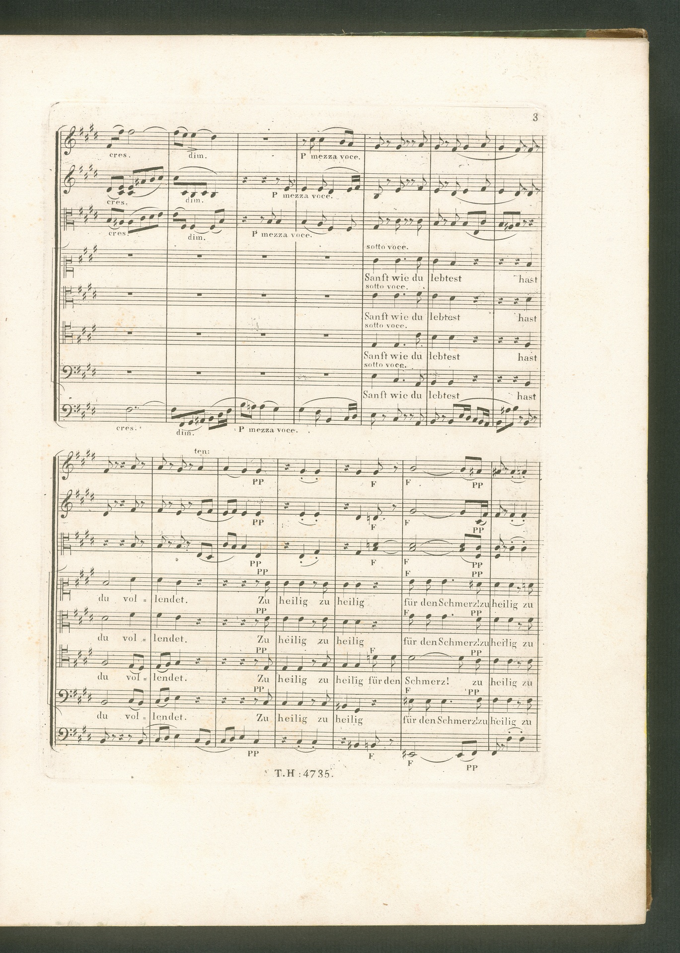 Ludwig van Beethoven, "Elegischer Gesang", Lied für 4 Singstimmen, 2 Violinen, Viola und Violoncello op. 118, Partitur, Klavierauszug und Stimmen, Haslinger, 4735