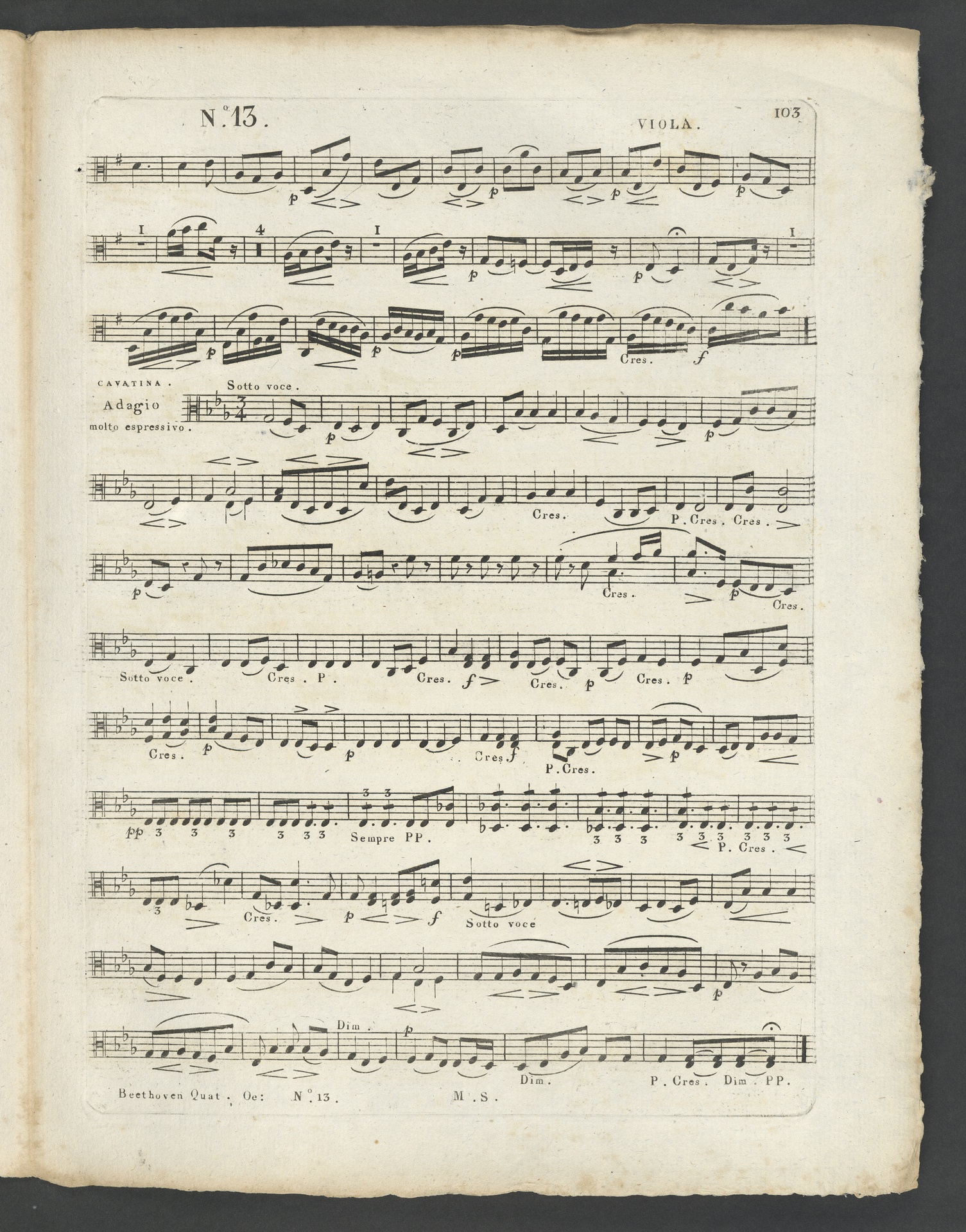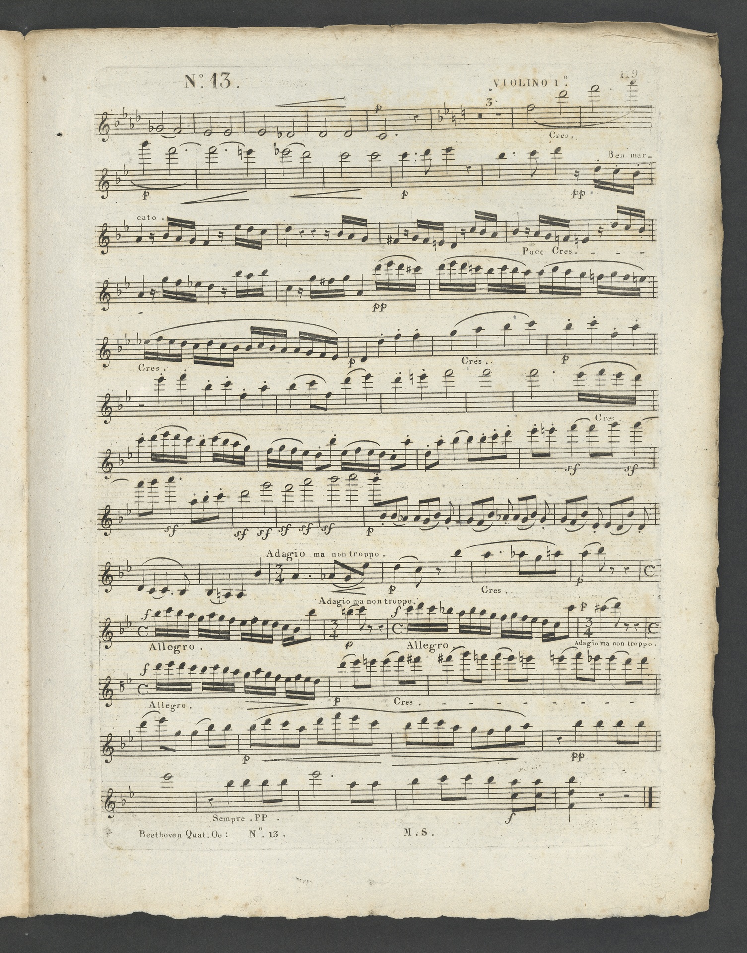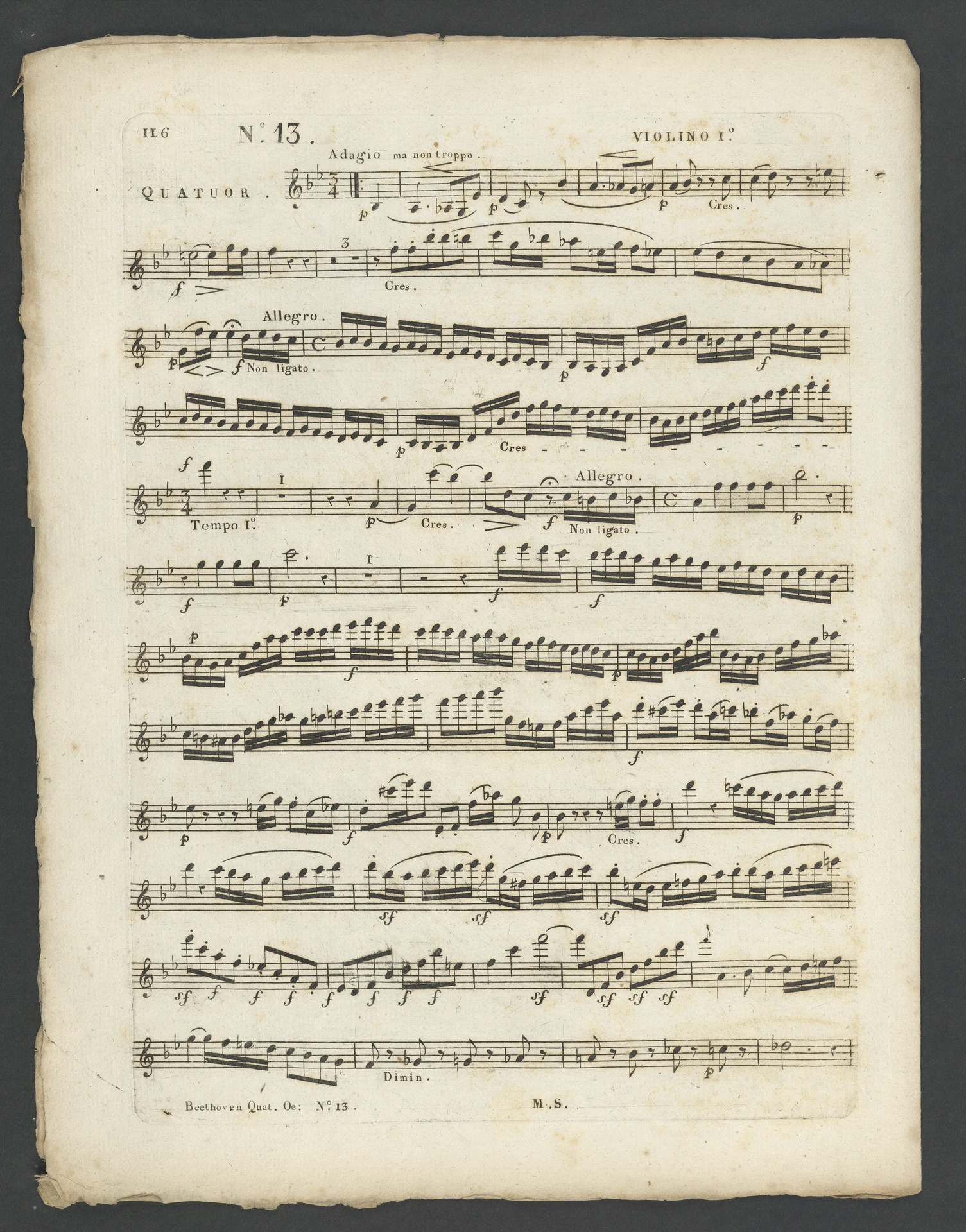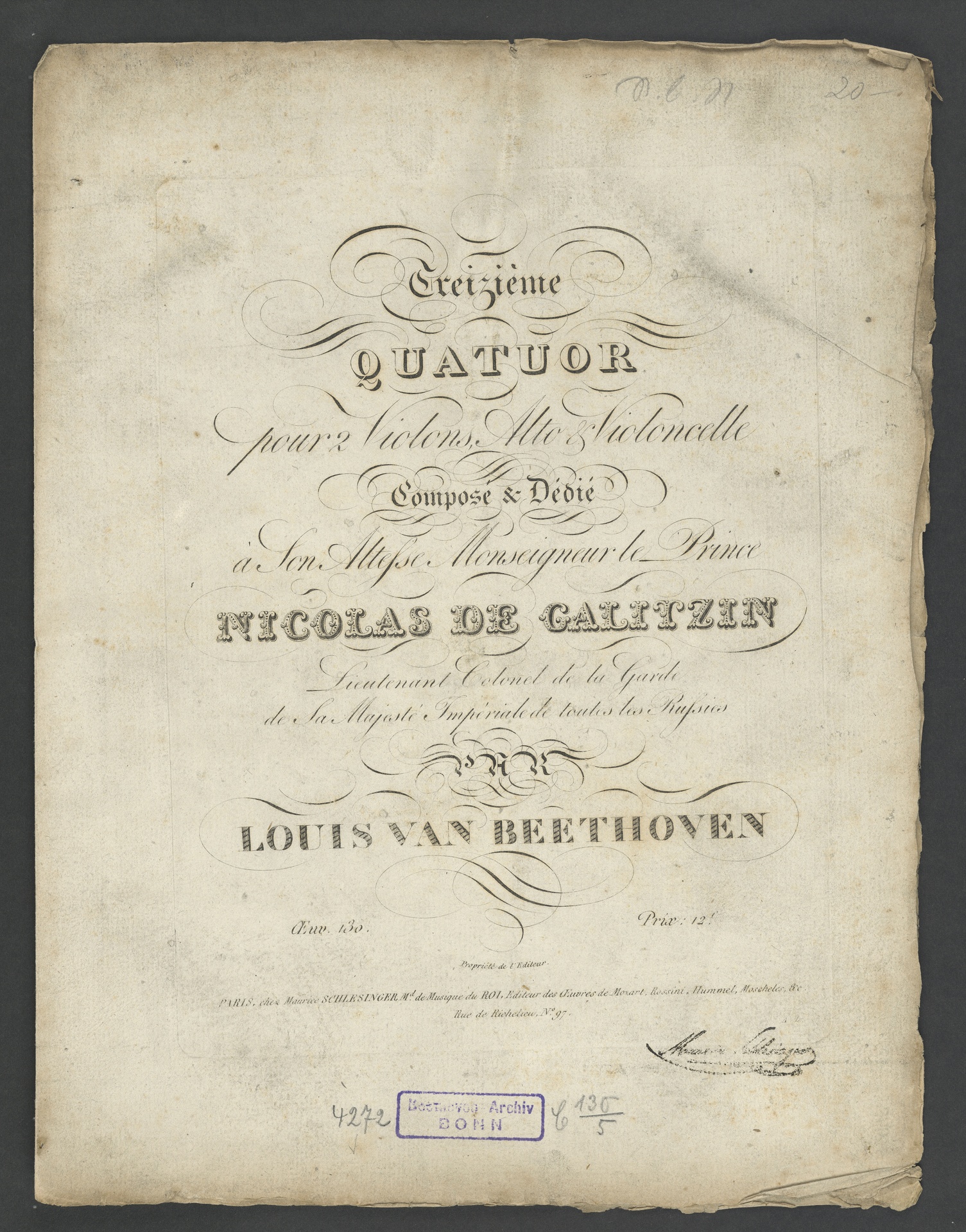 Ludwig van Beethoven, Quartett für 2 Violinen, Viola, Violoncello (B-Dur) op. 130, Stimmen, Schlesinger