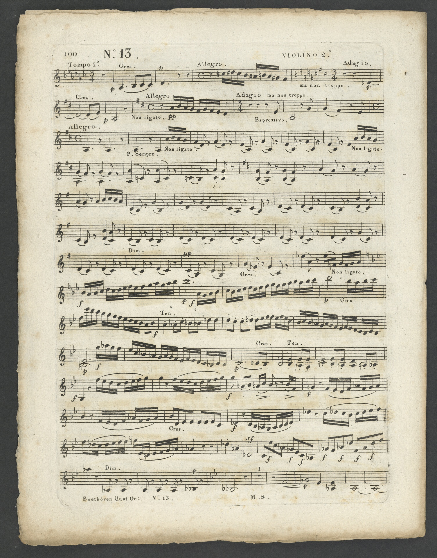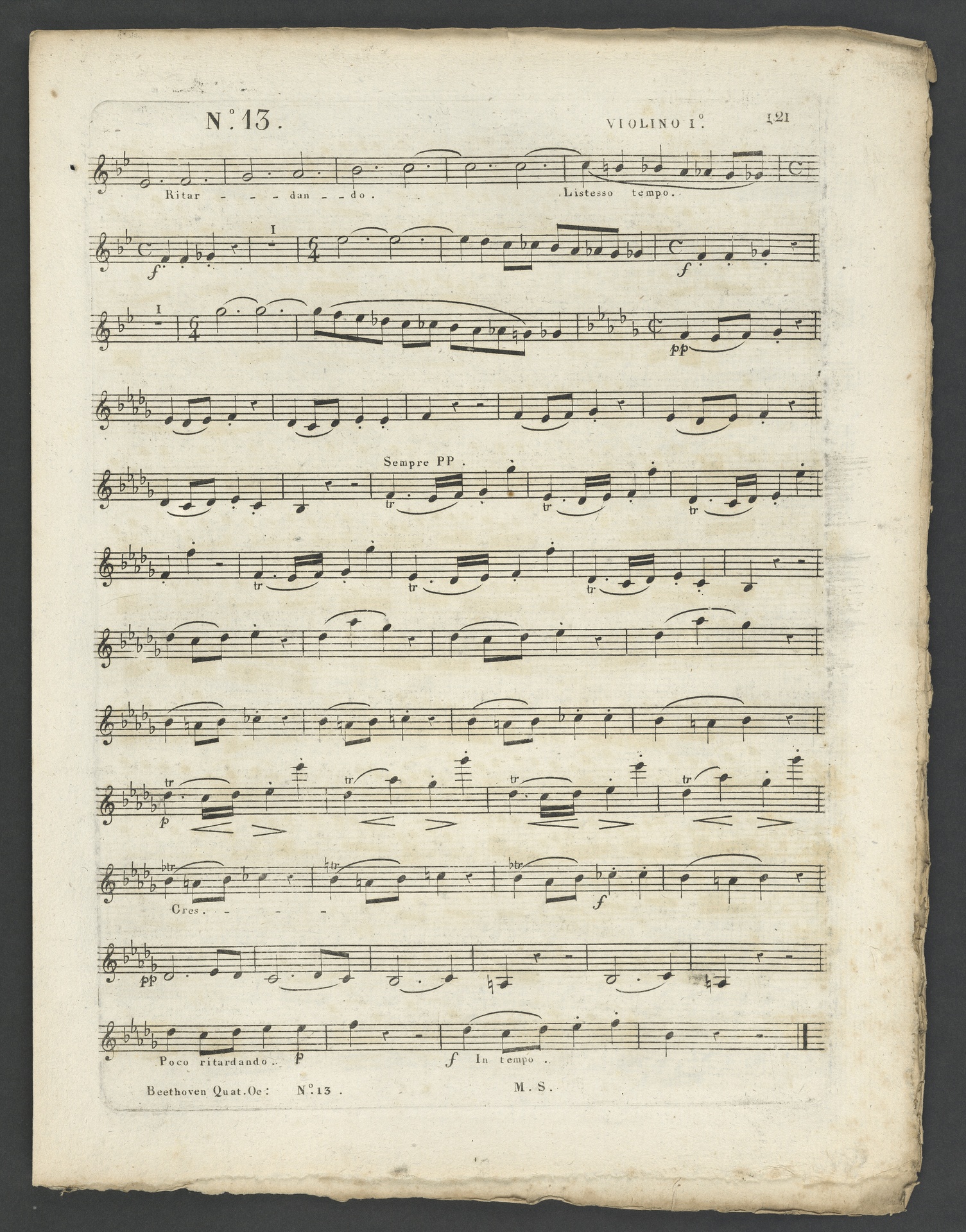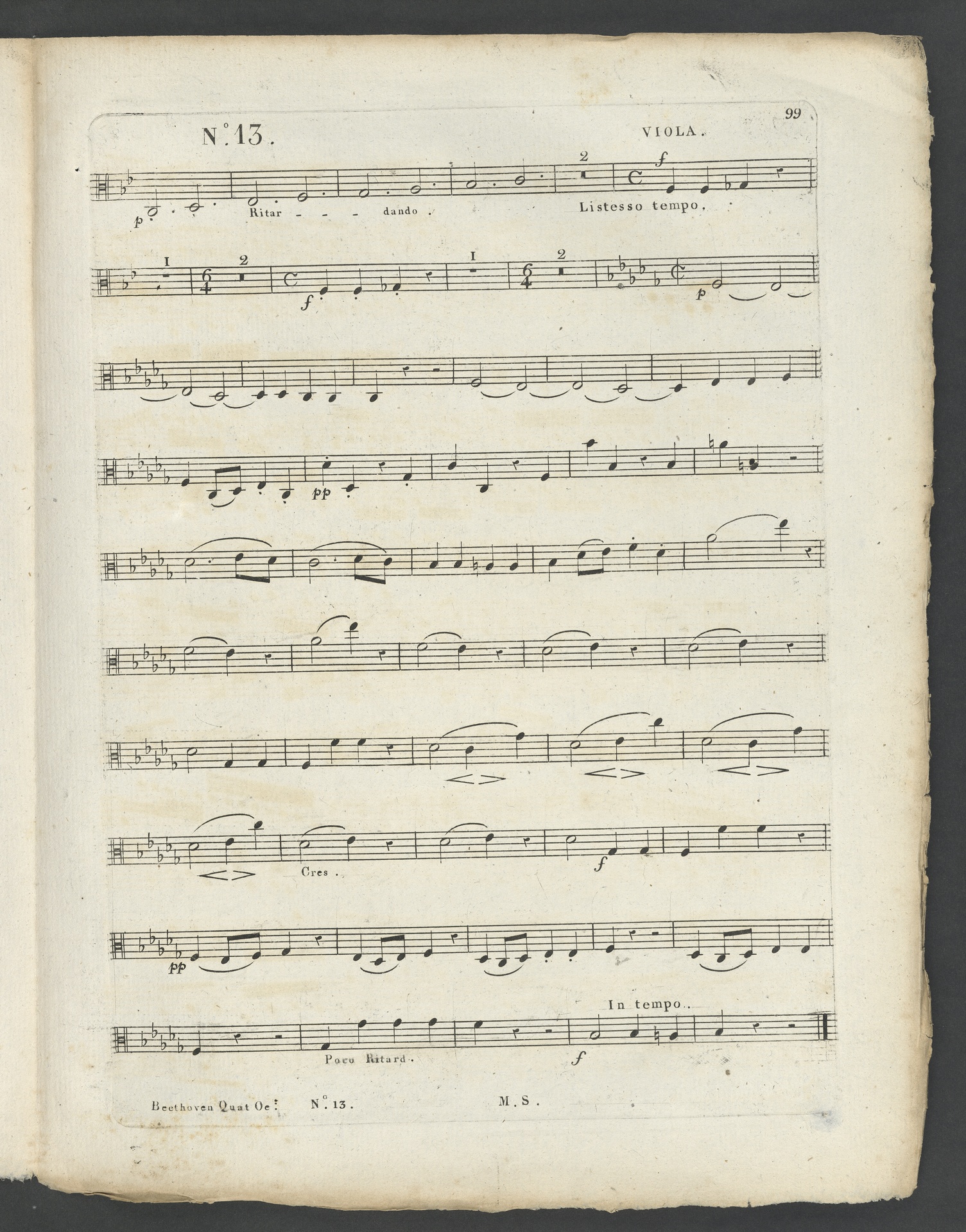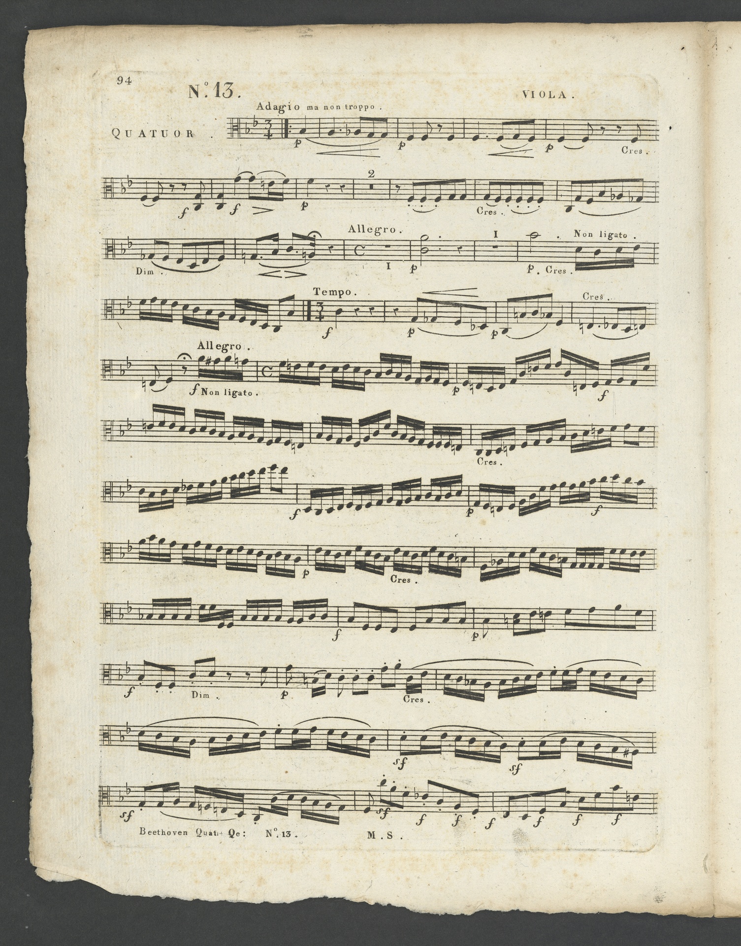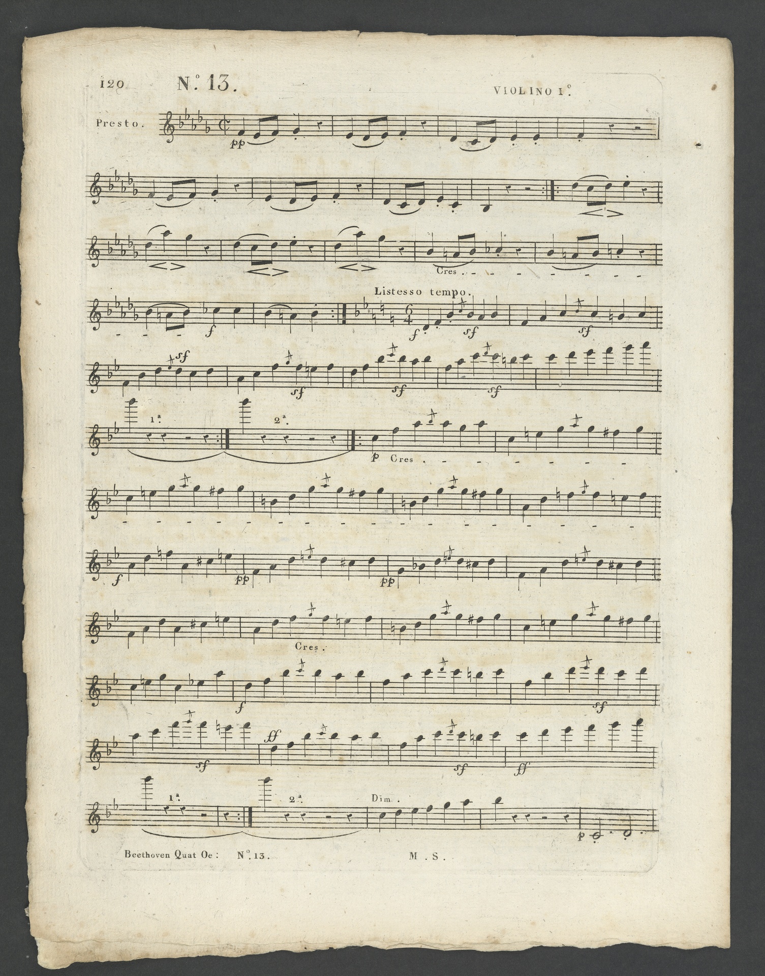 Ludwig van Beethoven, Quartett für 2 Violinen, Viola, Violoncello (B-Dur) op. 130, Stimmen, Schlesinger