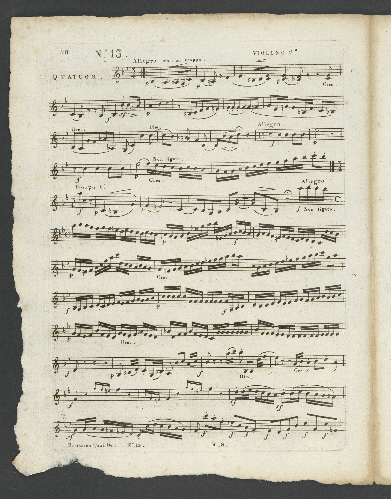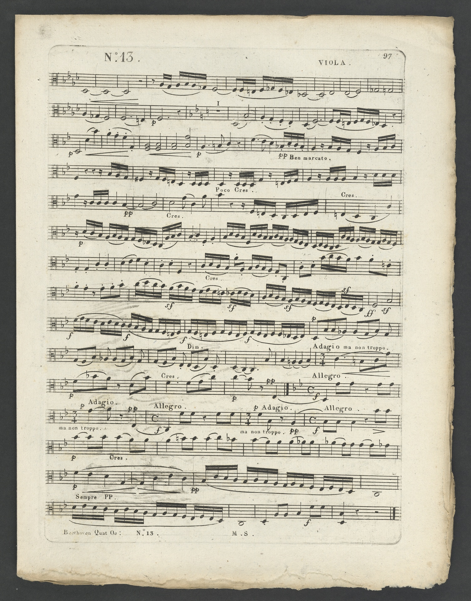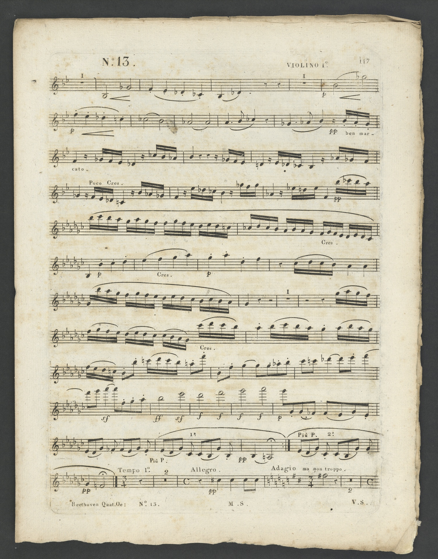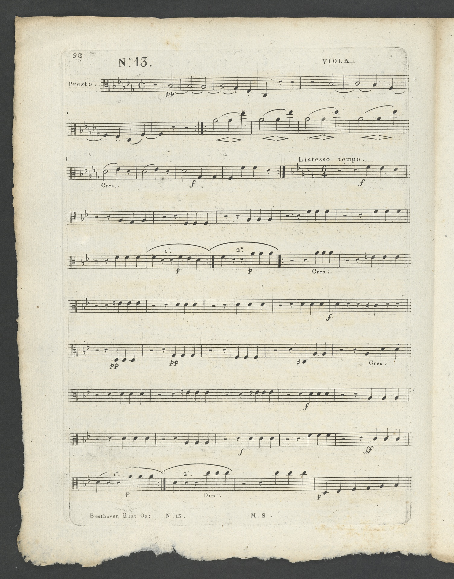Ludwig van Beethoven, Quartett für 2 Violinen, Viola, Violoncello (B-Dur) op. 130, Stimmen, Schlesinger