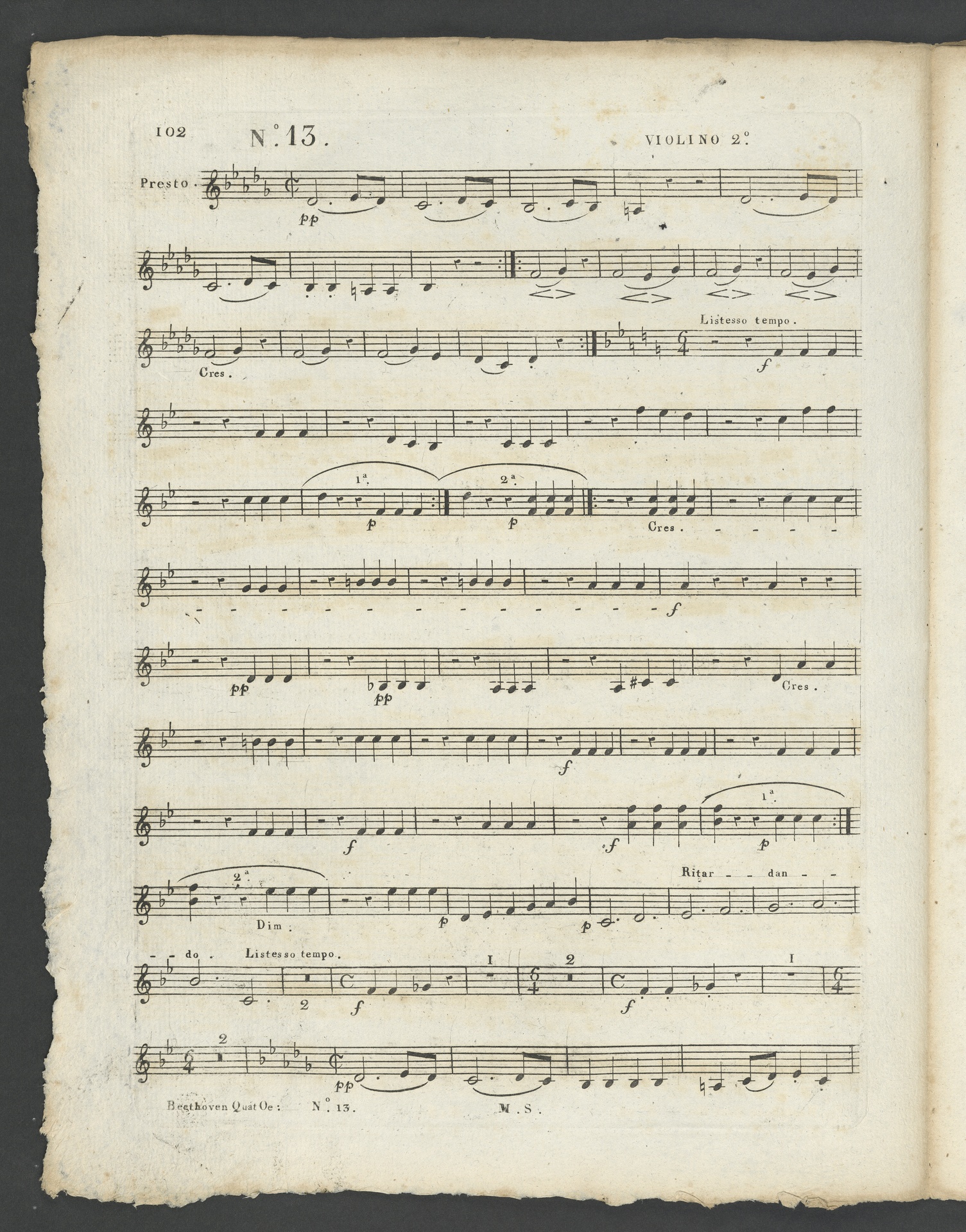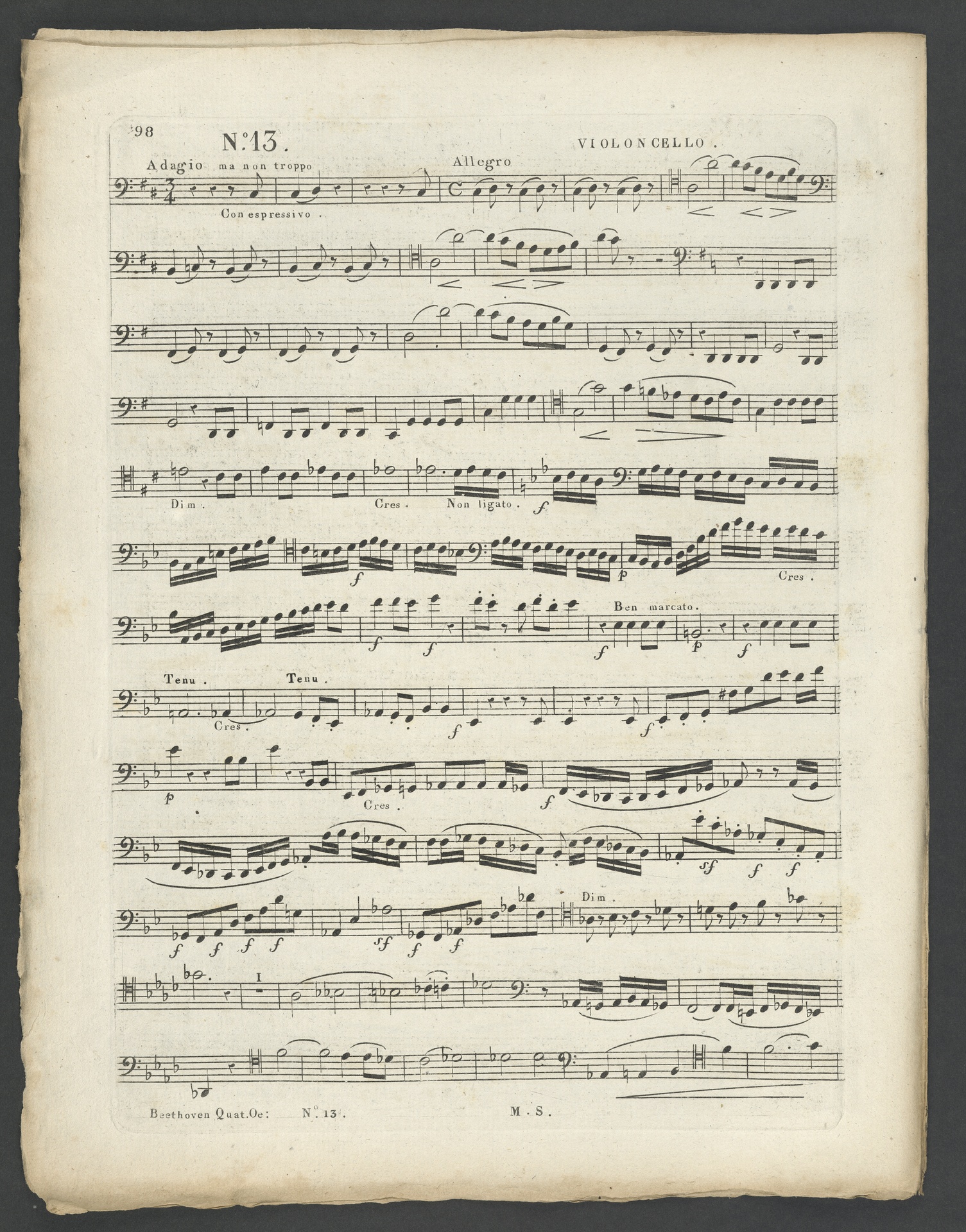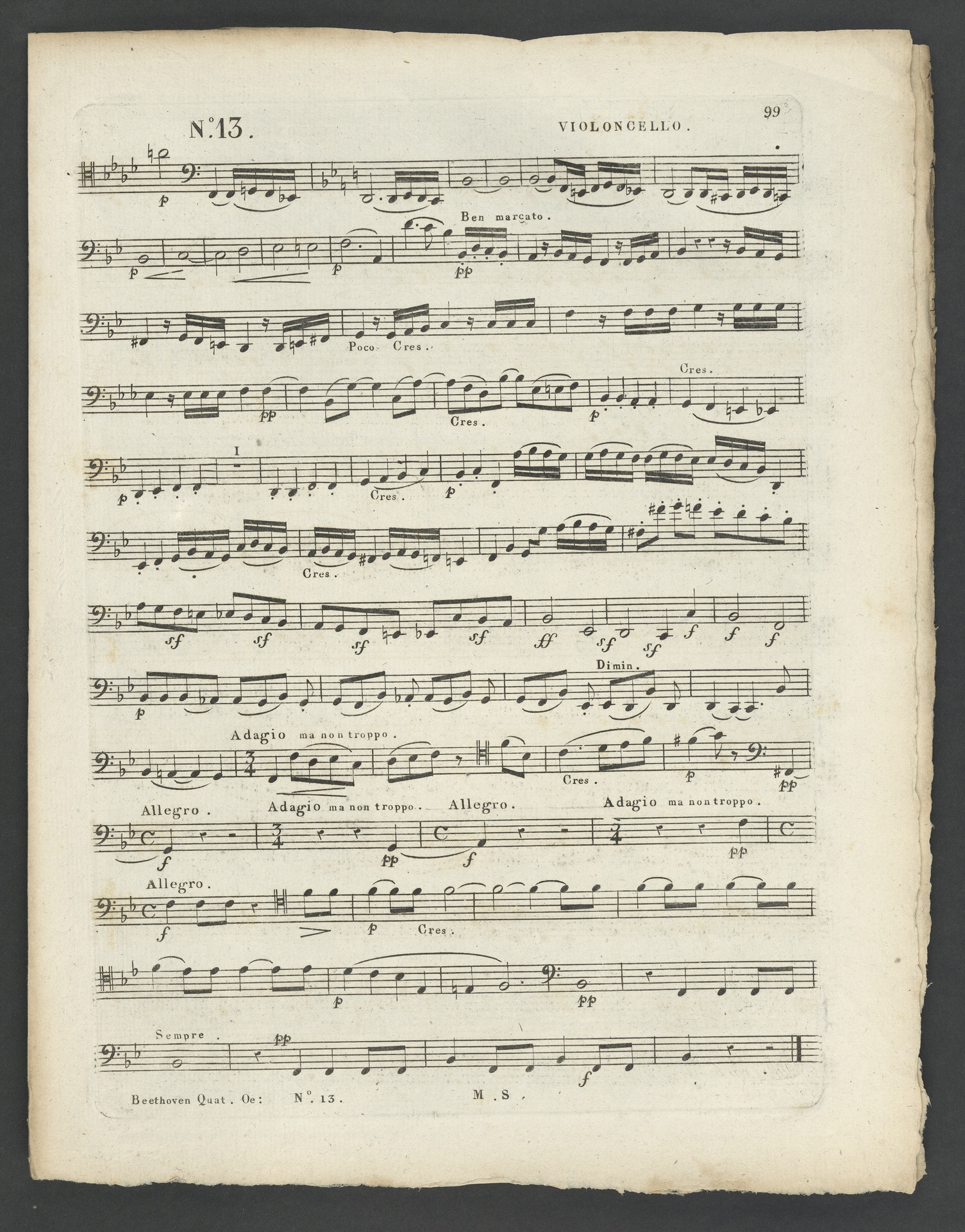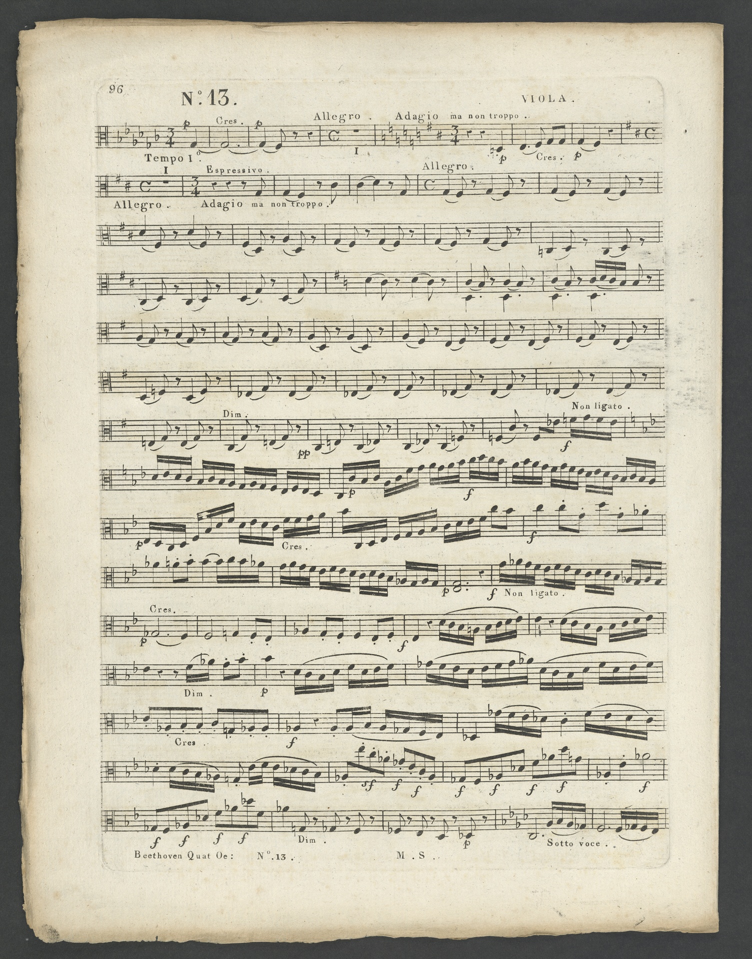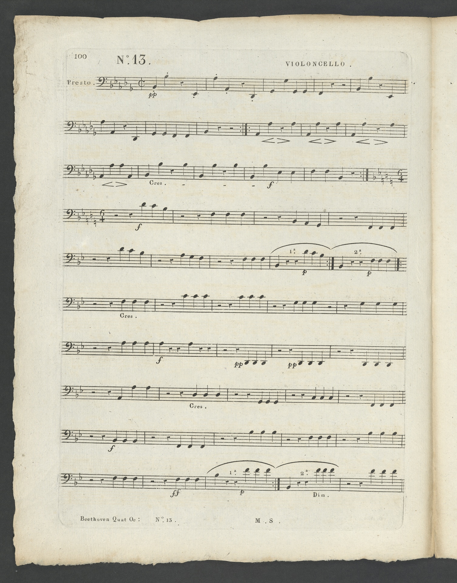 Ludwig van Beethoven, Quartett für 2 Violinen, Viola, Violoncello (B-Dur) op. 130, Stimmen, Schlesinger